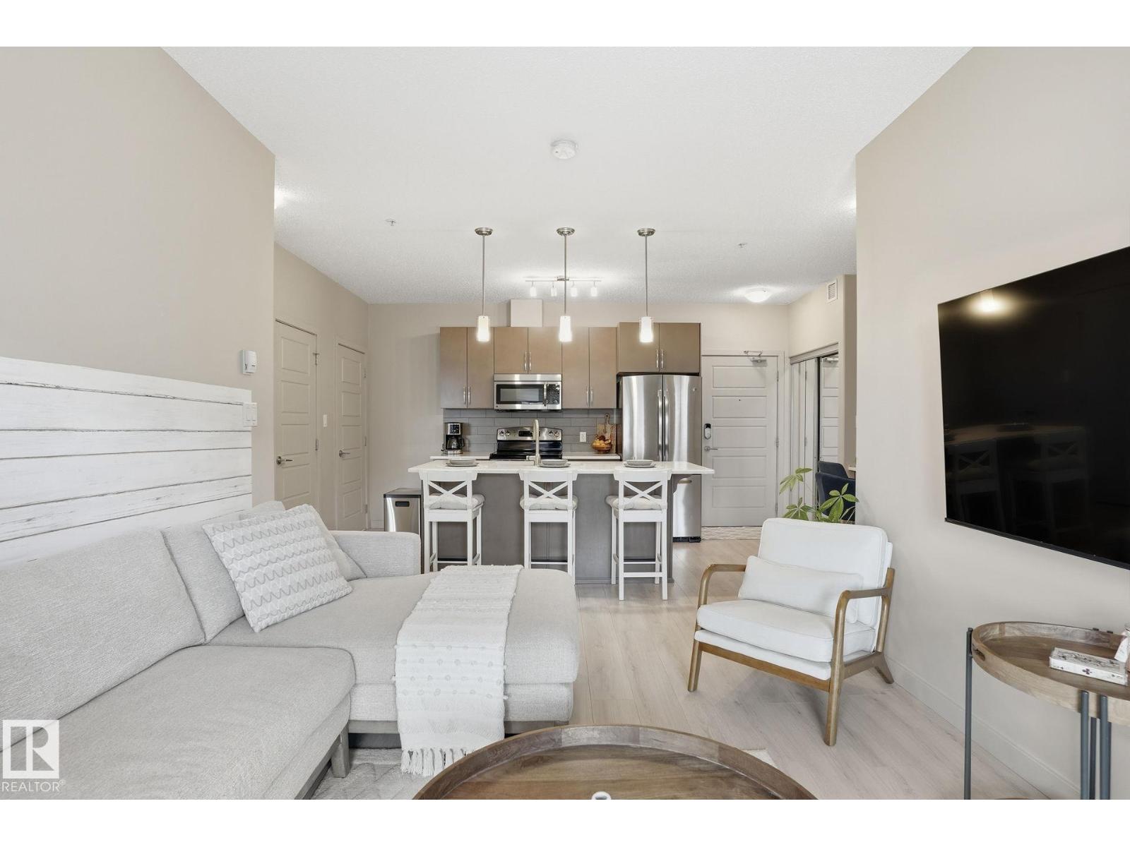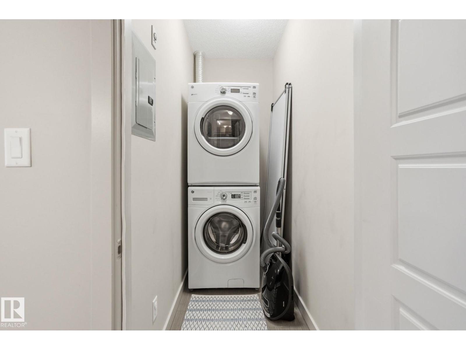 Exceptionally well maintained 2-bedroom, 2-bathroom condo showcases outstanding attention to detail throughout. The bright, open-concept layout creates a natural flow between the living area, kitchen, and dining space, ideal for both relaxed daily living and entertaining. The primary bedroom is thoughtfully designed with a private ensuite and dual closets, while the second bedroom, served by a full bathroom, offers versatile space perfect for guests or home office. Convenient features include in-suite laundry, granite countertops throughout, one titled underground parking stall, and an attached storage cage. Building amenities add to the appeal, with a social/recreation room, private fitness facility, and rentable guest suite available. Located with quick access to Anthony Henday, Terwilliger Drive, and Whitemud, and just minutes from shopping centers, public transit, schools. this home offers a well-rounded combination of comfort, quality, and an unbeatable location. (id:63190)