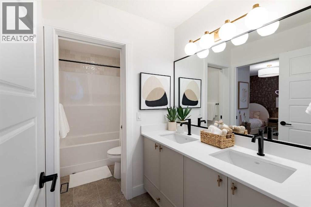 Welcome to the custom Saffron II by Shane Homes, a pre-construction home backing onto greenspace and a pond, offering a rare combination of location, space, and flexibility. Legal Suite included.The main floor features a spacious living room with electric fireplace, a cozy sitting nook, and a versatile lifestyle room with a closet and full bathroom, ideal for guests. The kitchen includes a spice kitchen, and the rear vinyl deck provides a great space to enjoy the views.Upstairs offers 4 bedrooms plus a central family room. The primary bedroom includes a walk-in closet and a 5-piece ensuite, along with the convenience of an upper floor laundry room.The walkout basement backs onto the pond and includes a concrete patio. Legal Basement Suite included in pricing. This home is loaded with upgrades including James Hardie siding, tiled bathrooms, undermount sinks, cabinet risers, and more. Photos are representative. (id:63190)