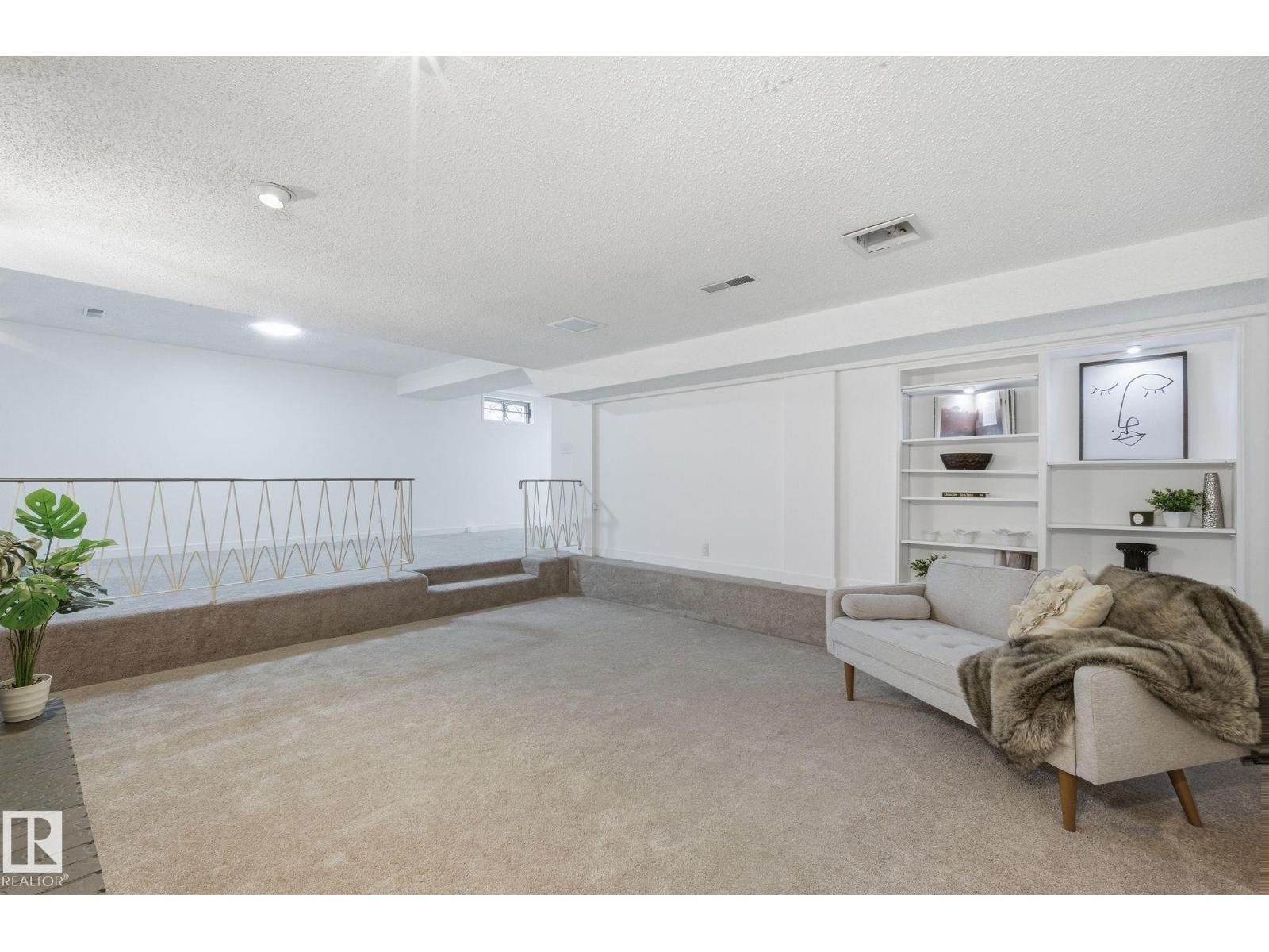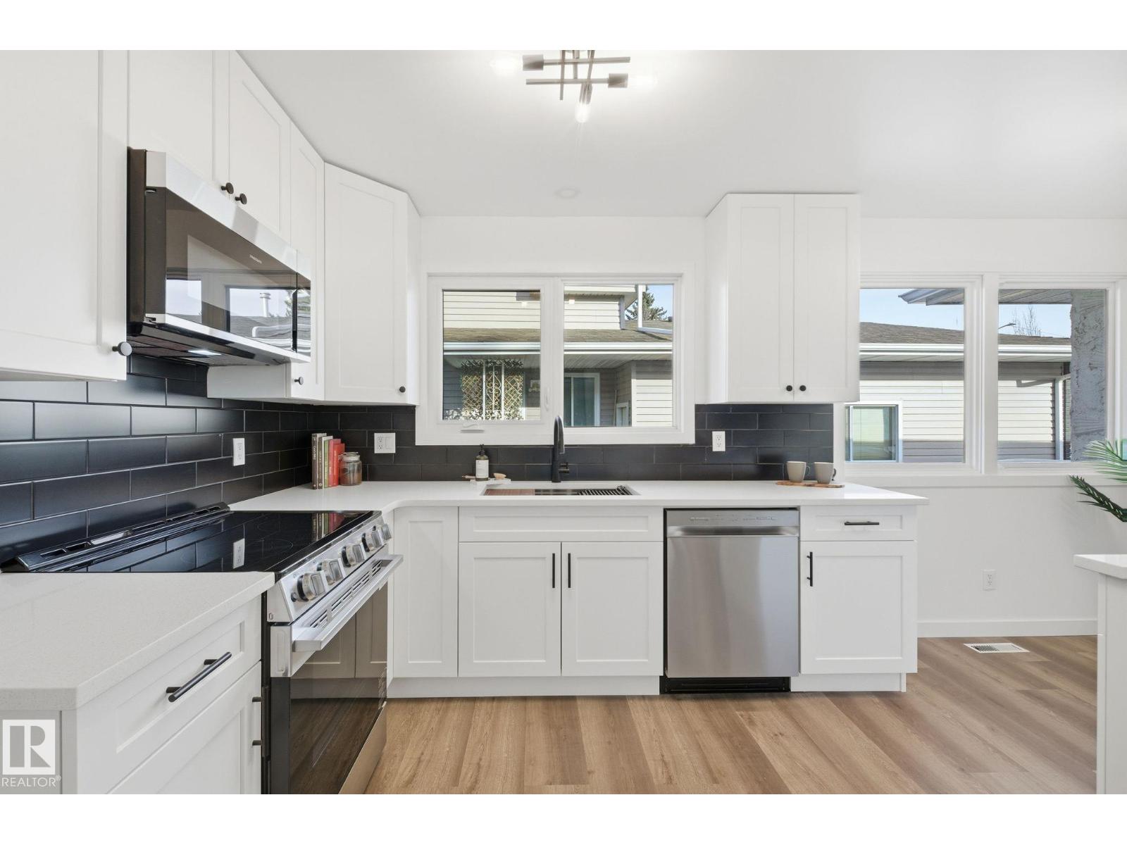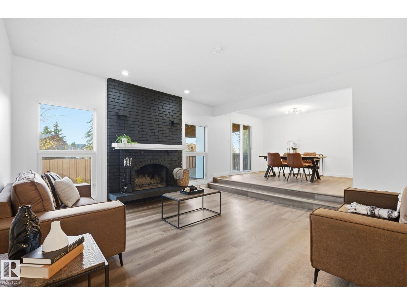 Rare find in Ermineskin! Fully renovated bungalow with over 2,800 sqft of living space on a quiet street, really hard to find in this area! Bright open layout with new kitchen featuring quartz countertops, stainless steel appliances, and elegant new light fixtures. Main floor offers a spacious family room with brick fire place, 3 bedrooms, and stylishly updated bathrooms. The fully finished basement includes 2 more bedrooms, a large rec room with second fireplace, and plenty of storage. Enjoy the large two-level deck, double attached garage, and extra driveway parking. Beside being fully renovated, other recent major updates are: shingles (2023), radon remediation (2021), furnace (2019), updated windows and eavestroughs (2024). Move-in ready and beautifully finished throughout! (id:63190)