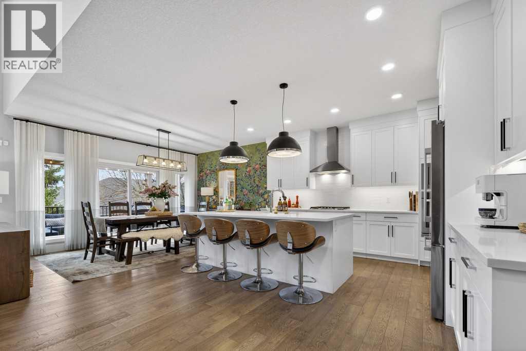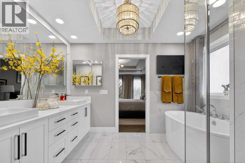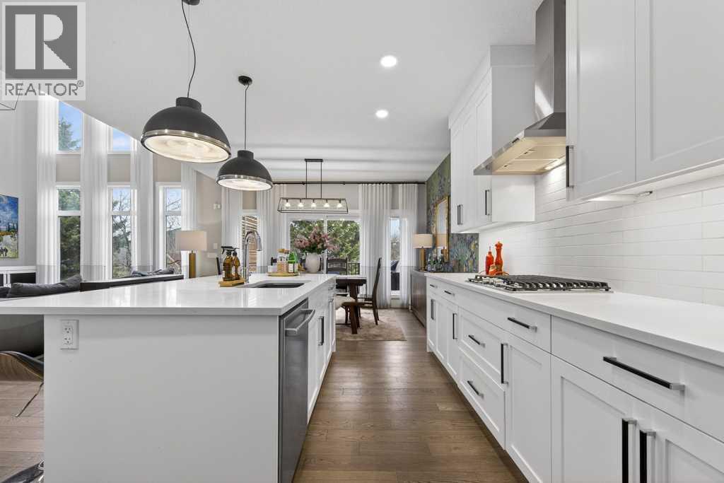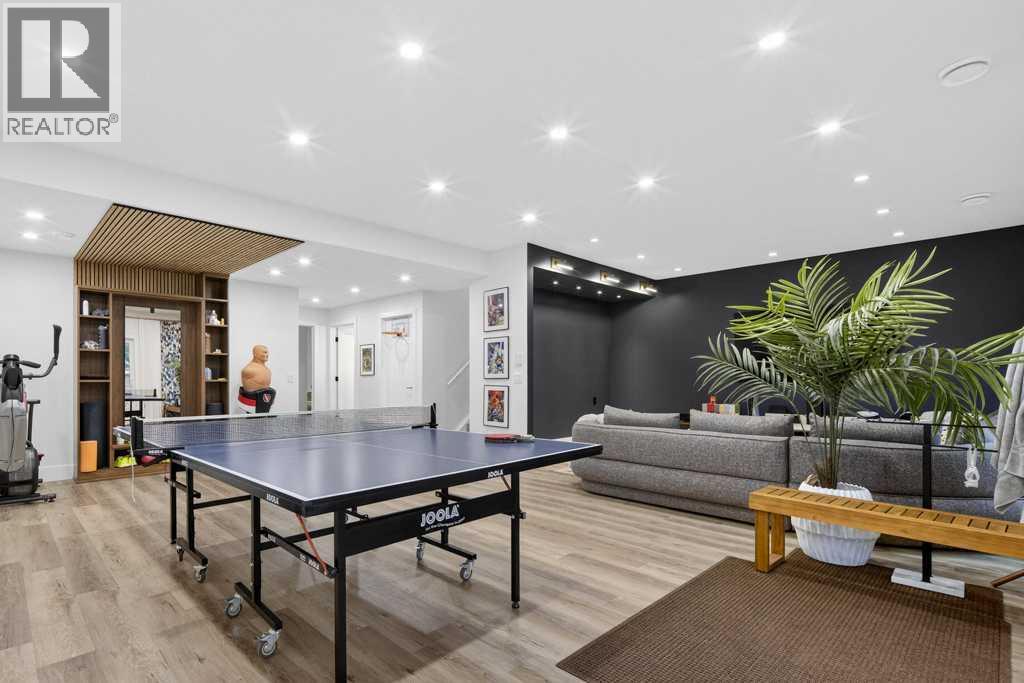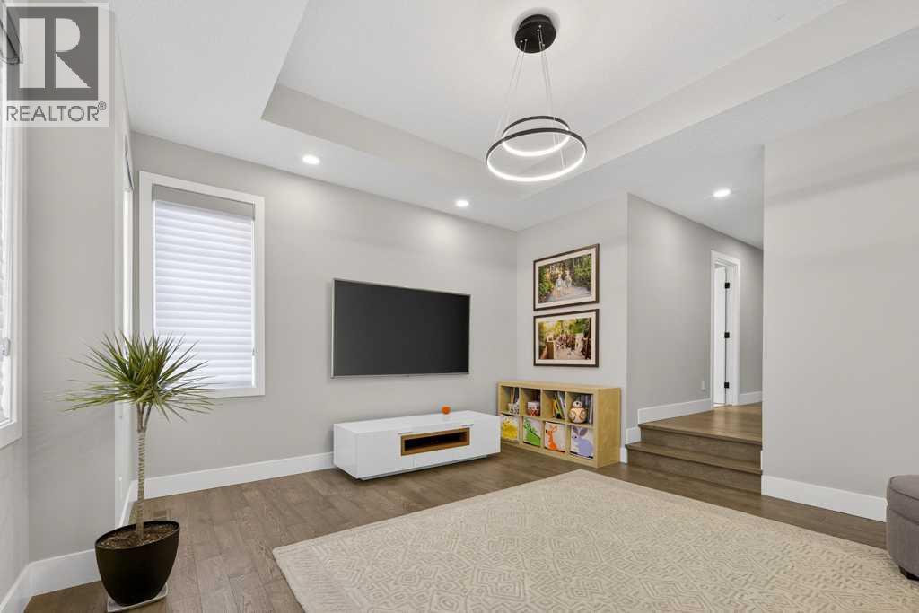 Exceptional Truman-built home offering over 4,000 sq ft of refined living space, tucked on a quiet cul-de-sac in sought-after West Springs. Stunning curb appeal with custom-coloured James Hardie siding and an exposed aggregate driveway. Inside, the home has been professionally painted throughout, with finished garage detailing, designer drapery across the home, a striking dining-room mural feature wall, and thoughtful built-ins that elevate both style and function. The main and upper levels feature engineered hardwood flooring throughout, creating a clean, elevated look. The main floor is thoughtfully designed with a private office/den, a spacious mudroom, and a walk-through pantry with convenient servery. The gourmet kitchen is a showpiece with full-height custom cabinetry, quartz countertops, upgraded gas stove, and new refrigerator and dishwasher.Upstairs, a sunken bonus room creates the perfect retreat, complemented by two generous secondary bedrooms and a full 4-piece bath. The spacious primary suite is a true escape with a spa-inspired ensuite featuring dual vanities and an oversized custom-tiled shower. The laundry area includes a new washer and dryer plus an LG Styler steam clothing care system for next-level convenience. The professionally developed basement—designed with interior designer guidance—delivers a true lifestyle upgrade with a dedicated custom gym, soundproofed areas, and separate thermostat-controlled zones for the bedroom and main living space, finished with durable laminate flooring.Step outside to a meticulously designed backyard retreat with exposed aggregate patios and pads, dual pergolas on upper and lower levels, Gemstone permanent exterior lighting with the latest hub technology, outdoor heaters, and a custom outdoor fireplace. A professionally installed Wi-Fi-controlled hot tub completes the private oasis. Additional upgrades include underground drainage via a swale system, a full Wi-Fi irrigation system with rain sensor, and beaut iful landscaping featuring a Linden tree plus a Honeycrisp apple tree. The oversized triple garage is fully upgraded with finished flooring, an EV charging station, and ceiling/wall-mounted storage systems. Ideally located near top-rated schools (West Springs School, West Ridge School, Ernest Manning High School) and premier private options like Webber Academy and Calgary French & International School, with quick access to shopping, dining, downtown via Bow Trail, and Stoney Trail—surrounded by parks, pathways, and green spaces. A rare opportunity to own a truly turnkey luxury home in an unbeatable westside location. (id:63190)