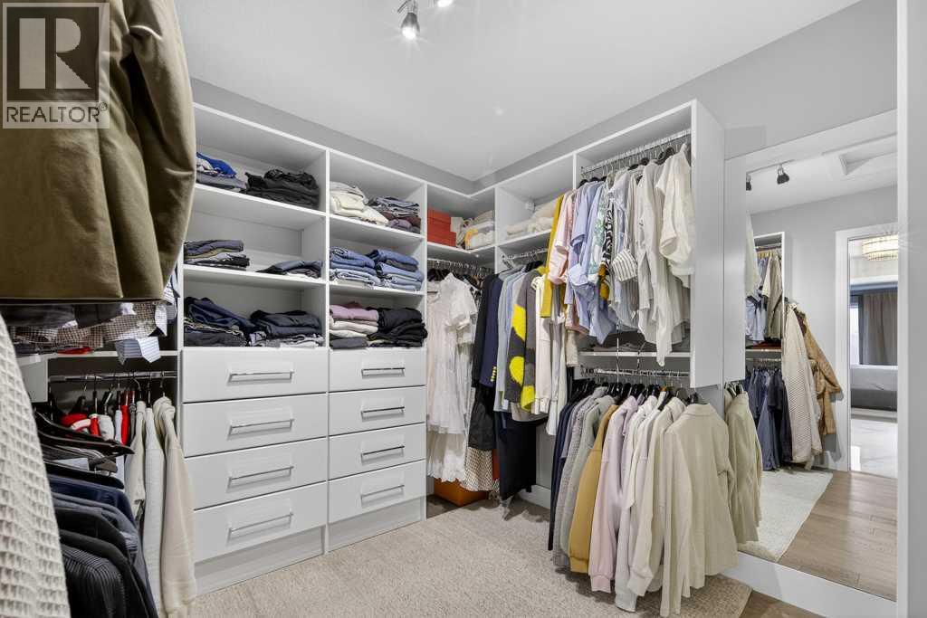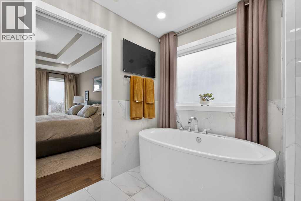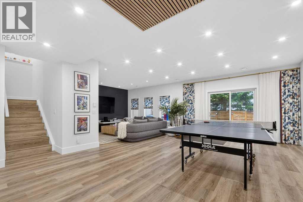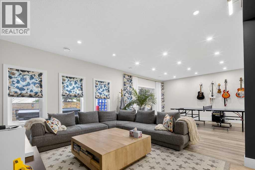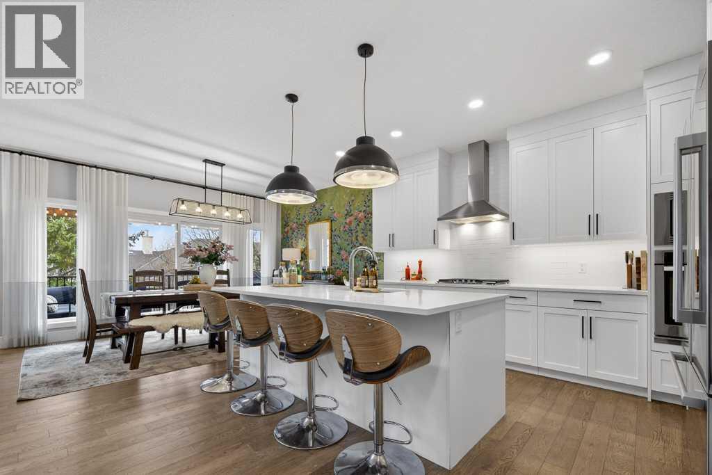 Exceptional Truman-built home offering over 4,000 sq ft of refined living space, tucked on a quiet cul-de-sac in sought-after West Springs. Stunning curb appeal with custom-coloured James Hardie siding and an exposed aggregate driveway. Inside, the home has been professionally painted throughout, with finished garage detailing, designer drapery across the home, a striking dining-room mural feature wall, and thoughtful built-ins that elevate both style and function. The main and upper levels feature engineered hardwood flooring throughout, creating a clean, elevated look. The main floor is thoughtfully designed with a private office/den, a spacious mudroom, and a walk-through pantry with convenient servery. The gourmet kitchen is a showpiece with full-height custom cabinetry, quartz countertops, upgraded gas stove, and new refrigerator and dishwasher.Upstairs, a sunken bonus room creates the perfect retreat, complemented by two generous secondary bedrooms and a full 4-piece bath. The spacious primary suite is a true escape with a spa-inspired ensuite featuring dual vanities and an oversized custom-tiled shower. The laundry area includes a new washer and dryer plus an LG Styler steam clothing care system for next-level convenience. The professionally developed basement—designed with interior designer guidance—delivers a true lifestyle upgrade with a dedicated custom gym, soundproofed areas, and separate thermostat-controlled zones for the bedroom and main living space, finished with durable laminate flooring.Step outside to a meticulously designed backyard retreat with exposed aggregate patios and pads, dual pergolas on upper and lower levels, Gemstone permanent exterior lighting with the latest hub technology, outdoor heaters, and a custom outdoor fireplace. A professionally installed Wi-Fi-controlled hot tub completes the private oasis. Additional upgrades include underground drainage via a swale system, a full Wi-Fi irrigation system with rain sensor, and beaut iful landscaping featuring a Linden tree plus a Honeycrisp apple tree. The oversized triple garage is fully upgraded with finished flooring, an EV charging station, and ceiling/wall-mounted storage systems. Ideally located near top-rated schools (West Springs School, West Ridge School, Ernest Manning High School) and premier private options like Webber Academy and Calgary French & International School, with quick access to shopping, dining, downtown via Bow Trail, and Stoney Trail—surrounded by parks, pathways, and green spaces. A rare opportunity to own a truly turnkey luxury home in an unbeatable westside location. (id:63190)