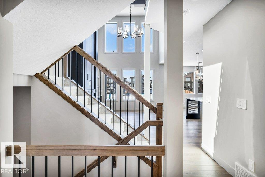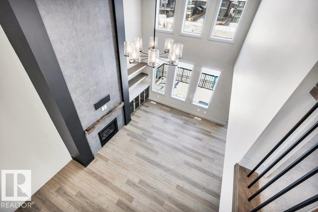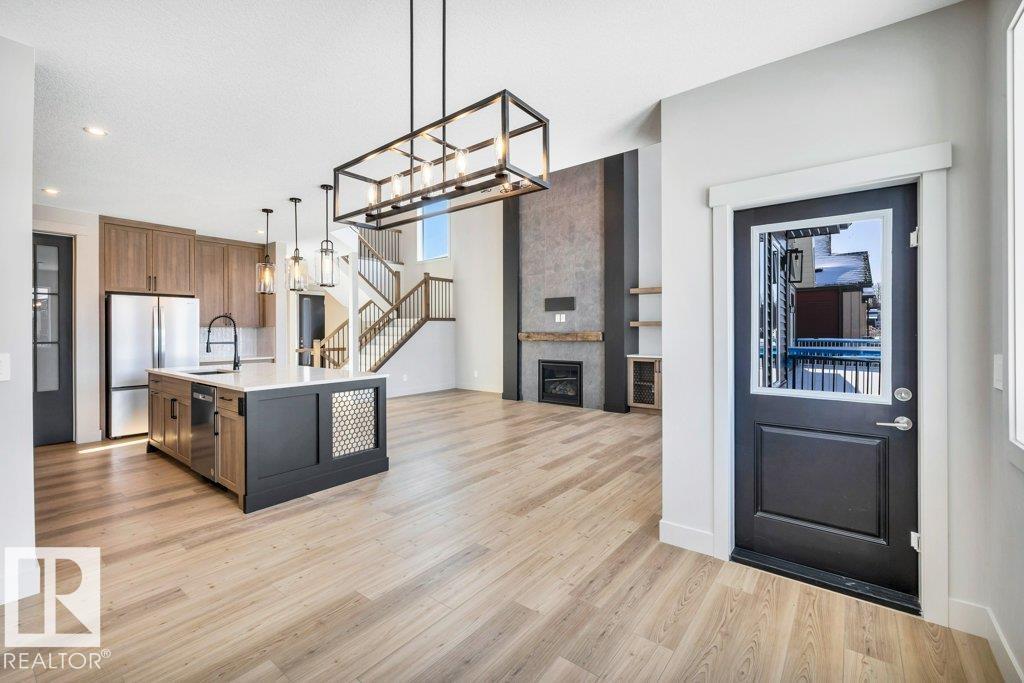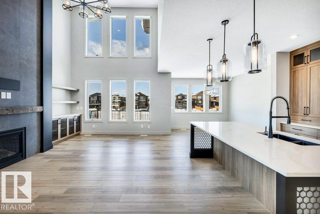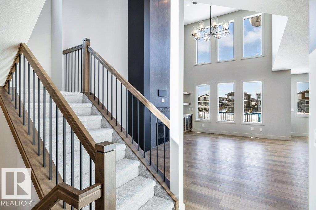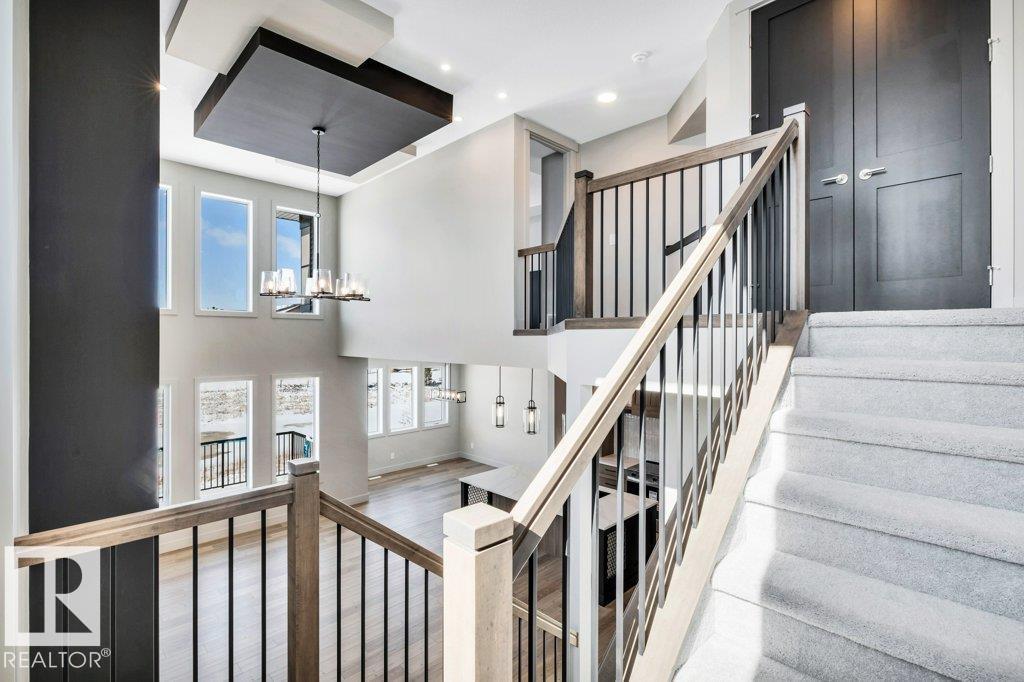 Welcome to this exquisite two-story walk-out home backing a pond built by Homexx. The main floor features an open-concept layout, ideal for entertaining. The chef-inspired kitchen boasts a large island, custom cabinetry, stainless steel appliances, and overlooks the dining area and great room. Upstairs, you'll find four spacious bedrooms, a bonus room with a vaulted ceiling, a laundry room, and two bathrooms. The primary bedroom is bright and airy, offering a 5-piece ensuite with a separate shower and tub, plus an impressive walk-through closet leading to the laundry. Additional highlights include quartz countertops, elegant lighting, luxury vinyl plank flooring, a gas fireplace, 8-foot interior doors, stylish railings with wrought iron spindles and 200 amp service. With excellent curb appeal, a double oversized attached garage, and proximity to walking trails this home has it all. (id:63190)