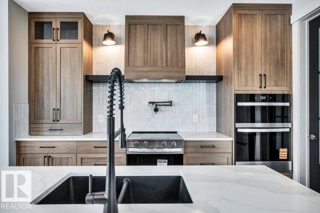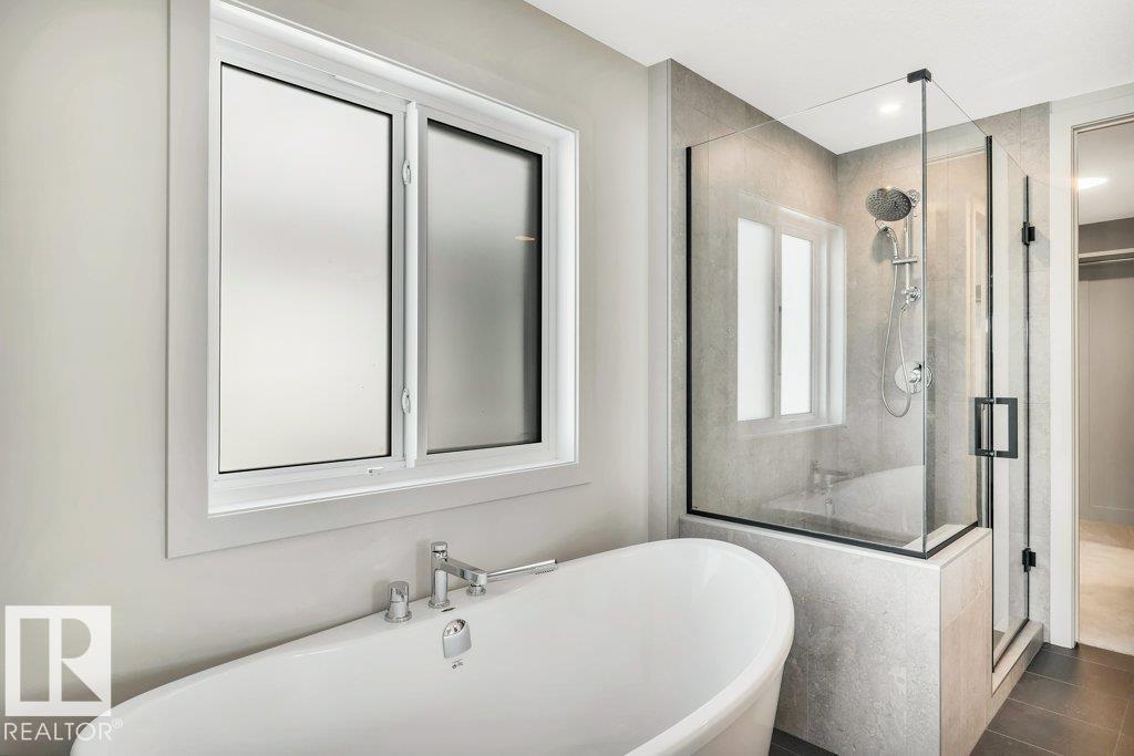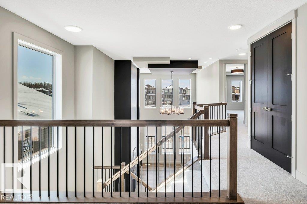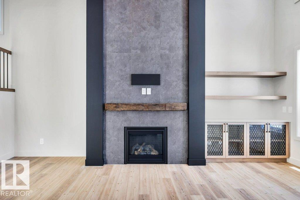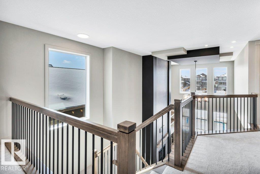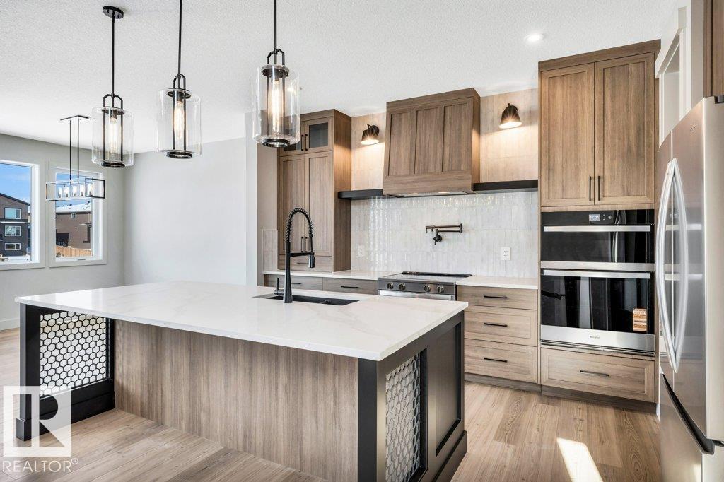 Welcome to this exquisite two-story walk-out home backing a pond built by Homexx. The main floor features an open-concept layout, ideal for entertaining. The chef-inspired kitchen boasts a large island, custom cabinetry, stainless steel appliances, and overlooks the dining area and great room. Upstairs, you'll find four spacious bedrooms, a bonus room with a vaulted ceiling, a laundry room, and two bathrooms. The primary bedroom is bright and airy, offering a 5-piece ensuite with a separate shower and tub, plus an impressive walk-through closet leading to the laundry. Additional highlights include quartz countertops, elegant lighting, luxury vinyl plank flooring, a gas fireplace, 8-foot interior doors, stylish railings with wrought iron spindles and 200 amp service. With excellent curb appeal, a double oversized attached garage, and proximity to walking trails this home has it all. (id:63190)