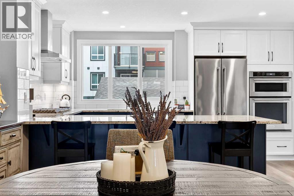 Are you looking to live in a Lake Community? This is your opportunity - MAHOGANY LAKE! Start enjoying this convenient Mahogany Lake Location - Steps away from the Clubhouse, lake, ponds, Ice rink, parks, pathways, schools (x2), shopping, soccer, bike paths, South Health Campus, transit, and the major south expressways. Community lifestyle living that makes Mahogany Lake a safe, secure place to live. An excellent URBAN-STYLE air-conditioned Jayman BUILT "SONATA" home on a south-facing front-yard homesite with many custom Jayman Design centre-upgraded features. Meticulously maintained & crafted by the original owners - Truly a custom-built DREAM home. Over 1688 SF of luxury living space offering 3 bedrooms, 2.5 baths & an oversized long detached 2-car garage ... Check out the floor plan and pictures! This OPEN design features 8' & 12' main floor ceilings - Spectacular CHEF's kitchen overlooking the dining area and the lower great room. The living room features high 12' ceilings, a stone-faced electric fireplace with a mantel and sunny south views. Upgraded features include a metal post railing, triple-pane windows, quartz countertops, a tankless water heater, an active heat recovery system, luxury wide-plank vinyl flooring throughout, plush carpeted staircase, light & plumbing fixtures, baseboard, doors and casings... and so much more! The kitchen is masterfully designed for efficiency and entertaining: Sleek modern ceiling height, classic white wood upper cabinet doors, rich blue lower cabinets, soft close drawers and doors, granite countertops, upgraded Kitchen Aid stainless steel appliances with a gas cooktop & hood cover, full white subway tiled backsplash, recessed LED lighting, dramatic peninsula island with an eating bar for three & undermount black granite sink with extended bench/window above, and pantry. Upstairs includes an oversized primary bedroom with tray ceilings, a full spa-like ensuite featuring dual vanities, a walk-in glass-door shower, and a super sized walk-in closet. Plus, 2 good-sized spare bedrooms, an upper laundry room with ensuite access, and a central walkway for excellent traffic flow. Other impressive features include a side door entrance, 6 solar panels, tankless water heater, high efficiency 2 stage furnace, high 10'-11' basement ceilings, a big back yard with an upper BBQ wood deck, a lower 16' x 15' patio with a detached insulated 20' x 24' - 2 car garage, rich front curb appeal with stone details and a covered entry. June possession date available! Call your friendly REALTOR(R) to book a viewing! A lake lifestyle amenity beyond compare - Mahogany’s Central Beach site is the home of the community’s grand Beach Club, where residents have exclusive access to sandy beaches, a splash park, tennis courts, play equipment, a fishing pier and a non-motorized marina, and more! Don’t miss this opportunity. Call your friendly REALTOR(R) to book your viewing right away! (id:63190)