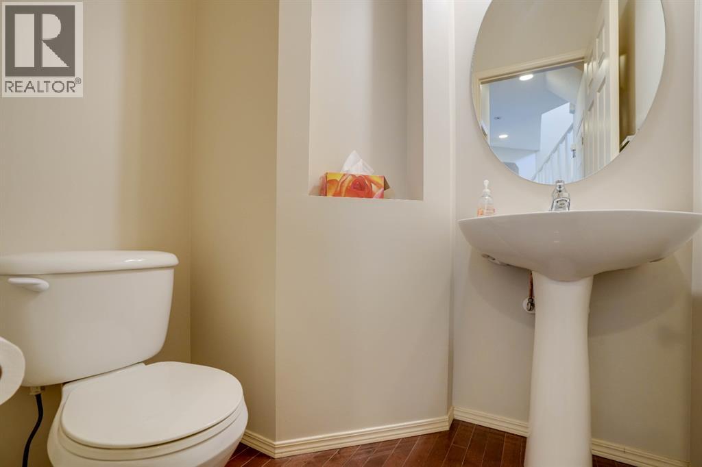 Great Cul-de-sac location in Tuscany with mountain views. This 3 bedroom, one of Cedarglen's best-selling homes, the "Bonneyville" has been newly renovated with New Carpeting & Fresh Paint. A large entrance welcomes you and opens up into a bright, beautiful space with gleaming hardwood flooring extending into the kitchen. The large kitchen features pot lights newer stainless steel appliances, a centre island with and a corner pantry.The large eating nook opens up to the landscaped backyard, featuring a large deck with metal railing.A 2 pc bathroom & laundry/mudroom area completes the main floor. Upstairs boasts 3 great sized bedrooms, including a large primary bedroom with a walk-in closet and spacious en-suite featuring a soaker tub and separate shower. The garage is insulated with a gas -fired heater for a comfortable work-space. (id:63190)