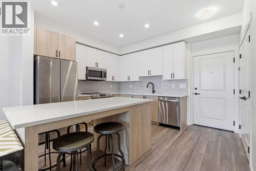 BEAUTIFUL TOP FLOOR, 3-BEDROOMS | 2 FULL BATHROOMS | 1 HEATED UNDERGROUND TITLED PARKING | STORAGE CAGE | LARGE BALCONY | Immaculate & Spacious 3-Bedroom Condo – A Must-See! Welcome to your new home! This top-floor 3-bedroom condo is in pristine condition, offering a spacious and modern living space perfect for comfort and style. Featuring two full bathrooms with quartz countertops and stylish LVP flooring throughout, this home combines elegance with convenience. The fully upgraded kitchen boasts sleek modern cabinets, a central island with quartz countertops, and high-end stainless steel appliances. For added convenience, enjoy in-suite laundry, heated underground titled parking and a storage cage for both security and comfort. Additional rental stalls are available as well. With soaring 9-foot ceilings and an abundance of natural light, every room feels open and airy. Step out onto the oversized balcony, ideal for summer BBQs and relaxing with friends and family. Location is key with this prime property, situated close to Creekside Shopping Center, Stoney Trail, and a variety of amenities like Co-Op, Walmart, T&T, and Costco. Calgary International Airport is less than 20 minutes away, perfect for frequent travelers. Take advantage of the nearby walking paths and picturesque storm ponds, offering a peaceful outdoor escape. This pet-friendly condo (subject to approval) allows up to two dogs, two cats, or one of each. Don’t miss out on this incredible opportunity to own a stunning top-floor condo in an unbeatable location! Schedule your viewing today and experience the perfect combination of luxury and convenience. (id:63190)