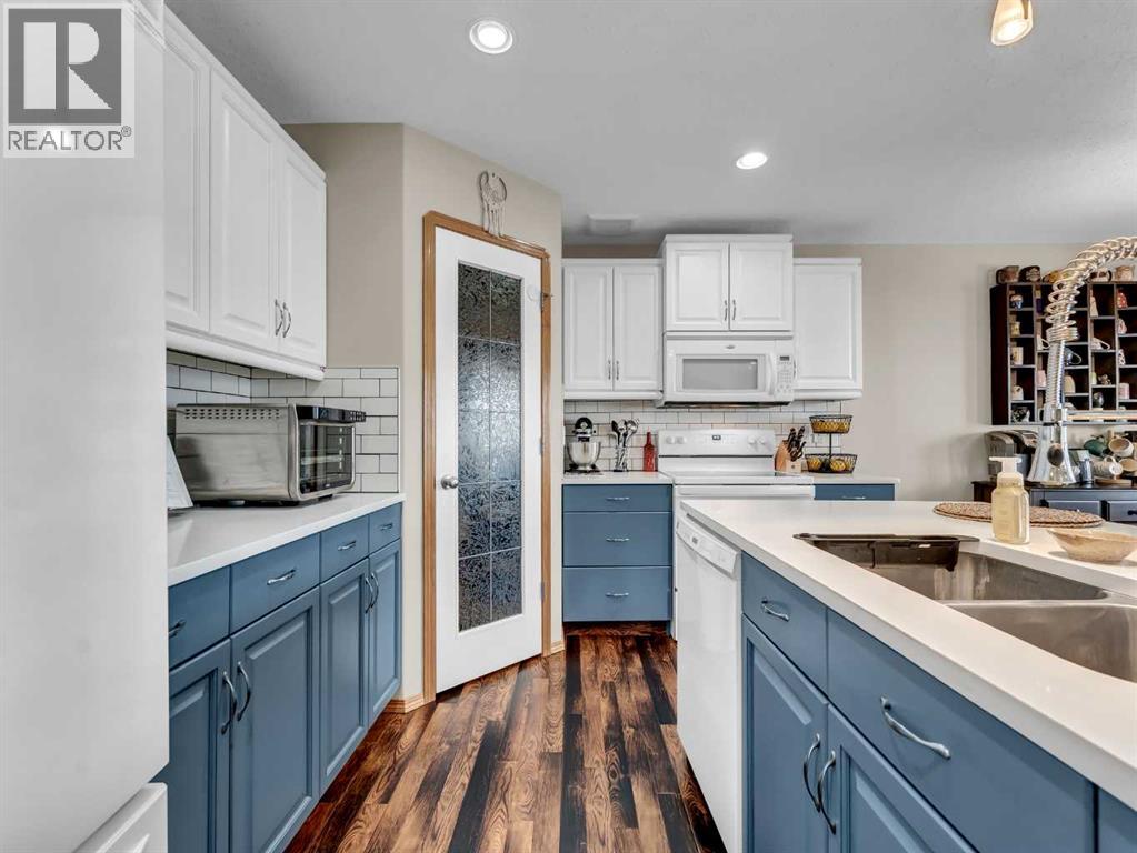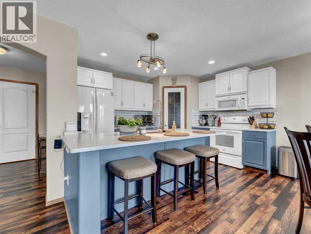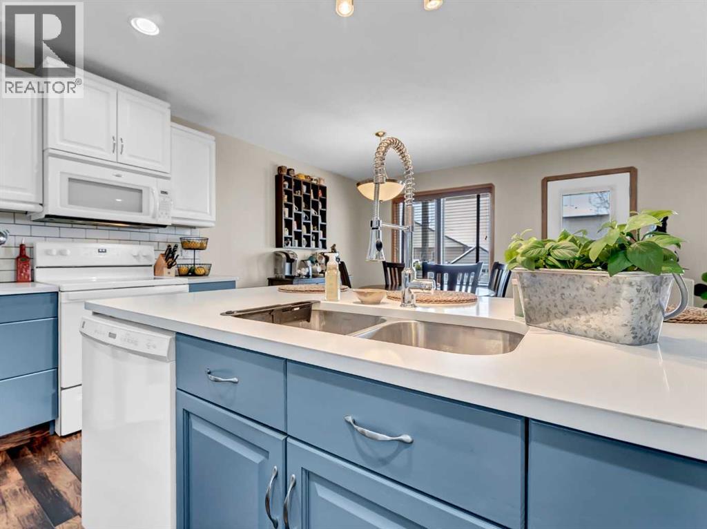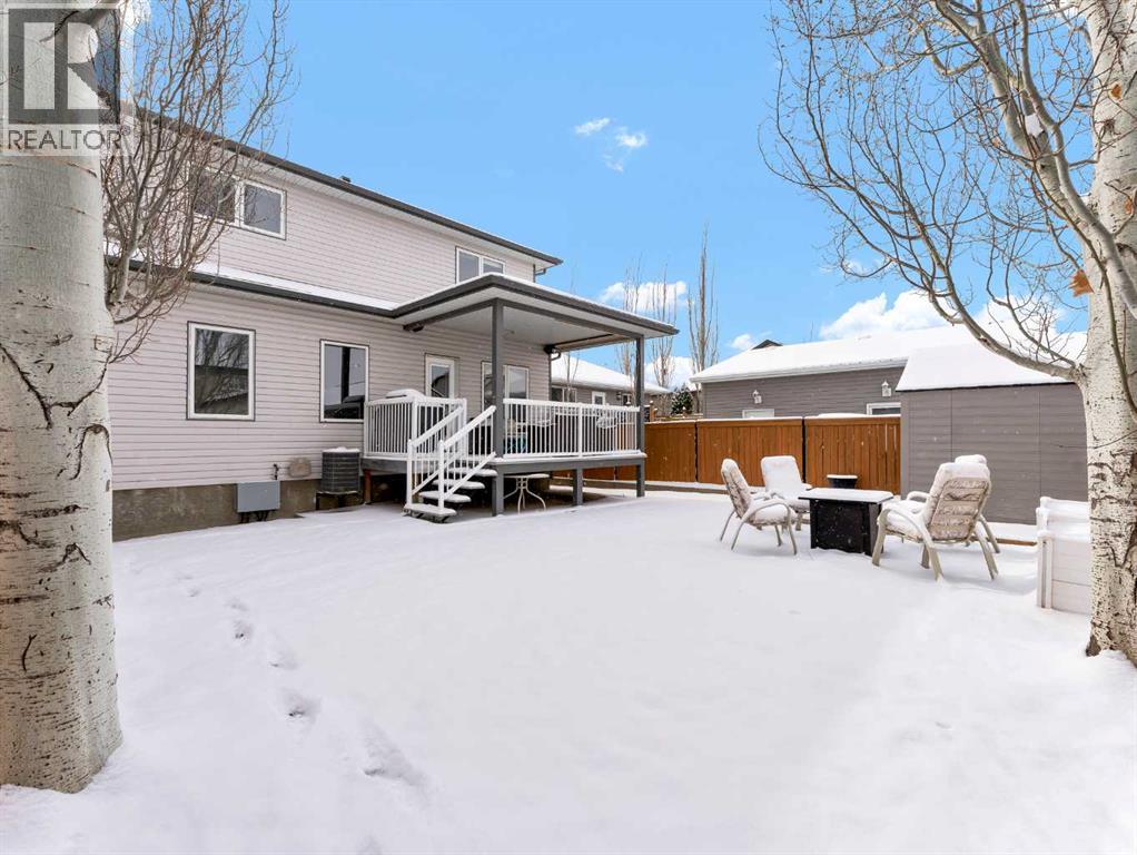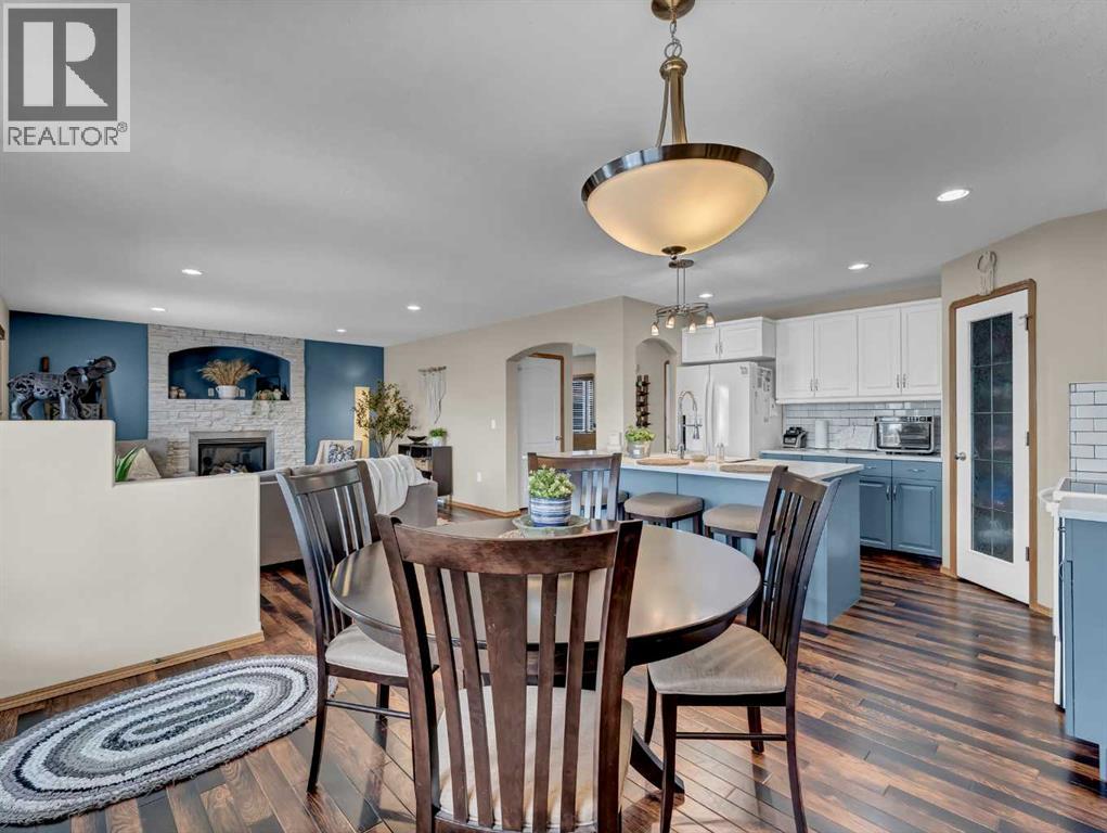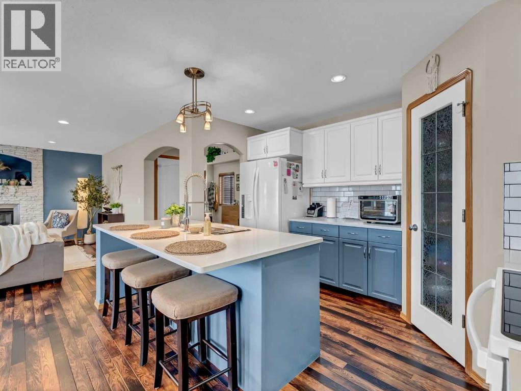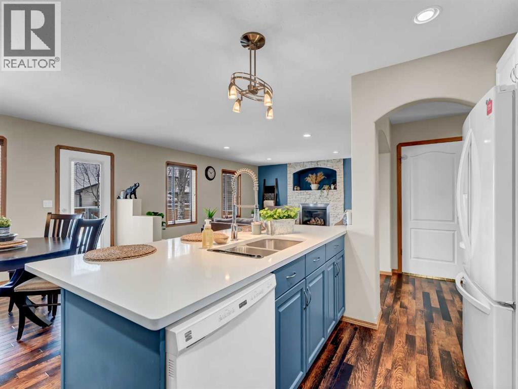 Move-In Ready 2-Storey in a Family-Friendly Location! Welcome to 245 Somerset Way SE—an exceptionally well-maintained home ideally located close to parks, schools, and all amenities.The main floor offers a bright open-concept layout with durable vinyl plank flooring and a spacious living room featuring a stunning new stone gas fireplace. The beautifully updated kitchen showcases painted white and blue cabinetry, quartz countertops, a large centre island with eat-up seating, and a corner pantry. The generous dining area provides access to the covered back deck with gas line for your BBQ, overlooking the fully fenced and landscaped yard complete with underground sprinklers and a shed. A convenient 2-piece bath and main floor laundry with access to the attached heated double garage complete this level. Upstairs, you’ll find 3 comfortable bedrooms, including the primary suite with walk-in closet and 3-piece ensuite, plus a full 4-piece bathroom. The fully developed lower level features a large family room wired for surround sound, an additional bedroom (perfect for a home gym, office, or playroom), and a 3-piece bathroom with jetted tub and heated floors. Recent updates include new shingles (2021), hot water tank (2021), and newer A/C—offering peace of mind for years to come. Average utilities are approximately $350/month. This is a fantastic opportunity to own a truly move-in ready home in a great neighbourhood! (id:63190)