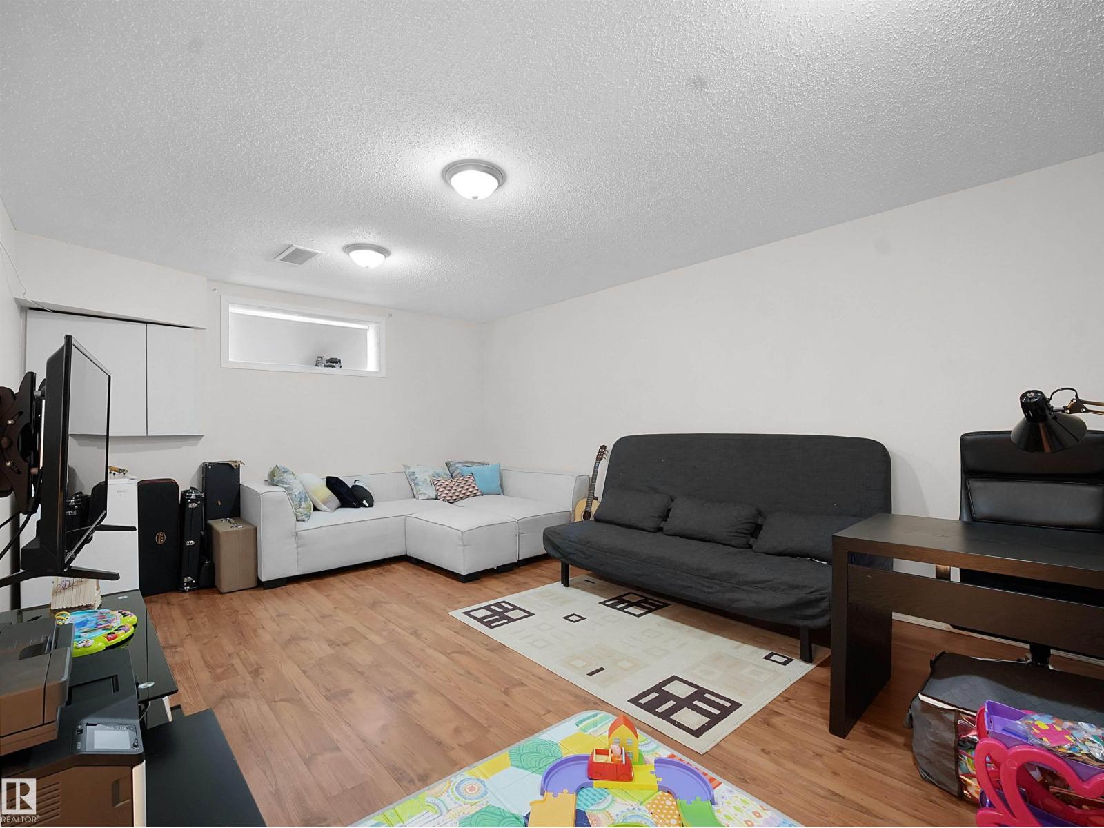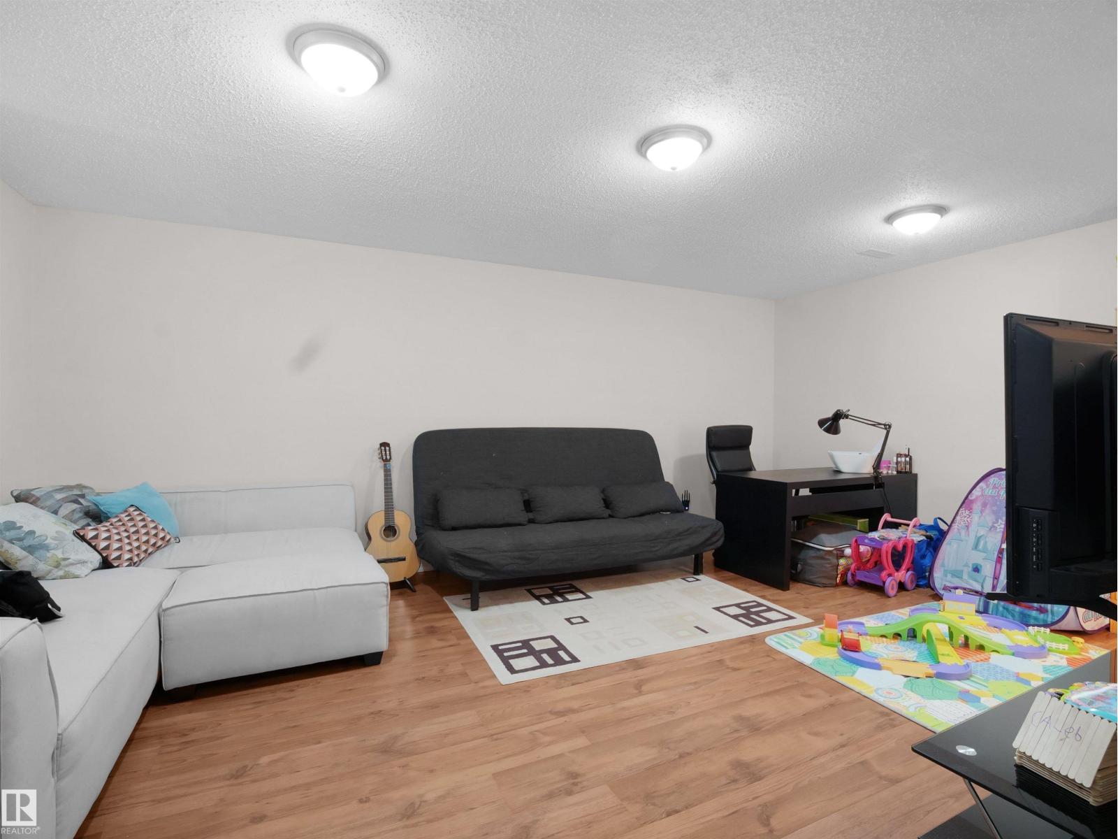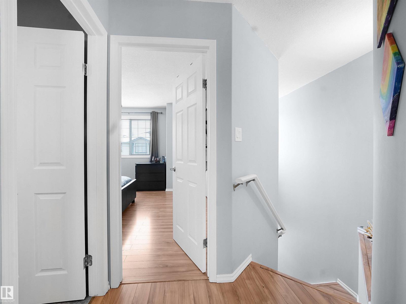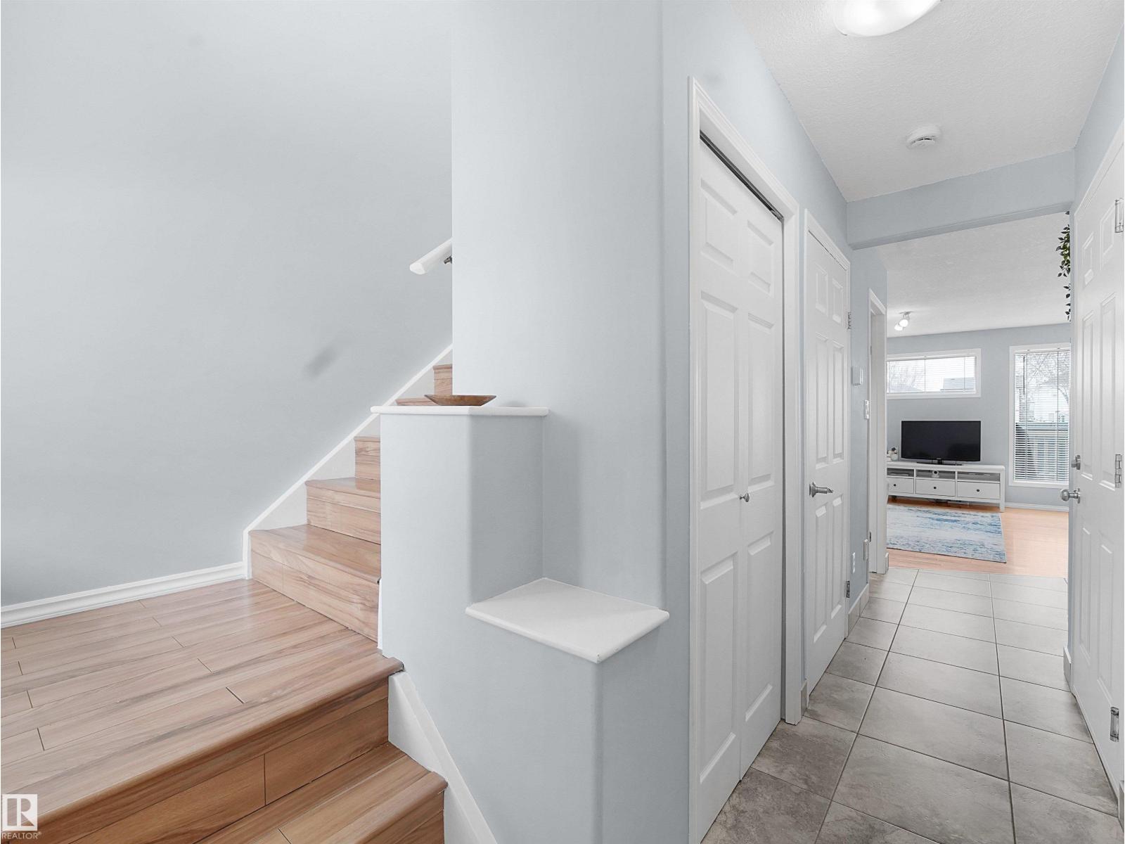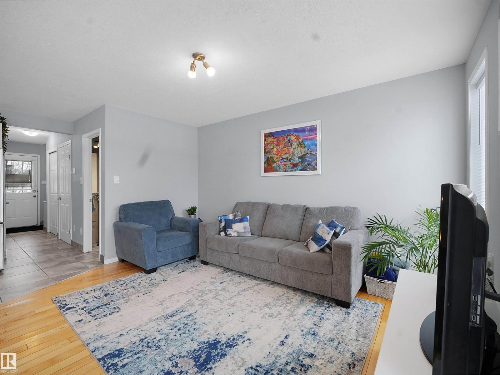 Welcome to this beautifully maintained end unit with no-carpet home in the desirable community of Glastonbury - offering comfort, functionality, and an unbeatable location. Hardwood flooring elevates the bright and inviting Living and Dining areas and home offers ample bright natural light throughout the modern layout. The kitchen is equipped with quality appliances and seamlessly connects to the open-concept main floor. The fully finished basement adds exceptional flexibility, featuring a spacious Family Room that can easily function as a fourth bedroom, complete with a 3-piece bathroom, dedicated laundry area, and ample storage. Step outside to enjoy a private south-facing deck plus a charming front veranda. The home offers single garage attached and 2 extra parking space on the garage pad. Ideally located close to the lake and shopping with plenty of visitor parking nearby within the complex. Clean, well-maintained, and truly move-in ready. (id:63190)