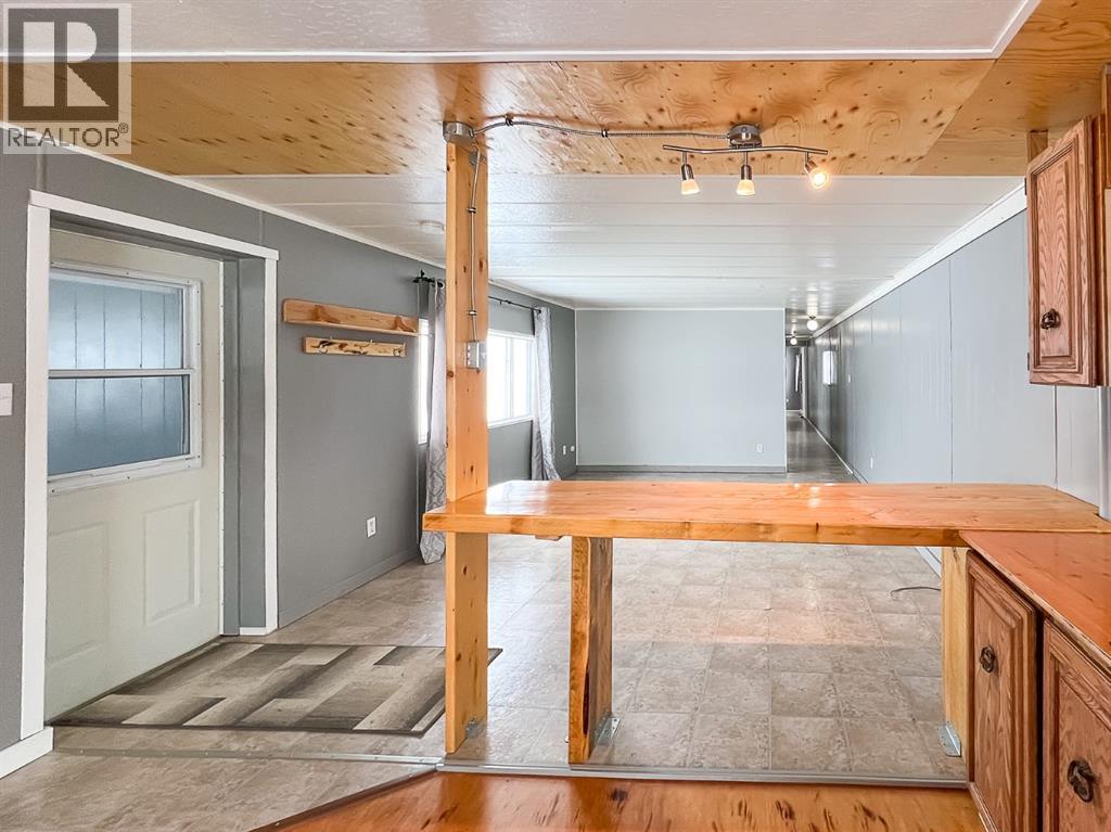 Welcome to this charming 2-bedroom home in Donnelly, offering a comfortable layout with thoughtful updates throughout. The renovated bathroom adds a fresh, modern touch, while the open-concept living, dining, and kitchen area creates an easy, connected space for everyday living. The kitchen offers plenty of cupboard and counter space, along with a wood eat-up bar that works perfectly for quick meals, morning coffee, or catching up with friends while you cook. The living area feels bright and inviting, and the large, cold room/boot room entryway offers tons of practical storage with closets and flexible space. Out back, you’ll find a beautifully kept yard with mature trees and shrubs, plus raspberry and saskatoon bushes to enjoy in the summer. With no rear neighbours, the space feels private and peaceful. Additional updates include fibre optic availability for high-speed internet, a new fridge, and a furnace replaced in 2018. Whether you’re buying your first home, looking to downsize, or wanting a solid rental property, this one checks all the boxes. Book your showing and come see it for yourself! (id:63190)
