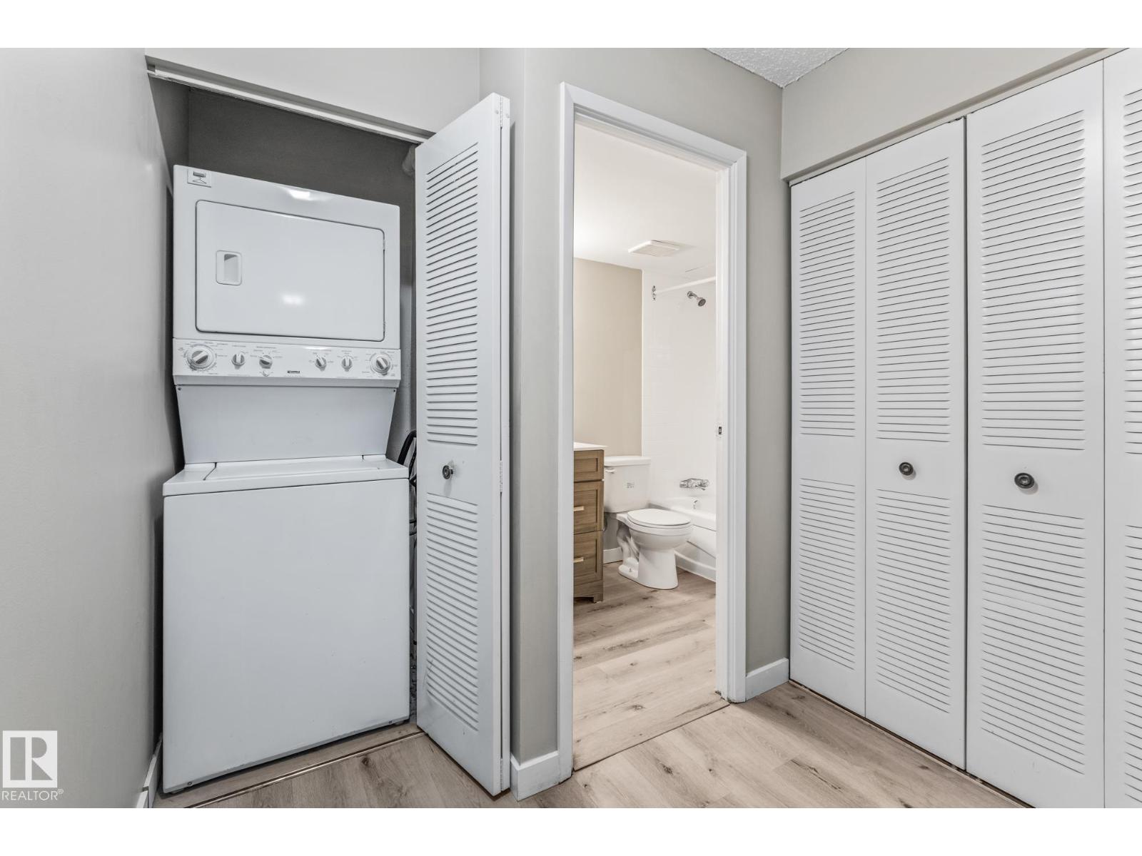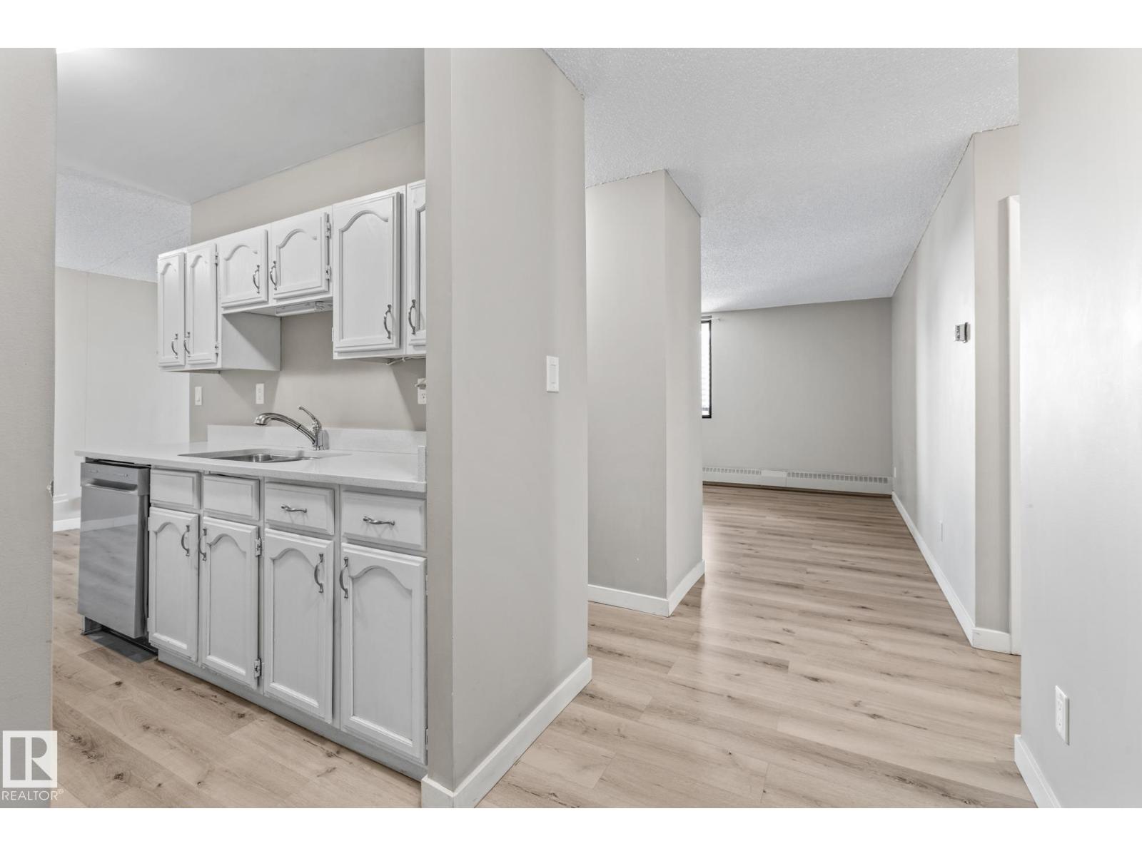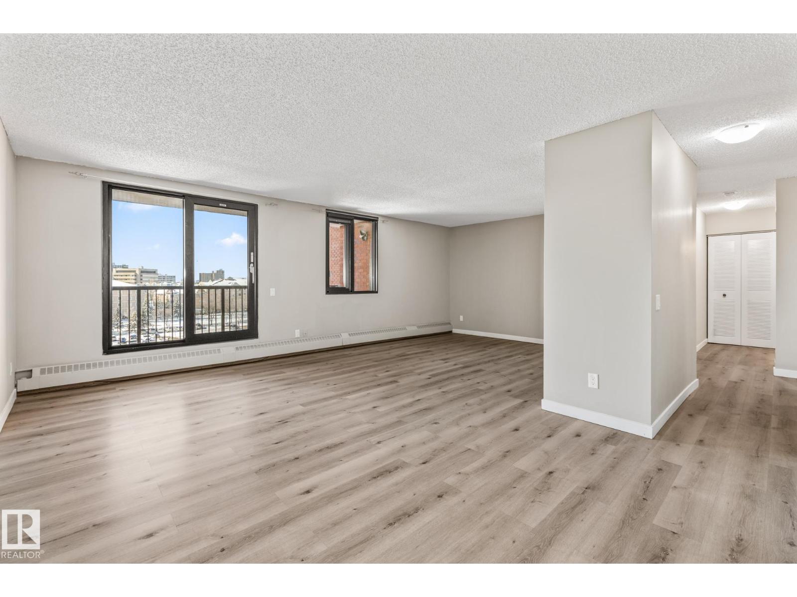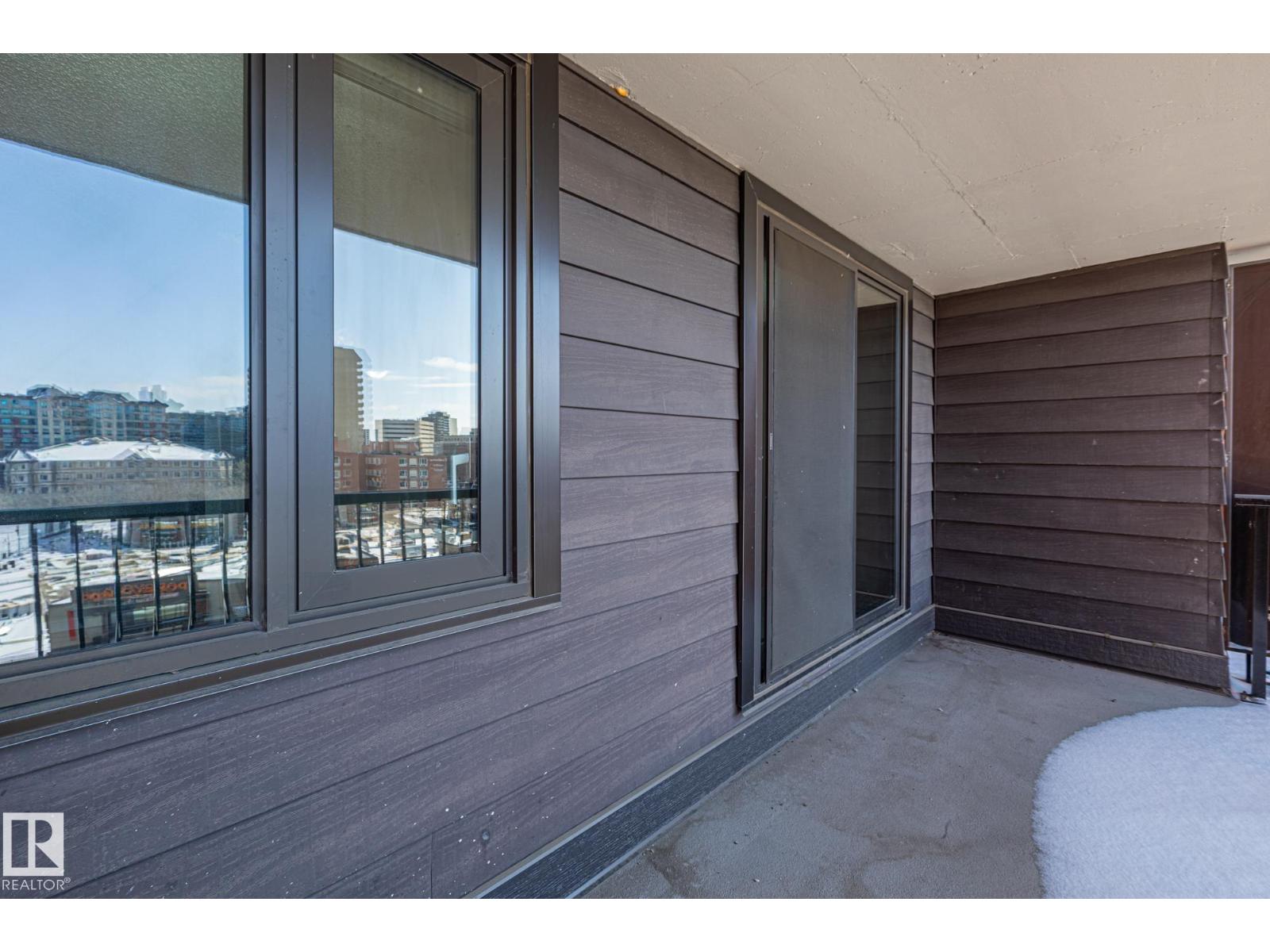 PRIME DOWNTOWN LOCATION! This spacious, well-maintained 1-bedroom condo puts you steps from restaurants, nightlife, shopping, and the LRT. MacEwan University is within walking distance, and quick transit access makes commuting to the University of Alberta a breeze. Bright and functional layout featuring newer laminate flooring throughout, a generous living area, and a large west-facing balcony with stunning downtown views—perfect for evening sunsets and BBQs. The kitchen is finished with granite countertops and includes a brand new dishwasher. This unit also offers in-suite laundry and a titled underground parking stall. The building features great amenities including a fitness room and social room with pool tables and large projector TV system. Major upgrades have already been completed: windows (2020), make-up air unit (2022), backwater prevention (2019), hot water tanks (2018), parkade membrane (2024), and hallway carpets (2022). Condo fees do include all utilities. Excellent value for downtown living! (id:63190)