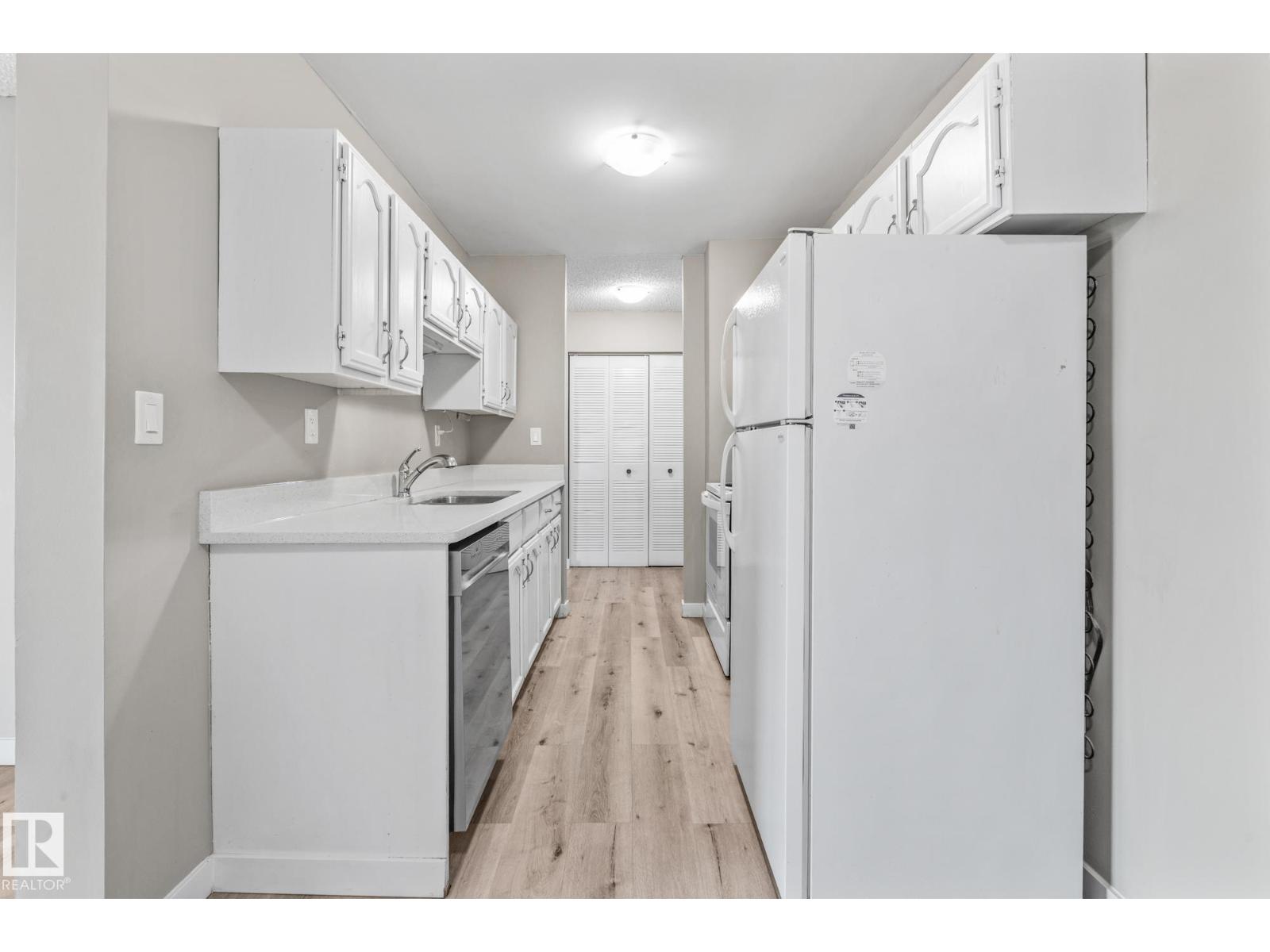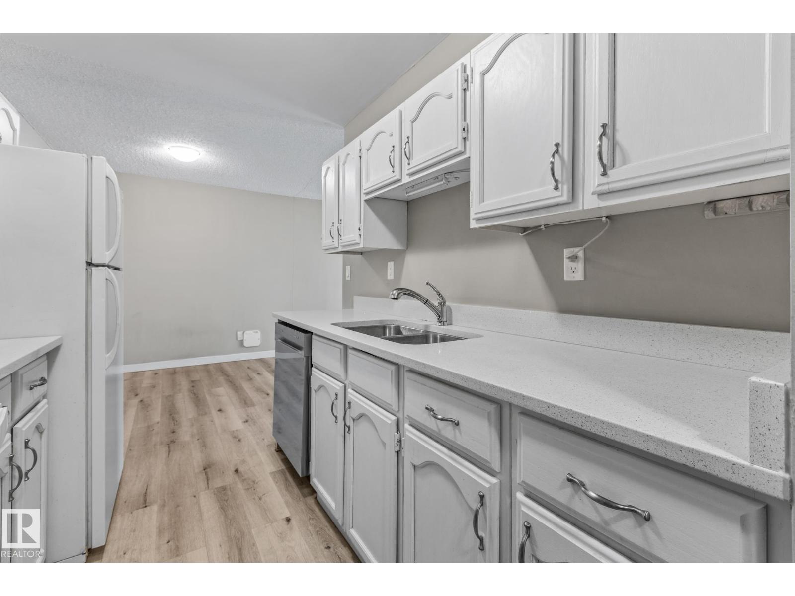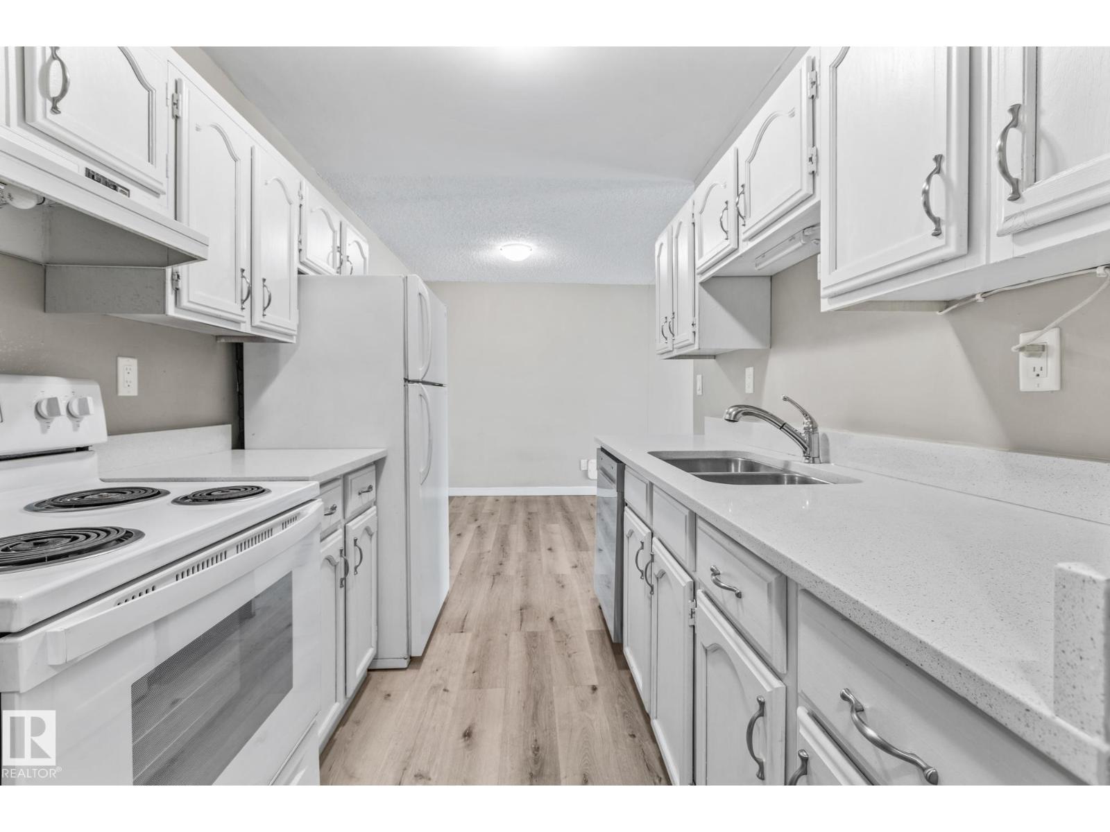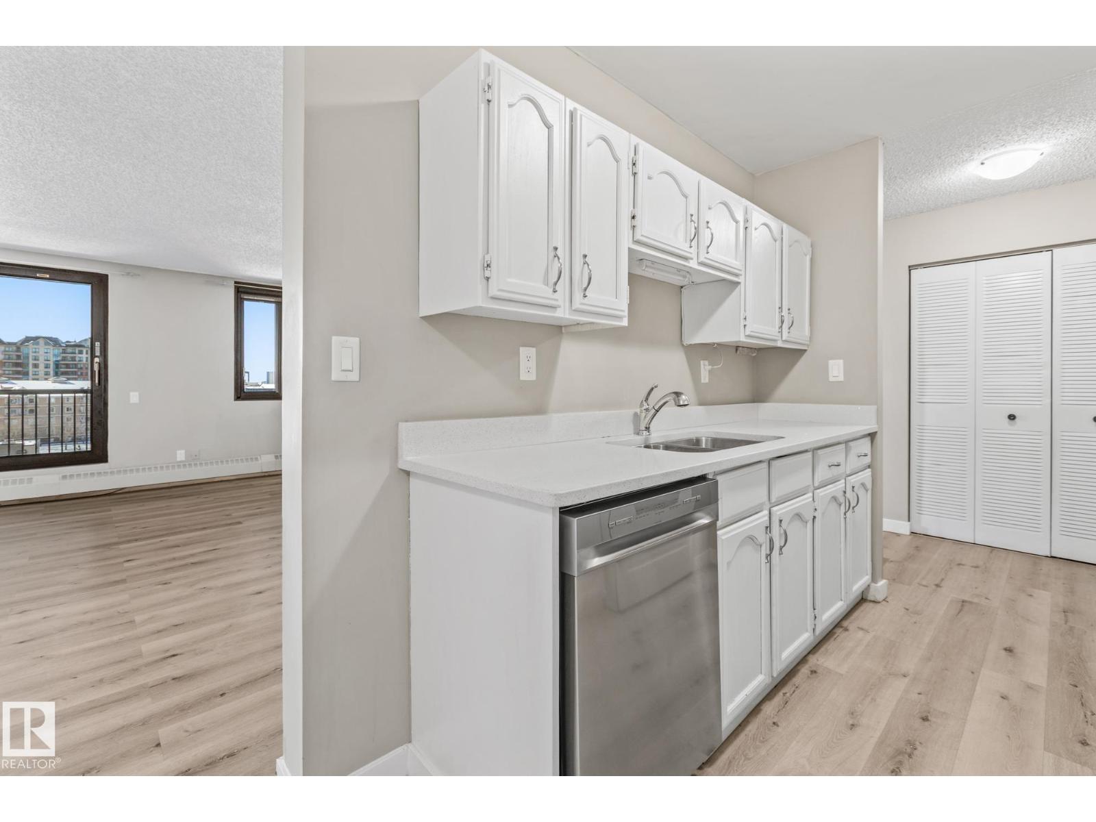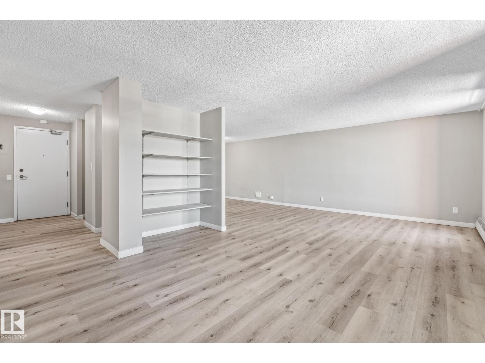 PRIME DOWNTOWN LOCATION! This spacious, well-maintained 1-bedroom condo puts you steps from restaurants, nightlife, shopping, and the LRT. MacEwan University is within walking distance, and quick transit access makes commuting to the University of Alberta a breeze. Bright and functional layout featuring newer laminate flooring throughout, a generous living area, and a large west-facing balcony with stunning downtown views—perfect for evening sunsets and BBQs. The kitchen is finished with granite countertops and includes a brand new dishwasher. This unit also offers in-suite laundry and a titled underground parking stall. The building features great amenities including a fitness room and social room with pool tables and large projector TV system. Major upgrades have already been completed: windows (2020), make-up air unit (2022), backwater prevention (2019), hot water tanks (2018), parkade membrane (2024), and hallway carpets (2022). Condo fees do include all utilities. Excellent value for downtown living! (id:63190)