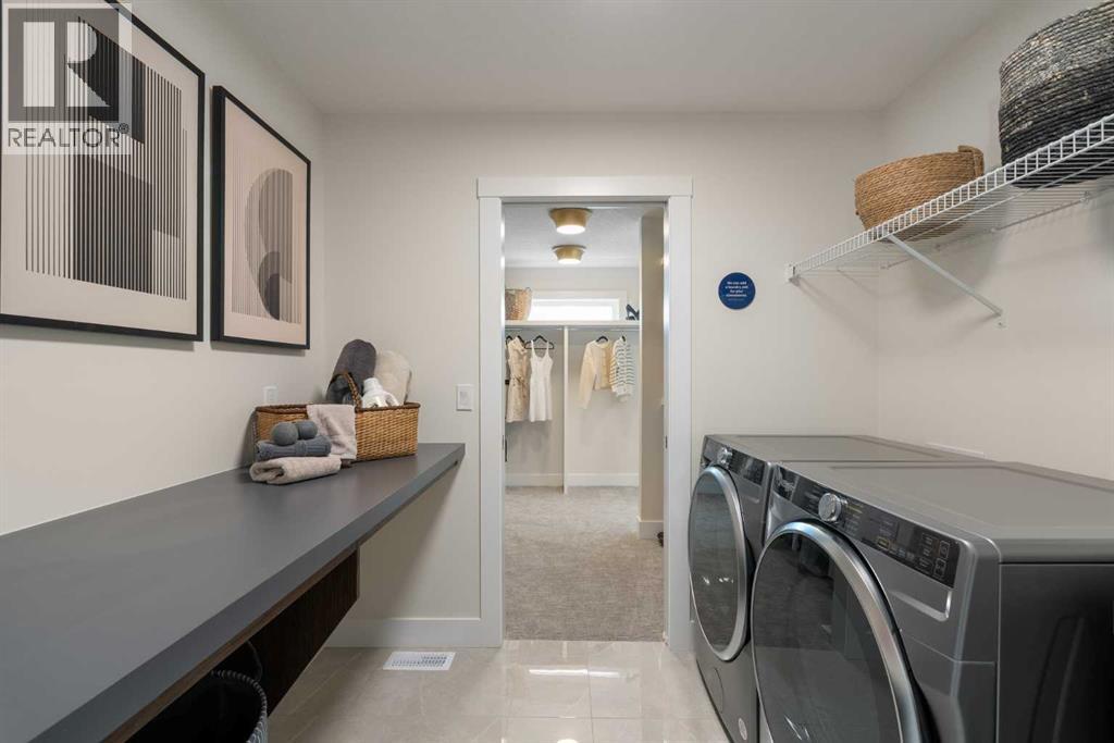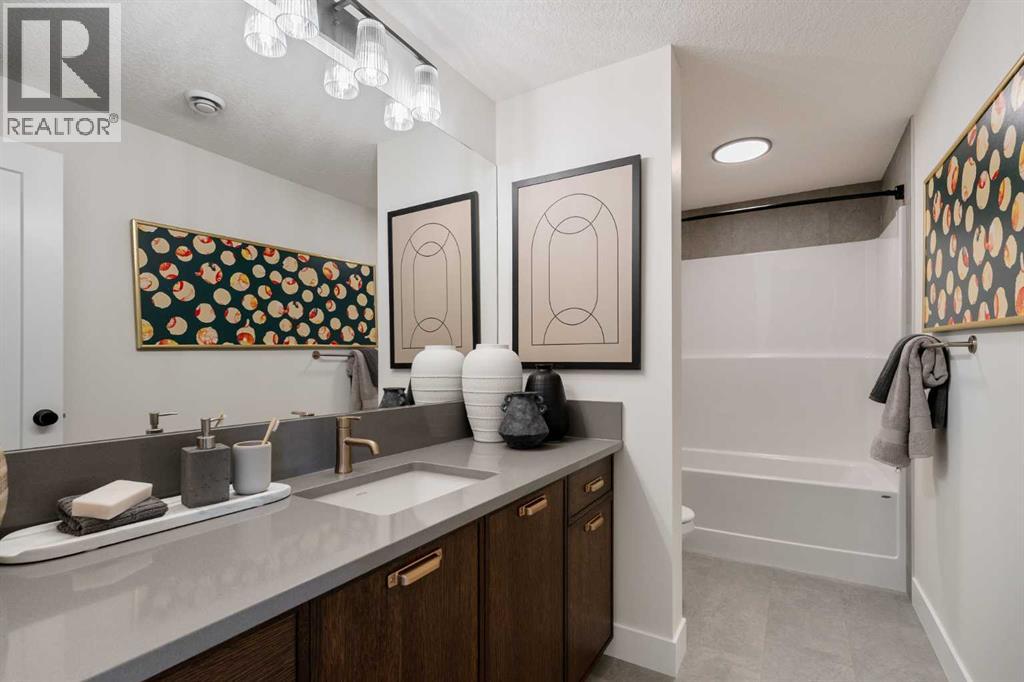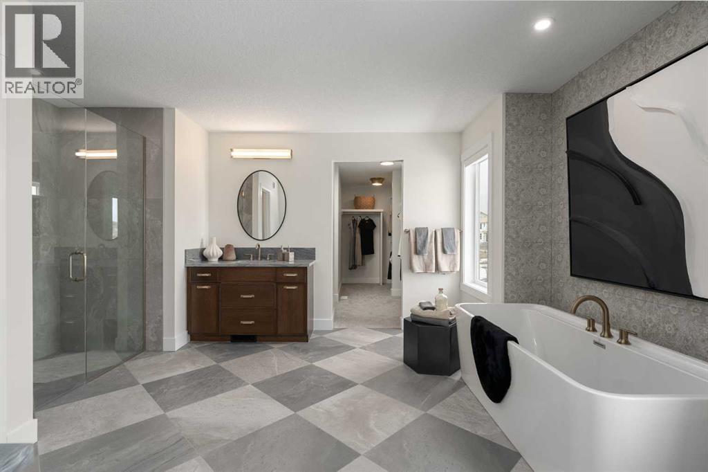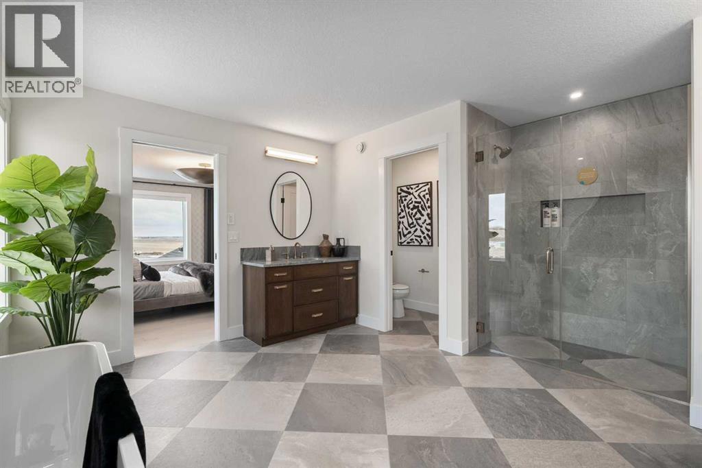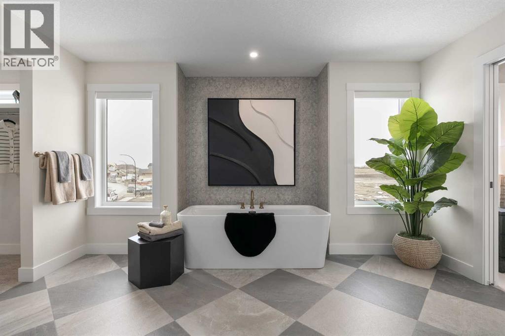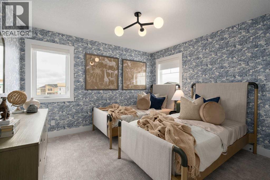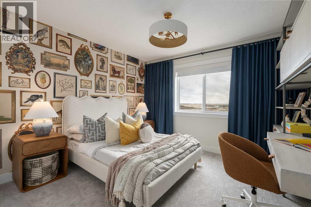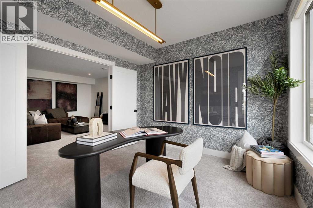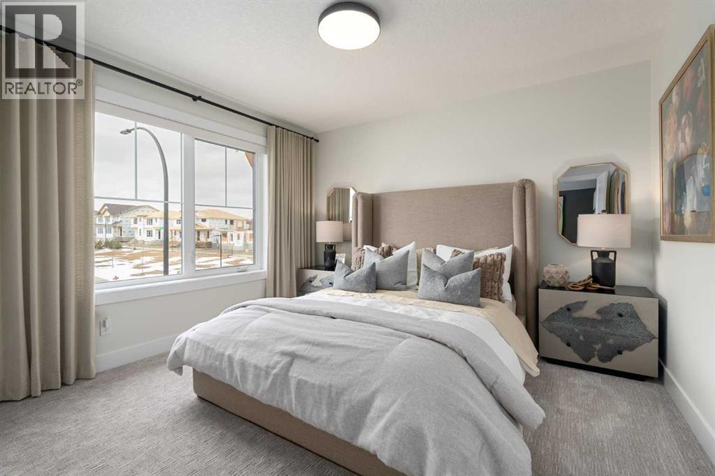 SHOW HOME FOR SALE! Welcome to the Palermo - an impeccably designed, brand-new residence offering a refined blend of modern elegance and everyday functionality, ideally located at 110 Herron Way NE in the sought-after community of Livingston. From the moment you enter, the home impresses with its sophisticated design and seamless flow. The main level is anchored by a stunning central kitchen, thoughtfully curated to serve as both a functional workspace and a striking focal point for entertaining. Featuring a large statement island with waterfall granite countertops, sleek natural wood cabinetry, and a premium Dacor appliance package including a built-in refrigerator, gas cooktop, a wall oven and microwave. This space effortlessly connects to the dining and living areas, creating an open, airy environment enhanced by expansive windows and abundant natural light. The main level is anchored by a dramatic open-to-above great room featuring a striking gas fireplace with tile to the ceiling and expansive windows that flood the space with natural light. The living space is designed with both comfort and style in mind, offering a warm yet elevated atmosphere ideal for hosting or unwinding. Clean lines, contemporary finishes, and intentional design details carry throughout, delivering a cohesive and polished aesthetic. The main level is complete with a bedroom and a full bathroom featuring a walk-in shower - ideal for multi-generational living. Natural wood and iron spindle railings lead to the upper level which overlooks the main level great room. Double doors open to the primary suite, located at the back of the home, away from the secondary bedrooms for optimal privacy. The primary bedroom offers a serene escape, complete with a spacious walk-in closet that connects directly to the laundry room for added convenience. The beautifully appointed ensuite was designed for relaxation, featuring stunning tile design, a curbless walk-in tiled shower with 10mm glass, a soaker tub, individual vanities and a private water closet. Hardwood flooring flows throughout the primary suite and down the hallway to the expansive family room, which features vaulted ceilings, wallpaper and custom lighting. Three generously sized bedrooms, a 5 piece main bathroom, and a large laundry room complete the upper level. The stunning design continues into the professionally developed walkout basement, which features an expansive recreation room, games area and flex space with French doors - creating the ideal home office. A sixth bedroom and full bathroom in the basement create the perfect living space for guests. A wall of windows floods the lower level with natural light, overlooking the private backyard and green space beyond, with patio doors leading to the covered patio. This professionally designed estate property includes a triple attached garage, central A/C, custom window treatments and a timeless cohesive design throughout on one of the community's most coveted home sites. (id:63190)