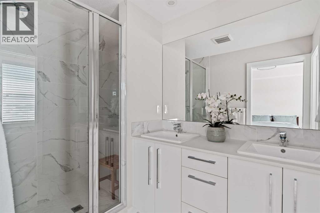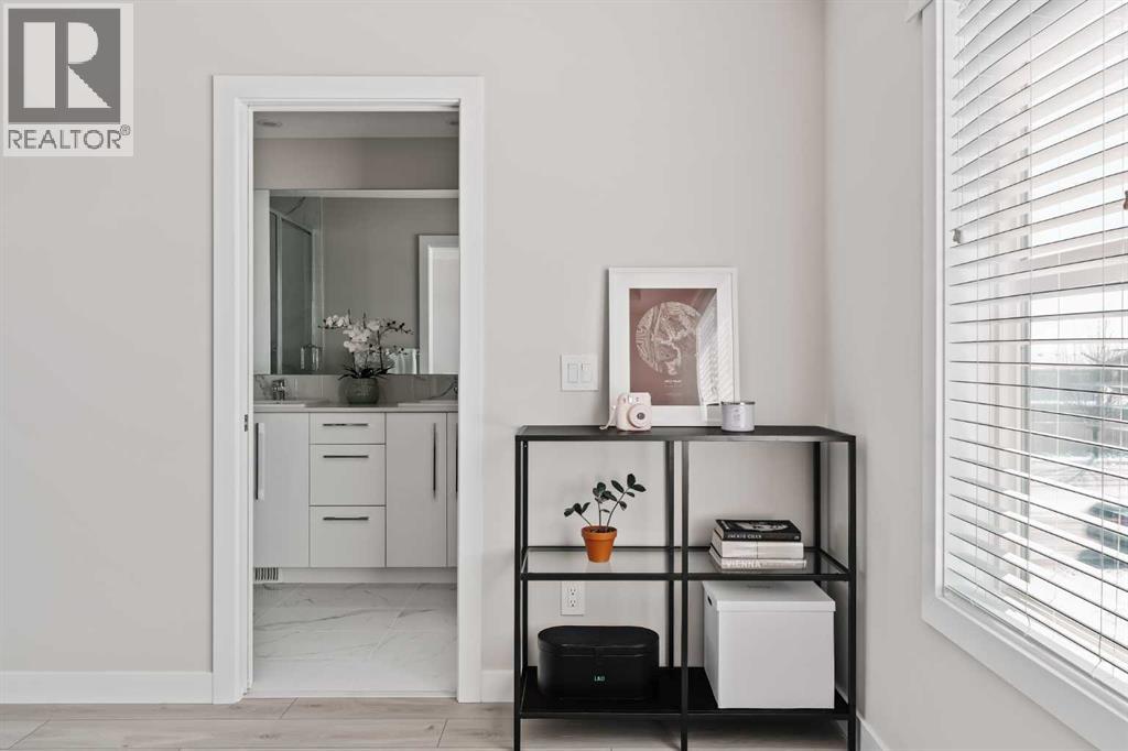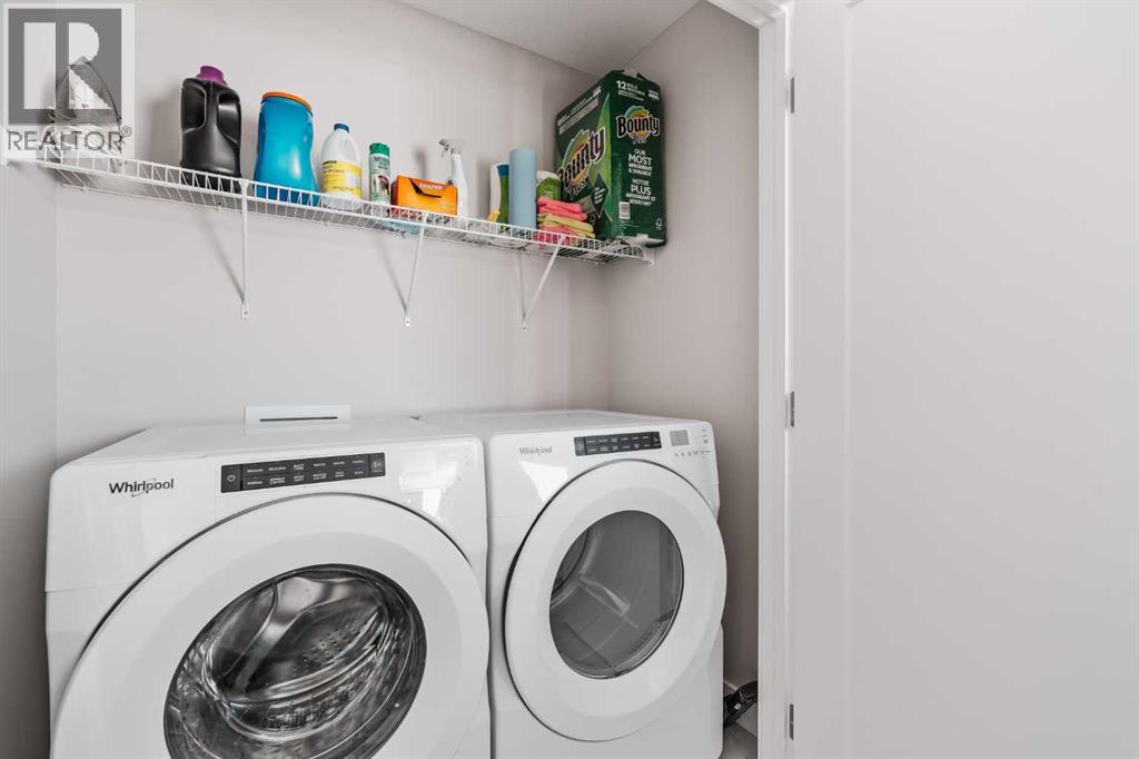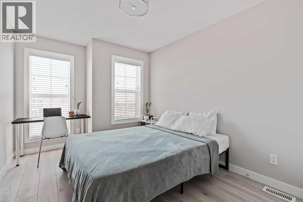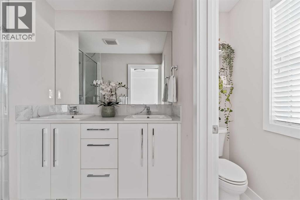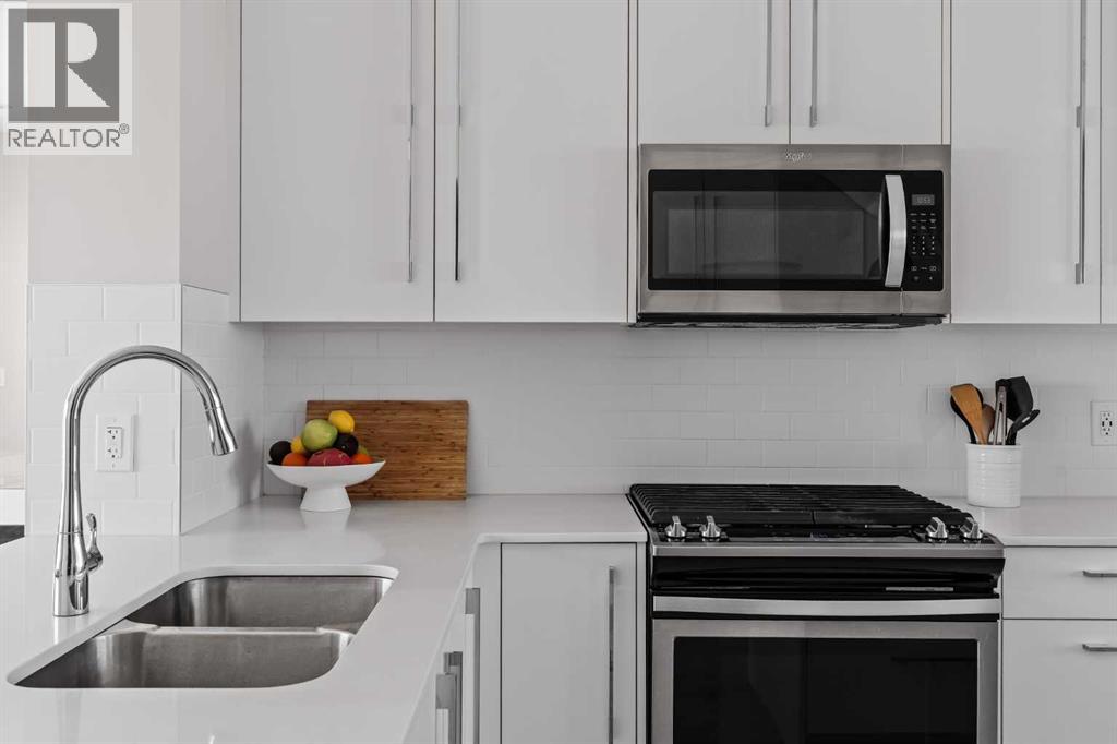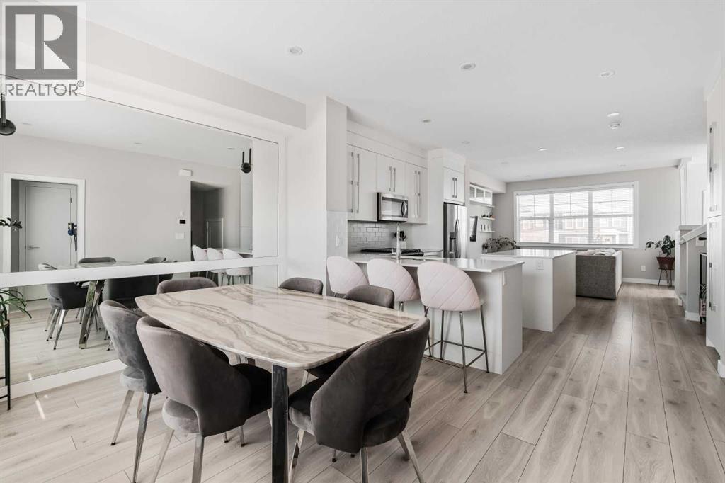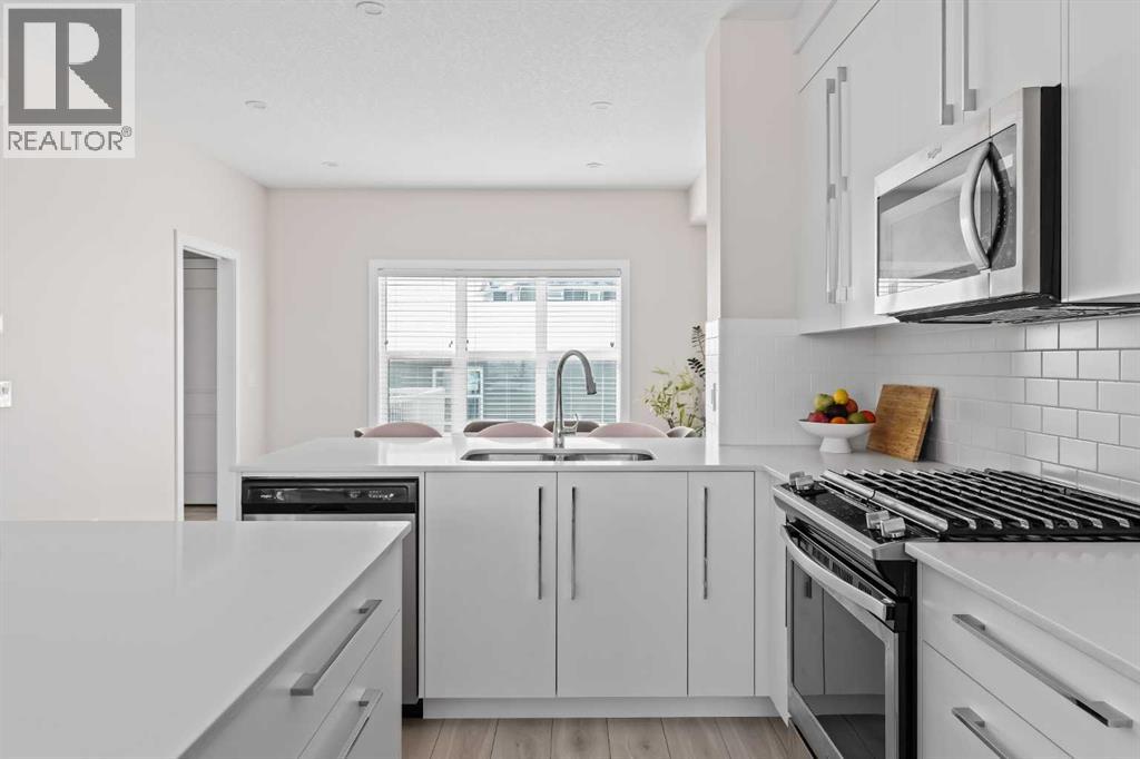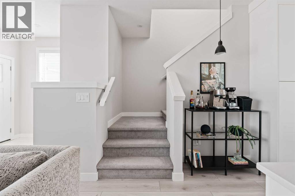 BETTER THAN NEW! This immaculately maintained NO CONDO FEE, END-UNIT townhouse is completely move-in ready, featuring thoughtful upgrades and an unbeatable location just minutes from countless amenities. Ideally situated in Dawson’s Landing, and within walking distance to the future K–9 school, this 3-bedroom, 2.5-bathroom home offers over 1,500 sq. ft. of developed living space, a DOUBLE GARAGE and the perfect blend of style and functionality. Whether you’re a young couple, growing family, or professional, this home delivers comfort, convenience, and long-term value. Positioned on a fully landscaped corner lot with only one neighbouring property and a desirable south-facing backyard, this end unit benefits from additional yard space, natural light, and privacy. The main level features a bright open-concept layout with 9-foot ceilings and durable laminate flooring throughout. Expansive windows on three sides flood the home with natural light, creating a warm and inviting atmosphere from morning to evening. The timeless kitchen is both stylish and functional, showcasing full-height white cabinetry, quartz countertops, classic subway tile backsplash, and a full suite of stainless steel appliances, including a gas range, microwave hood fan, and French-door refrigerator. A large built-in pantry provides excellent storage, while the island and peninsula eating bar offer seating for three, making it perfect for everyday living and entertaining. The layout flows seamlessly into the rear dining area, which comfortably fits a full-sized dining table, and the front living room, complete with a custom-built-in media console. The main level is finished with a welcoming front foyer, a convenient 2-piece powder room, and a functional rear mudroom with built-in seating and storage. Upstairs, laminate flooring continues throughout. The spacious primary suite (12’10” x 14’2”) overlooks the backyard and features a beautiful ensuite with a tiled shower, dual sinks, and a walk-in close t with custom organizers. Two additional well-sized bedrooms, a 4-piece bathroom, and a generous upper-level laundry area complete the second floor. The south-facing backyard offers excellent usable green space, ideal for kids, pets, gardening, or entertaining. A composite deck provides the perfect setting for summer BBQs, while the double detached garage ensures secure parking and additional storage year-round. As an end unit, the property also benefits from extra outdoor space and additional parking flexibility. Pride of ownership is evident throughout. This home is truly move-in ready and includes valuable upgrades such as central air conditioning and custom window coverings, saving you money! Located in one of Chestermere’s most desirable and growing communities, Dawson’s Landing offers the perfect balance of quiet residential living with convenient access to parks, schools, and everyday amenities. (id:63190)