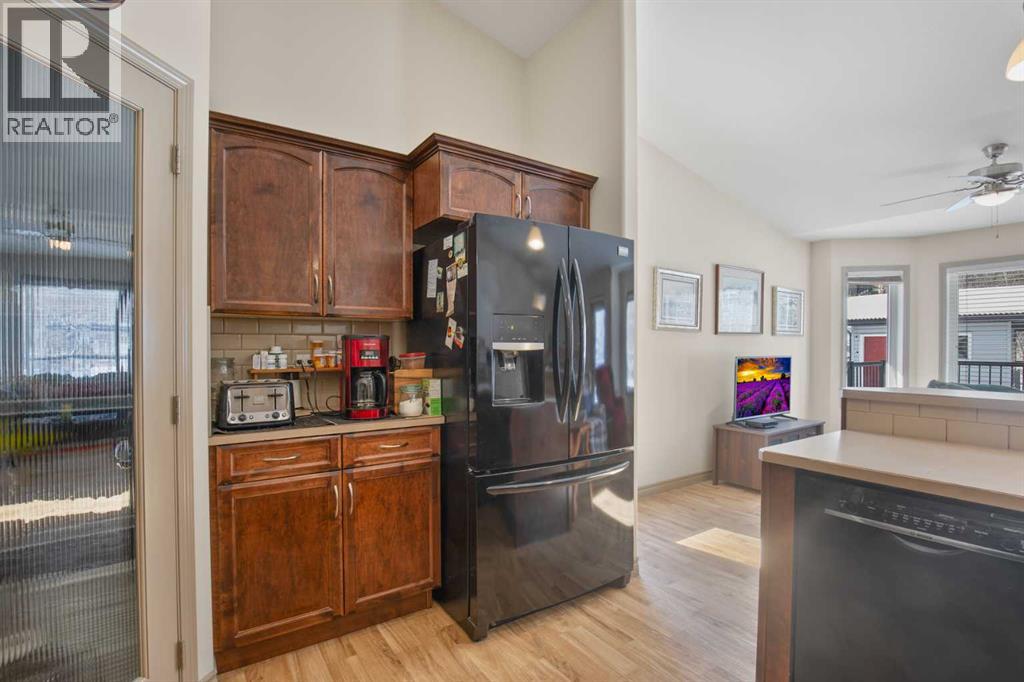 Welcome to this lovely finished bungalow style, half duplex, ideally located just steps away from Dodds Lake in Innisfail. Backing onto a peaceful green space and surrounded by walking trails, this home offers the perfect blend of comfort, functionality and lifestyle. The Main floor features a bright and inviting layout with two spacious bedrooms and two full bathrooms, including a well appointed primary suite. The open concept kitchen is designed for both everyday living and entertaining, complete with a large island, corner pantry, and seamless flow into the dining and living areas. A gas fireplace sets the mood in the dining area and adds a sense of comfort to the space. Downstairs, the fully developed basement offers additional living space with two more large bedrooms a large full bathroom and a huge family/ rec room - perfect for guests or a growing family. Additional highlights include an attached double garage, a fenced yard with a shed(10x12) and pergola and a prime location close to the library. This is an excellent opportunity to enjoy low maintenance living without compromising on space or location. (id:63190)