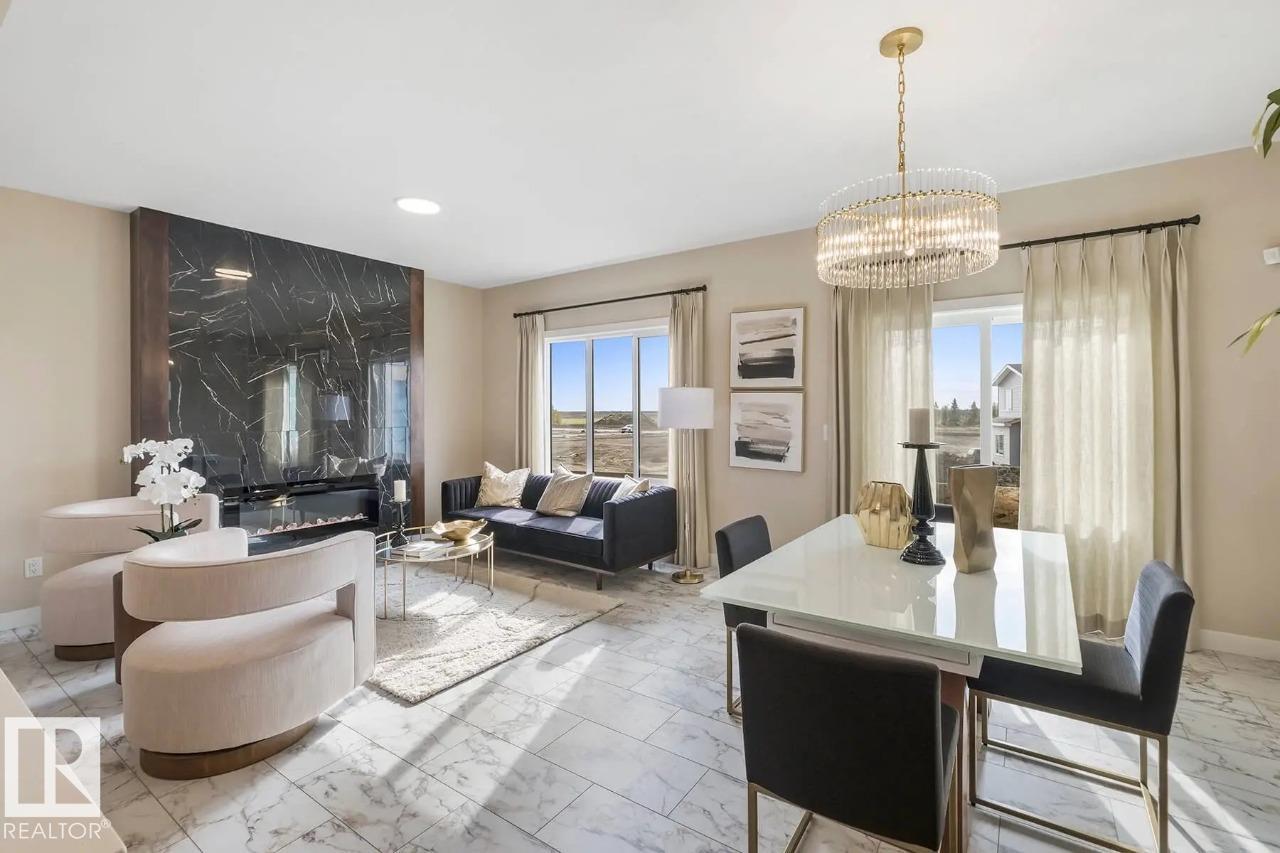 Tentatively scheduled for completion at the end of May, 22725 89A Ave NW is a single-family home with attached garage built by San Rufo Homes. This thoughtfully designed home features forced air heating and quality upgrades throughout. The main living area includes a great room fireplace, creating a warm and inviting space for everyday living. The kitchen is appointed with 42” upper cabinets for added storage and functionality. A side entry and 9’ foundation provide excellent flexibility and future development potential. The home also includes a 200 AMP electrical service, supporting modern lifestyle needs. Located in a growing northwest community, this property offers a well-balanced blend of comfort, design, and long-term value. Photos are representative. (id:63190)