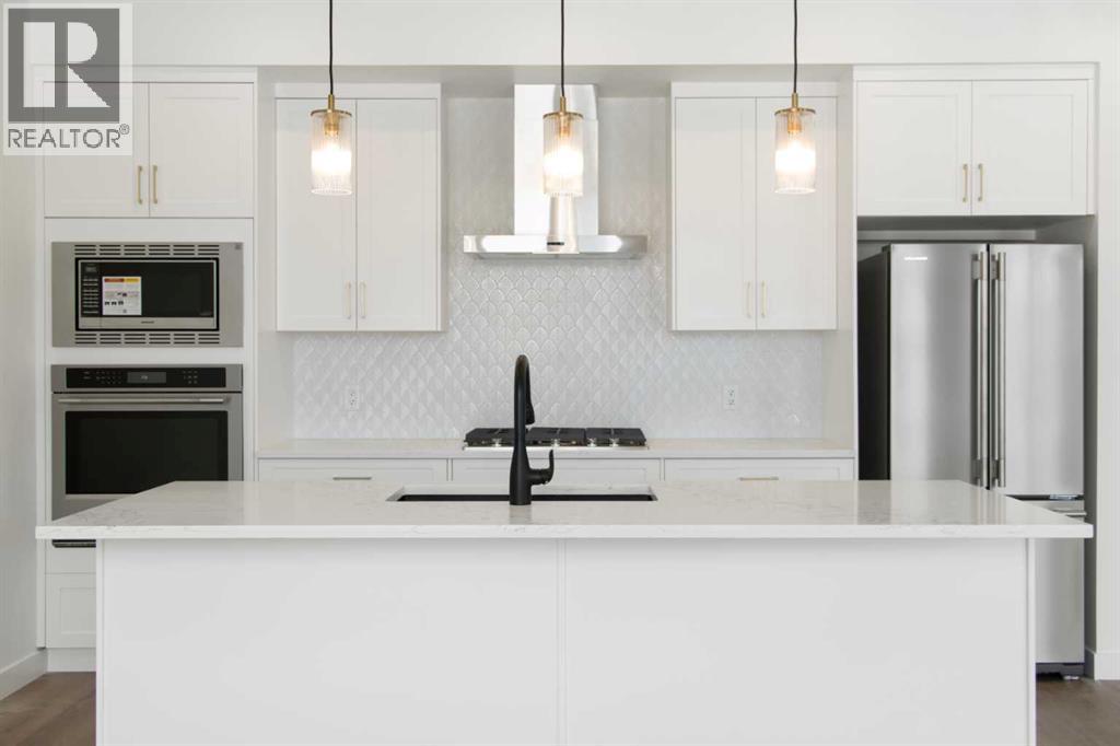 *First Time Buyers save 5% off listing price, thats $46,200 in savings!* Brand new and situated in the prestigious community of Aspen, this fully finished single-family home offers over 2350 sq ft of developed living space! With 4 bedrooms and 3.5 bathrooms. You won't find a better-priced detached home in the area! The open-concept main floor features a chef-inspired kitchen equipped with a gas cooktop, built-in wall oven and microwave, and elegant gold pendant lighting over a large quartz island. Large windows flood the living and dining areas with natural light, highlighting the durable LVP flooring that extends throughout the entire home, including the upper floor and the fully finished basement. Upstairs l is thoughtfully designed with three bedrooms PLUS a dedicated home office/tech room. The primary suite provides a spacious retreat, featuring an ensuite with a luxury stand-alone tub and a full glass shower with dual vanities and full tile! Convenience is built-in with a large upper-floor laundry room finished with quartz countertops. The fully finished lower level adds a versatile fourth bedroom, a full bath, and a secondary media room or lounge! Tons of space for the whole family. Practical additions include an AC rough-in, a double attached insulated garage, and a full new home warranty. This property represents exceptional value, featuring over $20,000 in premium builder upgrades over and above the high standard specification. (id:63190)