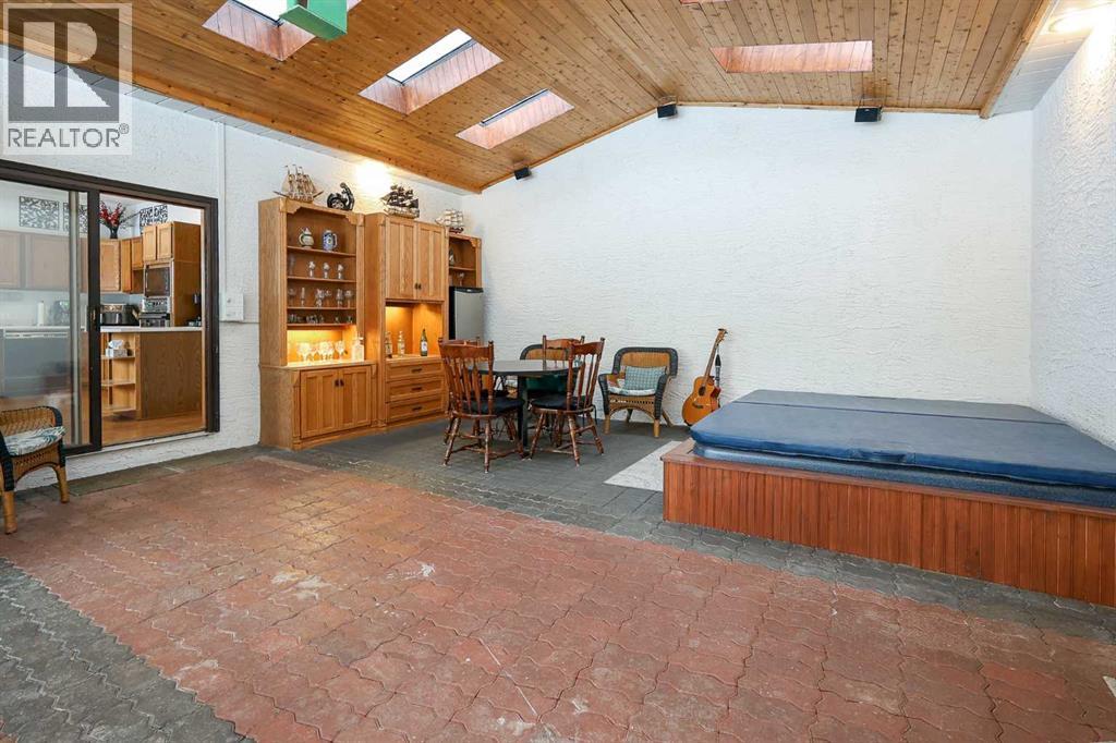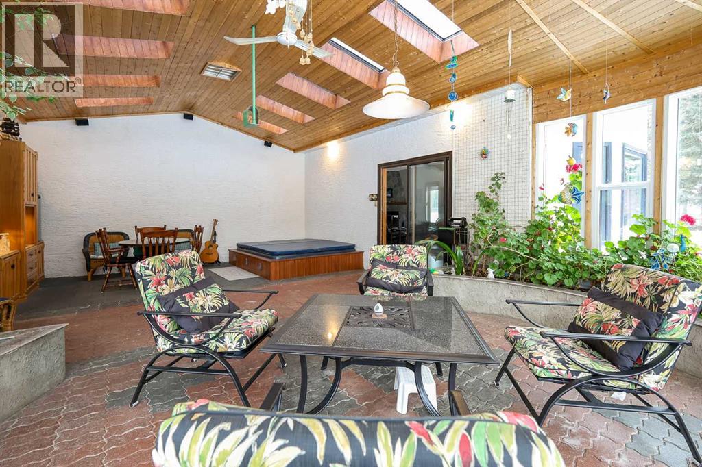 FULLY DEVELOPED, CUSTOM BUILT ESTATE HOME ON 1.08 ACRES ~ LOCATED IN MCKENZIE SUBDIVISION JUST MINUTES SOUTH OF RED DEER ON PAVEMENT ~ 48' X 24' & 22' X 28' DETACHED GARAGE & WORKSHOP ~ FULLY FENCED W/ELECTRIC GATED ENTRY ~ Pride of ownership is evident in this original owner home loaded with character ~ Recent updates include; new plumbing, new windows and new shingles ~ Welcoming entry leads to a spacious foyer with coffered ceilings, parquet flooring, a secret room, and large windows that fill the space with natural light ~ Archway leads to the oversized living room featuring a cozy wood burning fireplace with a raised hearth, mantle and stone surround, large windows overlooking the treed property ~ Sliding patio doors lead to the solarium with heated brick floors, hot tub, cedar lined ceiling with skylights, a bar with built in cabinets, hot tub, raised flower beds, and a wall of west facing windows that overlook the treed backyard and pond ~ The kitchen offers a functional layout, featuring tons of warm stained cabinets, ample counter space, open display shelving, window above the sink and space for a casual dining area ~ Just off the kitchen is a generous size mud room with ample closet space, a separate entry to the yard and garage, and huge walk in pantry with built in shelving ~ The formal dining room with French doors, another cozy wood burning fireplace with a raised hearth, mantle and floor to ceiling stone, plus tons of space to host large gatherings with ease ~ Home office is conveniently located just off the foyer and next to a 2 piece bathroom ~ Double stairs lead to the upper level bonus room that's flooded with natural light from an abundance of large windows ~ The private primary bedroom can easily accommodate a king size bedroom suite with space for a sitting area, and offers a walk in closet with built in organizers and an ensuite with an oversized vanity, walk in shower and a jetted corner tub ~ Second level laundry room~ 2 generous size guest bedrooms are located next to massive den with a west facing bay window overlooking the backyard ~ One bedroom has been converted to a kitchen and features white cabinets, and space for an eating area ~ Outside this fully fenced property is surrounded by mature trees offering shade and privacy and features a pond, greenhouse with a windmill, garden, gazebo, bar with power and custom seating, fire pit and two large garages with built in shelving and work benches ~ Located just minutes south of Red Deer, on pavement ~ Unbeatable convenience with easy access to Highways 2 and 2A, and walking distance to Gasoline Alley, where you'll find a wide range of amenities, including the popular Gasoline Alley Farmers' Market, Costco, Cineplex and transit to Red Deer, making it an ideal location for families and commuters alike. (id:63190)