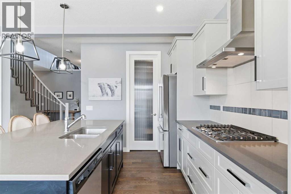 SHOWSTOPPER HOME tucked away in a quiet cul-de-sac with MOUNTAIN VIEWS and huge PIE SHAPED YARD!!! Welcome to 12 Ranchers Bay, a beautiful one-owner home with unique features that will be sure to please. This family friendly location will welcome you as soon as you pull into the driveway. The charming covered front porch provides a great place to greet family and guests. Inside the front entrance you will notice the unique floorplan right away. High ceilings, built in features, french doors to a bright and sunny office, and stunning hardwood floors that lead through to the heart of the home. Notice the upgraded kitchen with extended cabinetry, built in appliances, gas cooktop, quartz countertops, loads of storage, a huge dining space, and the perfect sit up island. This kitchen will be sure to please the chef at heart! A large walkthrough pantry adds convenience for busy families. Settle into the cozy family room and warm up on winter nights by the gas fireplace. Loads of natural light fill the home with the large south facing windows that give glances of the Rocky Mountains. The curved staircase is a true masterpiece and leads to the upper level. The large bonus room is the perfect place to host family movie/games night . You will be impressed with the primary suite. It is graced with size, natural light, views, a large walk in closet and a gorgeous spa like ensuite. Imagine winding down after a busy day in a tub full of bubbles , admiring the features of this beautiful bathroom. Through the walk in closet to the laundry room - a genius floorplan that you will absolutley love - and making this primary retreat space complete. 2 more good sized bedrooms and a 4 piece bathroom complete this upper level. The lower level is a blank slate for finishing to your desire. The south facing back yard is gardeners delight. With multi level decks, underground sprinklers, a few trees, and plenty of space to run around with the kids and pets, you will spend many summer nights in this back yard. Backing onto walking paths you can head out for meandering walks along the extensive pathway system that Okotoks has to offer. Leading to parks, playgrounds, ponds, wetlands, sports fields, the dog park , and so many other fun filled outdoor adventures. This air-conditioned home isn't just a place to cook dinners and sleep - its a true way of life - a place to make memories, and a spot to create the family life you have been longing for. The convenient north location makes it a breeze for commuters. Make sure to book this as a stop on your home shopping tour. Its truly refreshing to see a home with a unique plan and attention to detail. (id:63190)