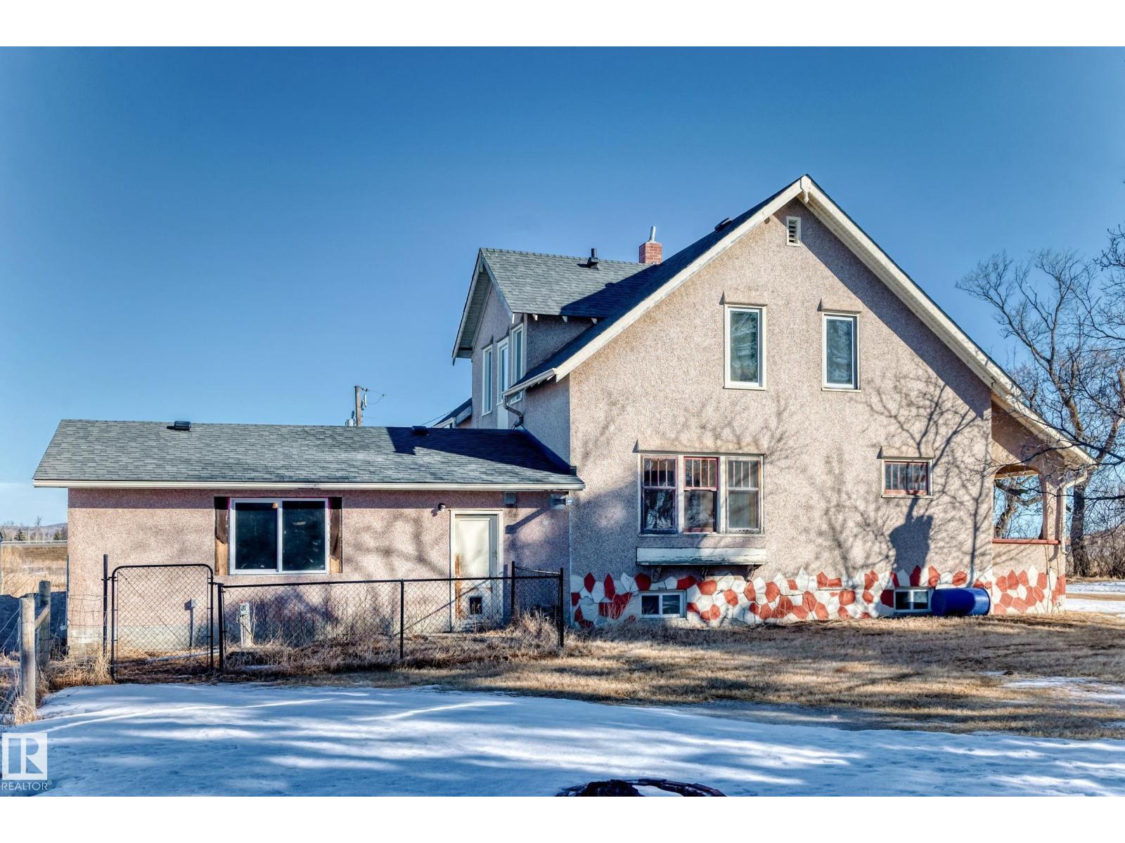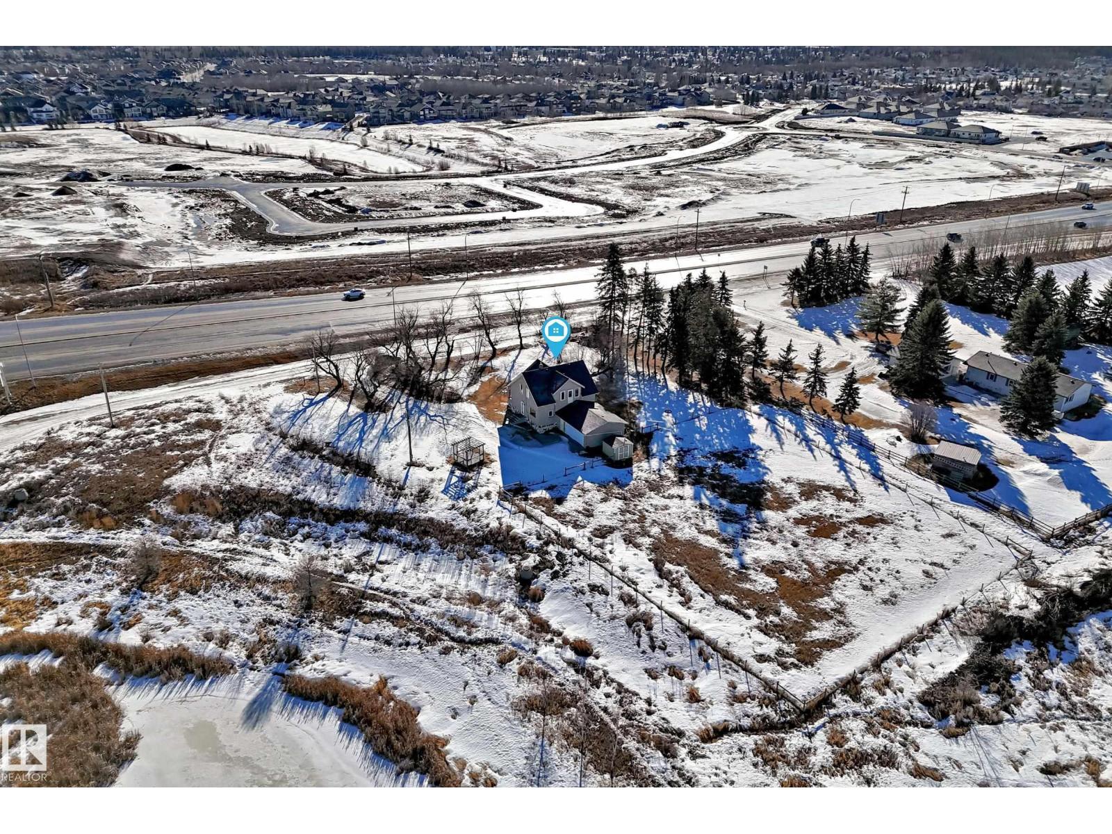 1 Acre Extremely High Visibility in Spruce Grove just south of Highway 16 Yellowhead Overpass & Jennifer Heil Way. Amazing opportunity very large frontage 176 ft parrallel to Jennifer Heil Way w the best exposure and great redeveloment potential for perhaps commercial site next to Highway 16/Yellowhead. Likewise at present this property could be ideal for home based business using home + garage as office etc. Situated on a 1-acre lot, this property offers flexibility also for buyers looking to move in and enjoy the classic farmhouse appeal with the option a home based business or redevelopment. With its location parallel to Jennifer Heil Way & many vacant acres of land adjacent west there is tremendous potential for rezoning to mixed-use or commercial or up zoning to R1. Ideal for entrepreneurs, investors, developers or those with vision. Possibilities could include a small office, bakery, or boutique-style business. This 1 Acre lot size gives investment appeal & redevelopment potential. Many options!!! (id:63190)