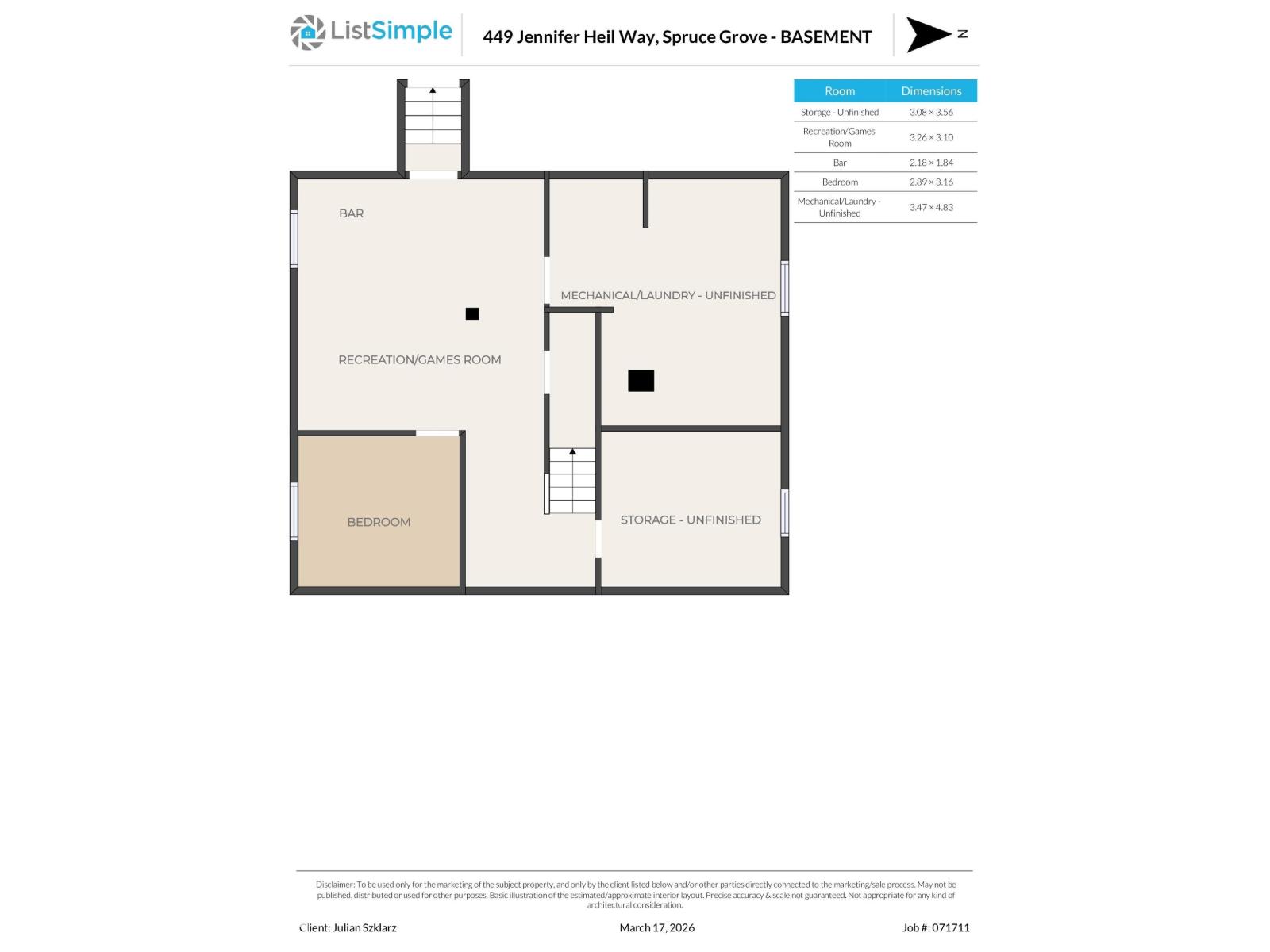 | Recreation room | Basement | 3.26 x 3.1 | — |