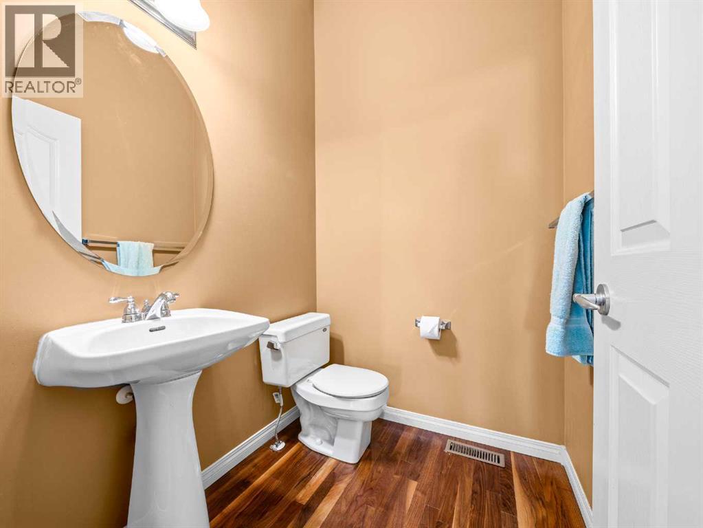 Come home to desirable Valley Ridge! A large bungalow on a corner lot without sidewalks to shovel located in a quiet cul-de-sac overlooking the ravine! The front driveway is upgraded aggregate concrete, the stunning stucco exterior home sits on a landscaped yard with trees, and perennial shrubs and flowers. Excessive parking includes a front double wide driveway, attached double garage and extra gated parking out back that can be used for a small boat or RV. The welcoming open floor plan showcases 10' ceilings, built in speakers, skylights and gorgeous hardwood flooring! The kitchen has plenty of storage with step in pantry, cooktop, separate wall oven and the island overlooks the spacious dining room. Sliding doors open to the covered deck and beautiful yard with a gazebo! The living room showcases a tray ceiling, cozy gas fireplace and custom hardwood build-ins. Relax in the primary wing with an enormous 5 pc ensuite with jet tub and stand alone shower. There is a flex room for a den, office, formal dining or use as you wish! Enjoy the convenience of main floor laundry! Head down to the fully finished basement boasting 9' ceilings! Enjoy a grand recreation room, two sizable bedrooms, another den and a full bathroom. There is extra dedicated storage room and more space in the utility room. Valley Ridge is an upscale community with paths, river access, ravine views and is an easy escape to the mountains! And if you like golf, Valley Ridge Gold Course meanders through the community! Book your private showing today! (id:63190)