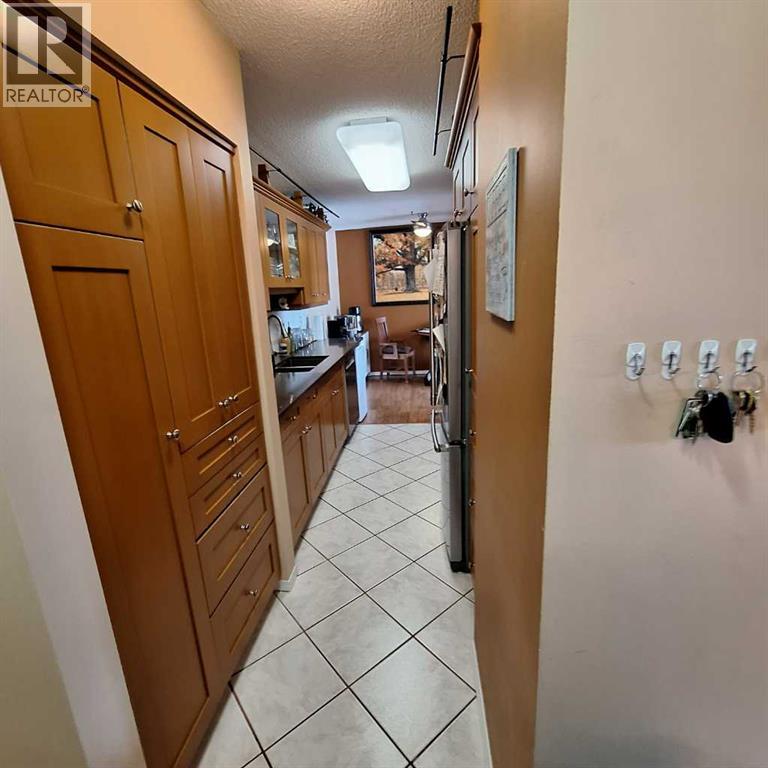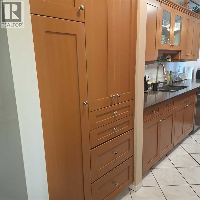 Extensively upgraded, this two bedroom, -two bath unit is waiting for your experience. Upgrades include the following: beautiful quartz countertops in kitchen and all vanities , new stainless steel recessed kitchen sink and countertop sinks in bathrooms, new plug ins in all the bedrooms and Living Room, under cabinet lighting and new doors on kitchen cabinets and repainted, soft close hinges on all doors, organized storage in kitchen and laundry room, new blinds throughout, ceiling fans and lighting. Living Room blinds are operated by a motor DO NOT Attempt to pull the blinds - push the button on the end of the curtain rod. Unit boasts underground parkade with 2 assigned stalls, external storage unit marked "A" (no key for unit itself in lok box just for storage area). Bonus features include gas fireplace, new wall Air Conditioner, 2 balconys - one looking East into parking lot and trees and the other has South exposure. Gas line on balcony. Tile in kitchen, laundry and bathrooms with well maintained laminate throughout rest of home. Massive wall of cabinets in Master bedroom together with walk-in closet so storage is not a factor in this immaculate and well cared for home. Building upgrades include entire interior painted last fall (2025), carpet in stairwell replaced and security coverage now has new system to include 15 cameras stationed throughout hallways, entrances, laundries etc. Reserve fund has allocations for windows and balconies in new future. Just move in and enjoy. (id:63190)