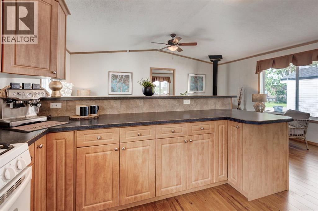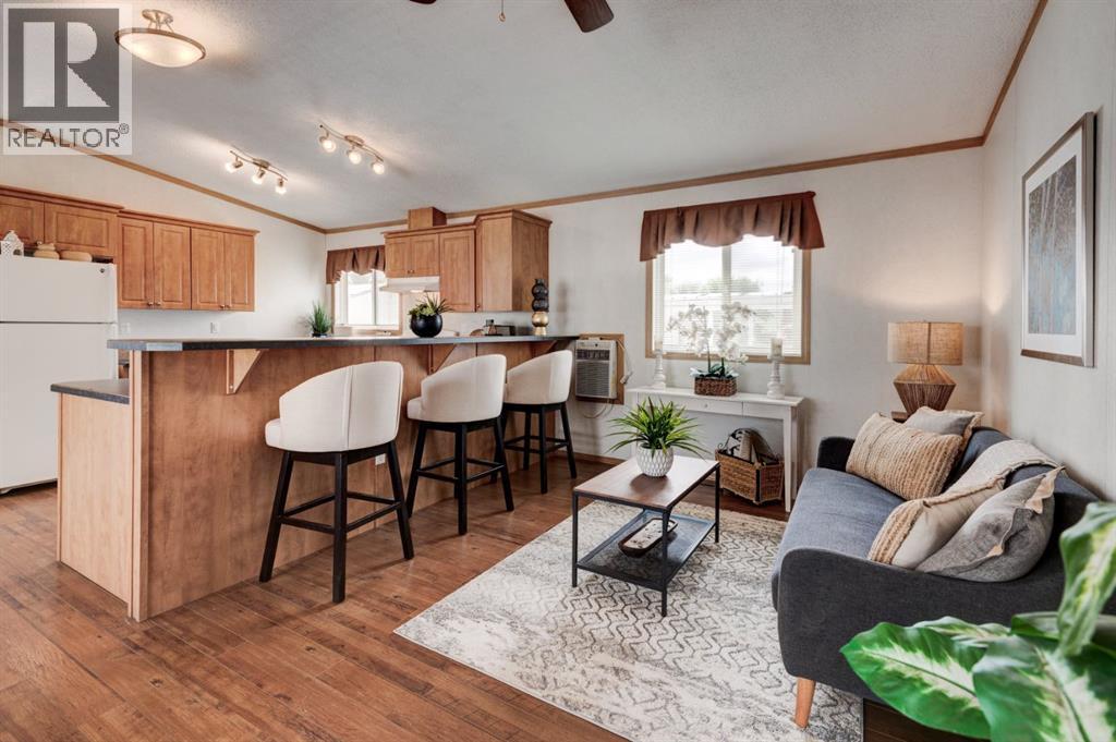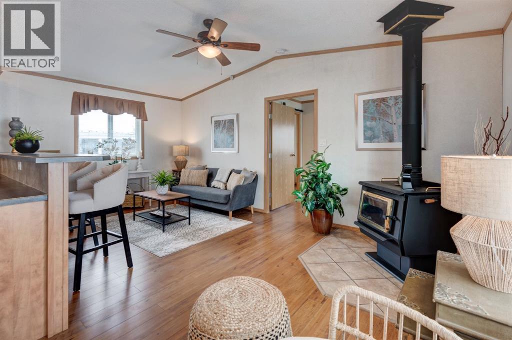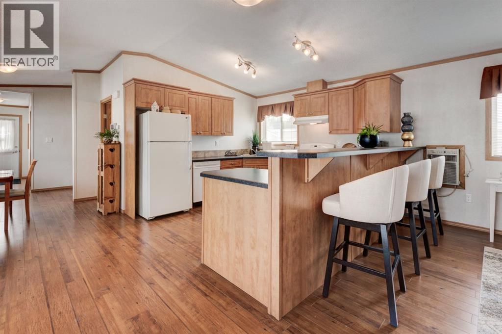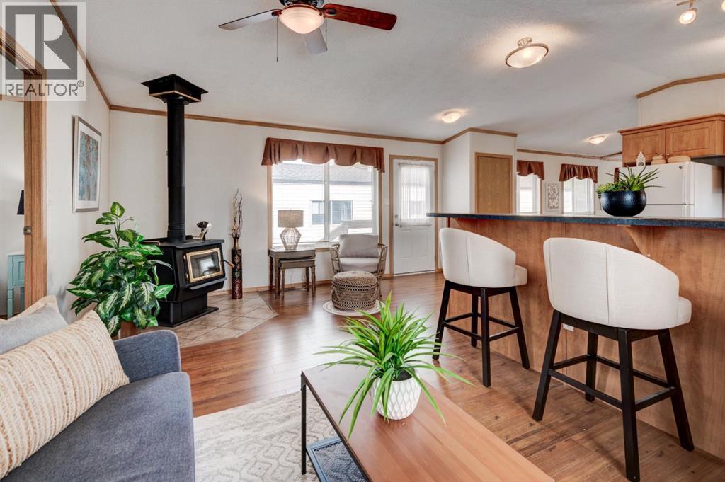 Enter into this immaculate and charming Custom Built 2013 manufactured home, 1120 sf home located in the plus-18 section of Mountview. Prepare to be impressed with everything this home has to offer. It is spacious with vaulted ceilings, bright and airy with the many windows in the living area, and the entire home, and open concept living. Click on the interactive iGuide for a virtual tour and "virtual walk through". This large kitchen has beautiful wood cabinets, loads of counter space to explore your culinary side, prep for your cooking and baking adventures plus plenty of room to move around. Newly installed dishwasher, newer gas stove, newer fridge. There is a large counter peninsula island that provides even more space for eating or entertaining. Adjacent to the kitchen is a spacious dining area that is drenched in light. The living room has ample space for your furniture and the open den area provides a wood burning woodstove (WETT inspection done) to keep you warm and cozy. This is a 2013 model, 20x56, with two bedrooms, two bathrooms, and has everything you could need. The primary bedroom at the front of the home has a huge ensuite with soaker tub, separate shower, and good size vanity. This bedroom can easily accommodate a king bed. The second bedroom is at the opposite end, along with a 4-piece bath, large separate laundry room with a new on-demand hot water system and back entry hall. This home has a new composite vinyl fence, new skirting, new front deck, new eavestrough and downspouts, new sewer pipes, and a newly installed electrical hookup and meter, with a City of Calgary permit. Don’t wait to view this property - you won’t be disappointed! Lease approval is required. Pets are allowed with approval. Lease rate of $1100 per month includes water, sewer, garbage pick up and snow removal. Sunpark Mountview is across from Elliston Park, minutes to East Hills Shopping Centre, Stoney Trail, International Avenue, and all levels of transit , shopping, restaurants and amenities. (id:63190)