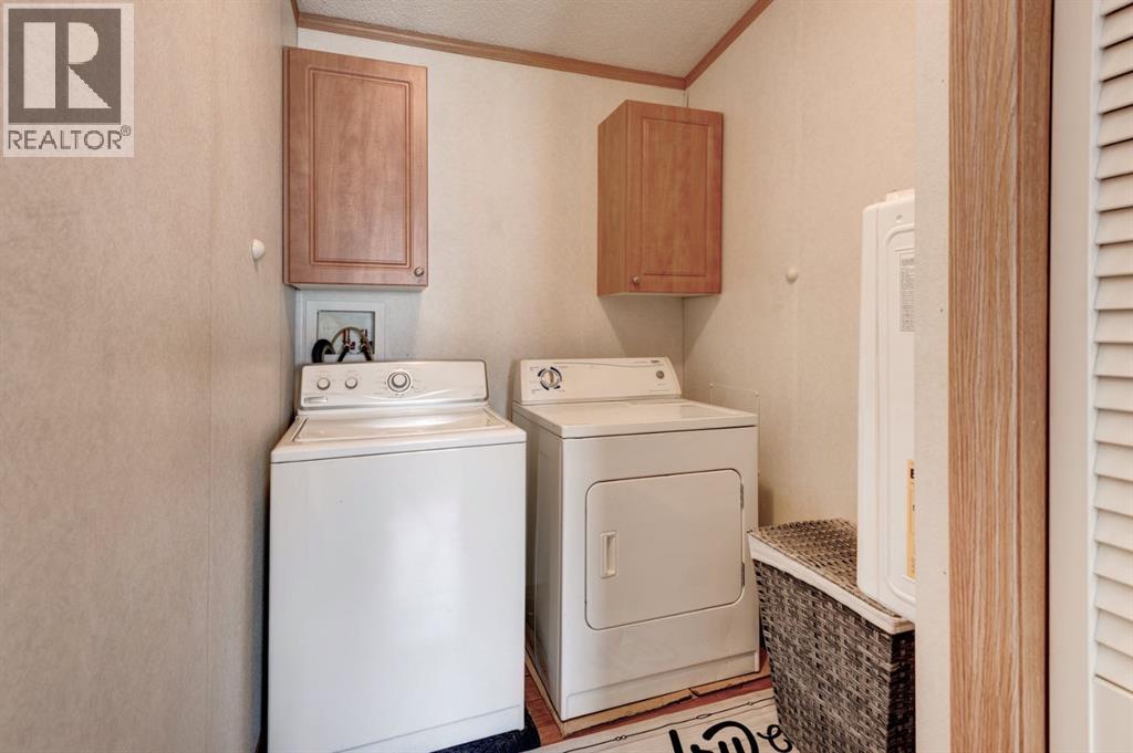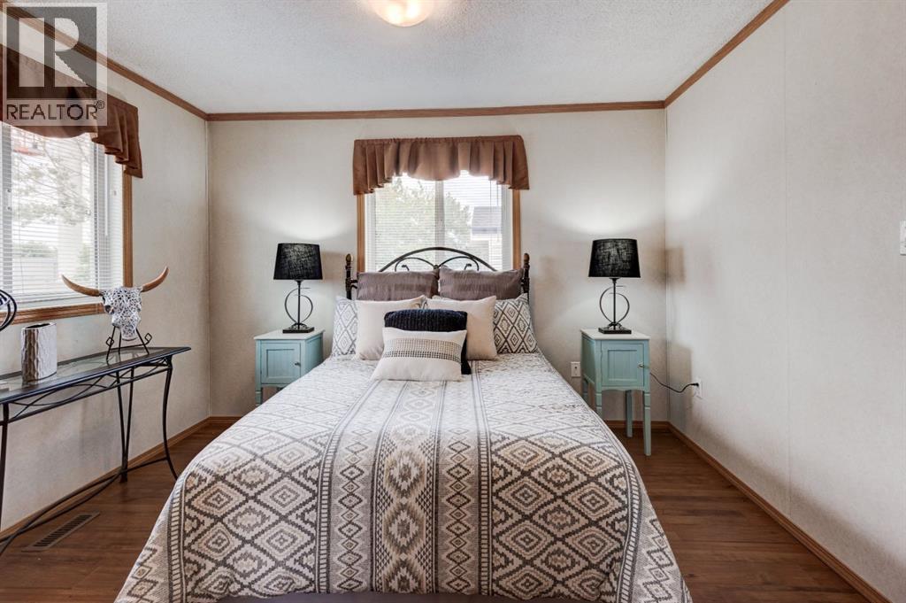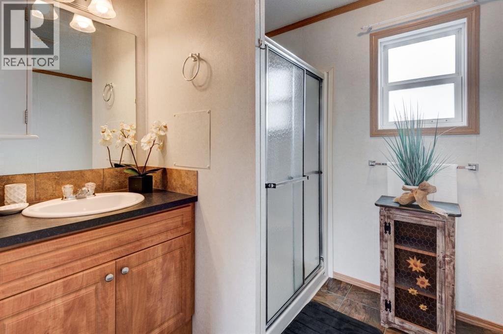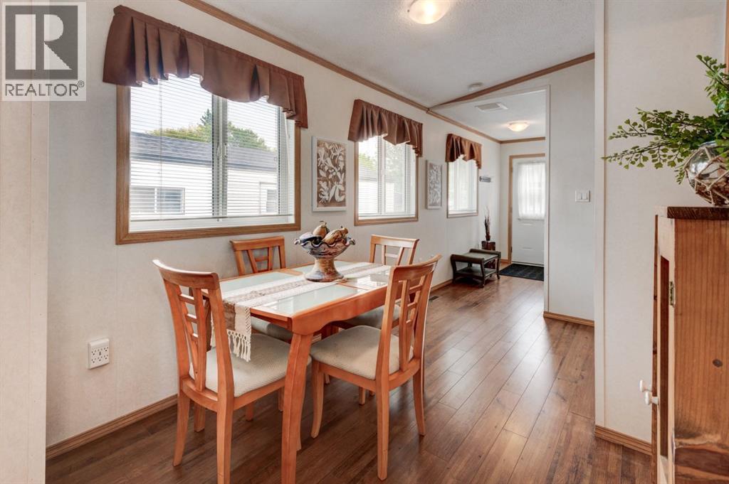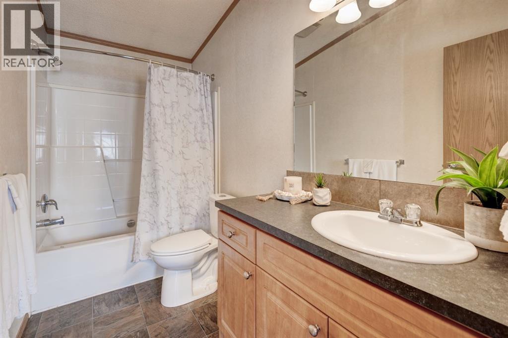 Enter into this immaculate and charming Custom Built 2013 manufactured home, 1120 sf home located in the plus-18 section of Mountview. Prepare to be impressed with everything this home has to offer. It is spacious with vaulted ceilings, bright and airy with the many windows in the living area, and the entire home, and open concept living. Click on the interactive iGuide for a virtual tour and "virtual walk through". This large kitchen has beautiful wood cabinets, loads of counter space to explore your culinary side, prep for your cooking and baking adventures plus plenty of room to move around. Newly installed dishwasher, newer gas stove, newer fridge. There is a large counter peninsula island that provides even more space for eating or entertaining. Adjacent to the kitchen is a spacious dining area that is drenched in light. The living room has ample space for your furniture and the open den area provides a wood burning woodstove (WETT inspection done) to keep you warm and cozy. This is a 2013 model, 20x56, with two bedrooms, two bathrooms, and has everything you could need. The primary bedroom at the front of the home has a huge ensuite with soaker tub, separate shower, and good size vanity. This bedroom can easily accommodate a king bed. The second bedroom is at the opposite end, along with a 4-piece bath, large separate laundry room with a new on-demand hot water system and back entry hall. This home has a new composite vinyl fence, new skirting, new front deck, new eavestrough and downspouts, new sewer pipes, and a newly installed electrical hookup and meter, with a City of Calgary permit. Don’t wait to view this property - you won’t be disappointed! Lease approval is required. Pets are allowed with approval. Lease rate of $1100 per month includes water, sewer, garbage pick up and snow removal. Sunpark Mountview is across from Elliston Park, minutes to East Hills Shopping Centre, Stoney Trail, International Avenue, and all levels of transit , shopping, restaurants and amenities. (id:63190)