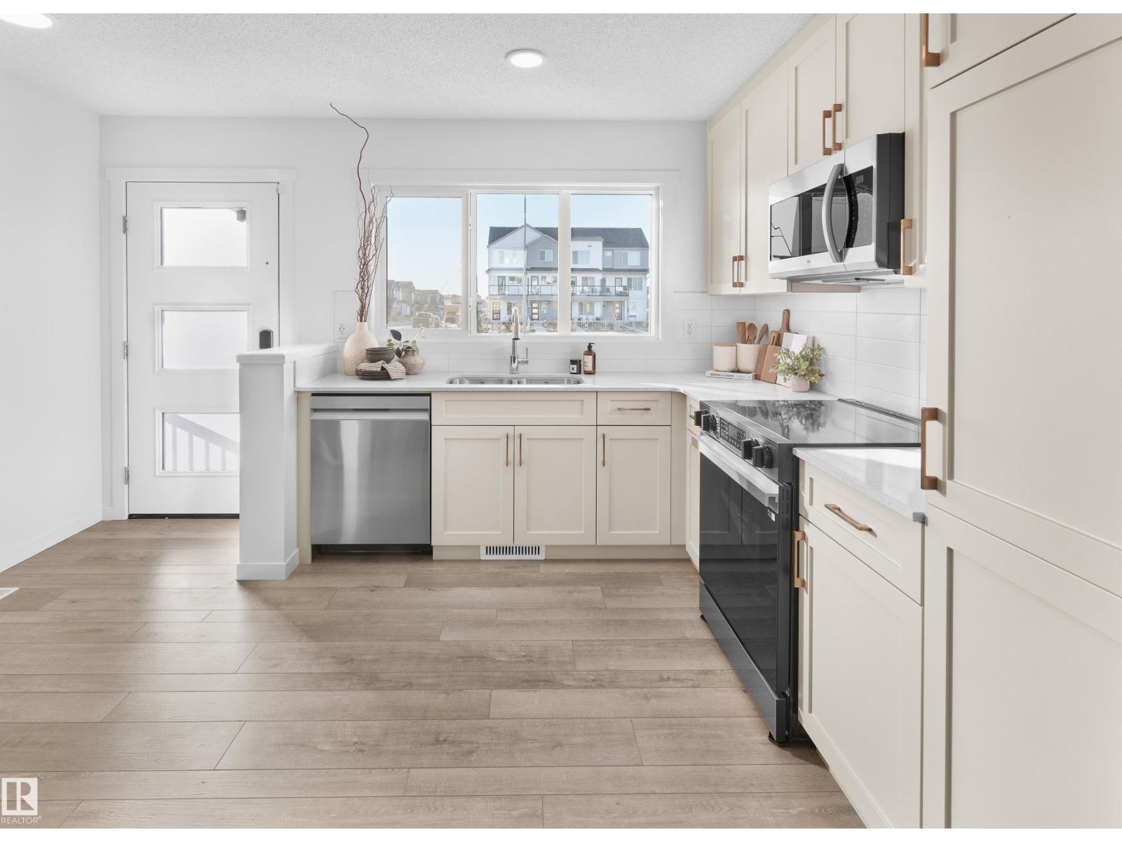 *** UNDER CONSTRUCTION *** Welcome home to this brand new row house unit the “Wren” Built by StreetSide Developments and is located in one of West Edmonton's newest premier communities of Rivers Edge. This home comes with front yard landscaping and a single over sized rear detached parking pad. This opportunity is perfect for a young family or young couple. Your main floor is complete with Vinyl Plank flooring throughout the great room and the kitchen. Highlighted in your new kitchen are upgraded cabinet and a tile back splash. The upper level has 2 bedrooms and 1 full bathroom. This home also comes with a unfinished basement perfect for a future development. ***Home is under construction and the photos are of the show home colors and finishing's may vary, will be complete by August *** (id:63190)
