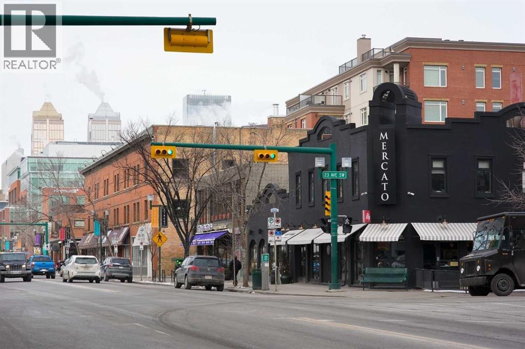 Discover the perfect blend of tranquility and city living in this TOP FLOOR, END UNIT, QUIET, CONCRETE condo offering unobstructed skyline VIEWS! Just steps from the vibrant cafés, boutiques, and restaurants of 4th Street, 17th Avenue, and the scenic Elbow River Pathways, this home places the best of Calgary right at your doorstep while giving you a peaceful retreat above it all.Inside, you’re welcomed by a spacious 1,434 sq ft OPEN CONCEPT layout bathed in natural light. Beautiful SITE FINISHED HARDWOOD, FLAT, painted ceilings, and expansive windows create a warm, sophisticated atmosphere throughout the main living areas. The generous Living, Dining, and Kitchen spaces are perfectly positioned to take in the sweeping cityscape—an inspiring backdrop day and night. The well-appointed Kitchen offers abundant Granite counter space, excellent storage, and a pull-out pantry, making it as functional as it is stylish. A charming Den—easily converted back into a bedroom—sits conveniently near a full bath, offering flexibility for guests, work, or hobbies. The Primary Suite is a true standout, comfortably fitting a King Bed and featuring an impressive custom Dressing Room created from a former bedroom. Paired with a private En-Suite and In-suite laundry, it delivers everyday luxury and convenience. Throughout the home, Hunter Douglas window coverings, including bedroom blackouts, add comfort and quality. Upgrades such as TRIPLE PANE Windows and a new Patio Door enhance energy efficiency and quiet enjoyment. Step outside to your LARGE PRIVATE BALCONY, where there’s ample room for garden pots, lounging, and soaking in those stunning views.This well-managed building offers TITLED underground parking (no post-tension), a Separate Storage unit, bike storage,2 elevators, and access to a charming treed courtyard. Guests will appreciate the plentiful 2-hour free street parking. Pets are welcome with board approval. Move-in ready and offering the best of Inner-City living in a pea ceful, elevated setting—this is the Mount Royal lifestyle you’ve been waiting for. (id:63190)