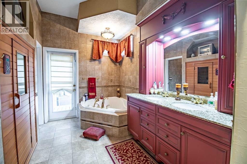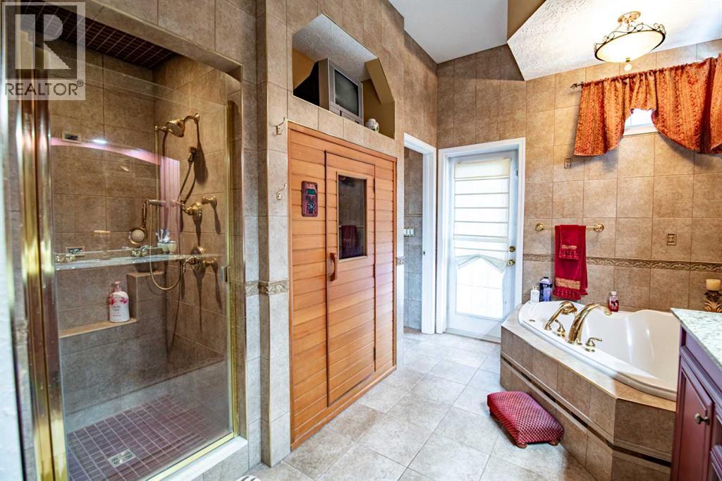 Welcome to an extraordinary lakeside-inspired estate where luxury, scale, and lifestyle collide in the most unforgettable way—without the premium of waterfront prices. This one-of-a-kind residence offers an astounding 5,466.45 sq ft of fully developed living space, designed for those who expect nothing less than exceptional. From the moment you arrive through one of the two gated entrances, you’re greeted by a sense of grandeur that only a home of this caliber can deliver. A stunning grand foyer, soaring ceilings, and a dazzling chandelier set the tone for what lies ahead—refined elegance paired with bold architectural presence. Rich hardwood floors, striking stonework, and five gas fireplaces create warmth and sophistication throughout.The main level is nothing short of spectacular, featuring three distinct sitting rooms, each anchored by its own gas fireplace—perfect for entertaining or unwinding in style. One of these spaces is truly breathtaking, showcasing floor-to-ceiling windows that flood the home with natural light and bring the outdoors in. At the heart of the home, the primary retreat is fit for royalty—a lavish sanctuary complete with a spa-inspired ensuite featuring a deep soaker tub, and your very own built-in dry sauna for the ultimate in relaxation. With 6 spacious bedrooms and 4.5 bathrooms, this home effortlessly accommodates large families. Storage is abundant, and every inch of this home has been thoughtfully designed for both comfort and function. Step outside and experience your own private oasis—three expansive decks, a hot tub, and a beautifully treed yard offering unmatched privacy, all set on a desirable corner lot. The oversized triple car garage ensures there’s room for vehicles, toys, and more. And then… there’s the basement......An entertainer’s dream that rivals a luxury resort—this fully developed lower level is pure indulgence. Featuring a home theatre, pool table area, foosball, dart board, and a dedicated poker space, it’s your own personal Vegas-style escape. The custom bar, complete with intricate woodwork, two fridges, and a dishwasher, elevates every gathering. With three additional bedrooms and two 5-piece bathrooms, guests and family alike will never want to leave. This is more than a home—it’s an experience. A statement. A rare opportunity to own a property that offers the luxury lake lifestyle without compromise.Live grand. Entertain boldly. Own the extraordinary. (id:63190)