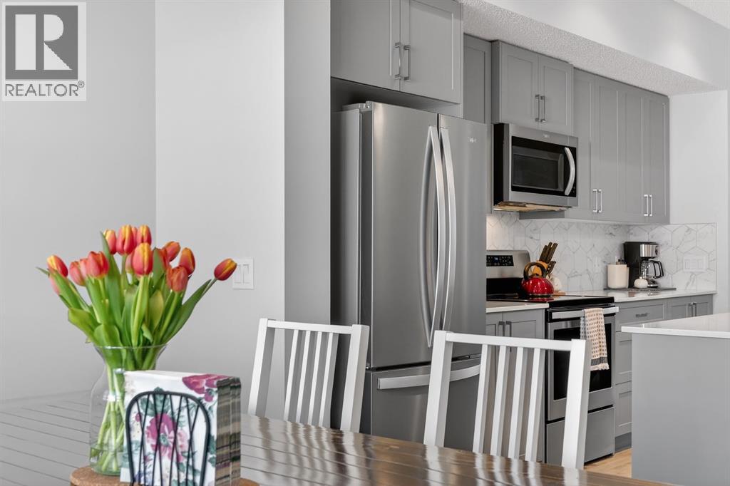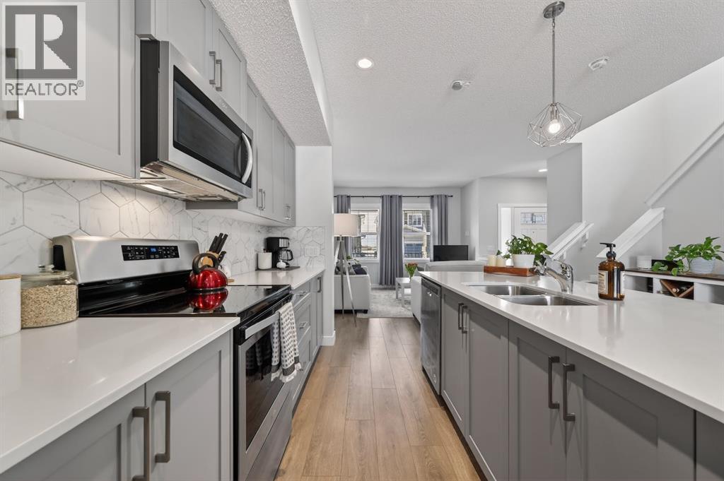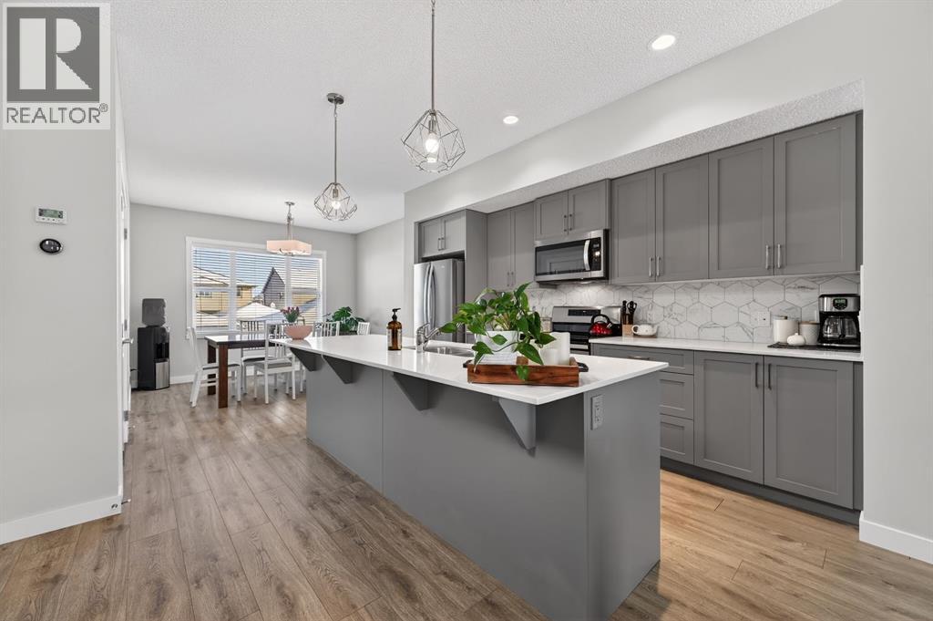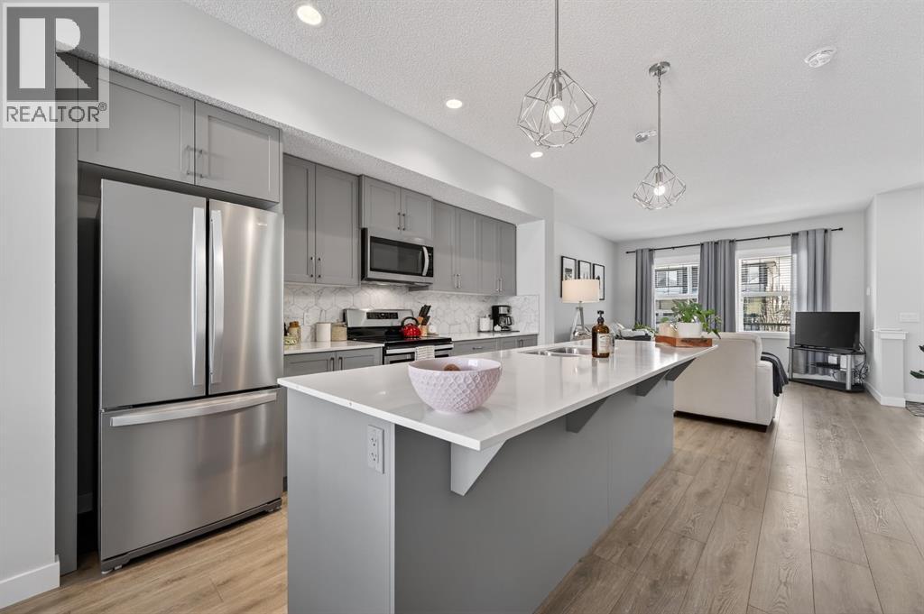 Welcome to this beautiful home, crafted by Shane Homes in the desirable Hillcrest community. This two-storey Duplex features Smart Home technology, appears brand new and boasts exceptional curb appeal. This home is a prime opportunity for you. It includes a spacious front veranda, beautiful landscaping and a stone facade. The bright, open-plan interior is impressive, with nine-foot ceilings on the main level, a spacious front room with large windows and a formal living area. The dining area, spacious kitchen and island, all with gleaming quartz countertops, perfectly complement the upgraded stainless appliances and grey cabinets. Upstairs, you will find a spacious primary suite with a walk-in closet, complete with organizers and a 3 piece en-suite. Two other nicely appointed bedrooms and a convenient upstairs laundry room and 4 piece main bath complete the upper level. The unspoiled basement offers design potential. The backyard features a large deck ideal for barbecues, a fully fenced area and a double garage measuring 19’4” x 21’2”. Located near schools, parks and shopping, this home presents a fantastic opportunity. Book your private viewing today. (id:63190)