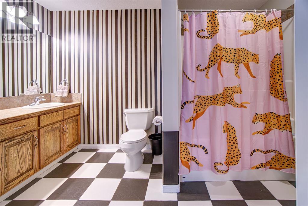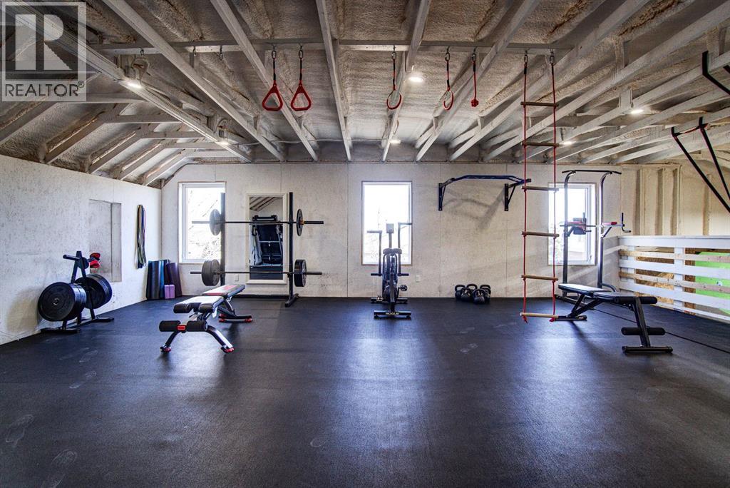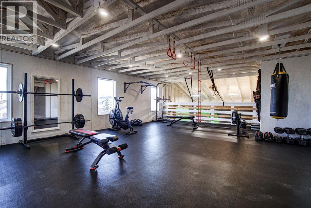 Located on one of the most sought-after cul-de-sacs in town, this one-of-a-kind family home is truly unforgettable. With convenient walking access to schools, baseball diamonds, and paved pathways, the location is just as impressive as the home itself. From the moment you arrive, the expansive circular driveway and incredible heated 4-car garage set the tone for what’s to come. Step inside to a bright, open-concept main living area featuring vaulted ceilings and beautiful dormer windows that flood the space with natural light. The thoughtfully designed kitchen is the heart of the home, complete with a large eat-up island, sink overlooking the backyard, warm wood cabinetry, and stainless steel appliances perfect for staying connected while entertaining or spending time with family. The spacious dining area easily accommodates gatherings of any size and offers direct access to the partially covered back deck. Just off the front entry, a versatile flex room provides the perfect opportunity for a home office, or future walk-in pantry. The main floor continues with two generously sized bedrooms, each with large closets, and a 3-piece bathroom tucked behind a pocket door for added privacy. The primary suite is a true retreat, featuring private access to the back deck, DOUBLE walk-in closets, and a luxurious ensuite with a corner soaker tub, separate shower, double sinks, and a private toilet room. Additional main floor highlights include a convenient 2-piece guest bathroom and a spacious laundry room with a full wall of built-in lockers, ideal for busy family life. The fully developed basement offers large windows, brand new carpet, a massive family room, wet bar with full fridge, games area, two additional bedrooms with walk-in closets, a 4-piece bathroom, and ample storage including a secure lockable room. And then… there’s the garage.More than just a place to park, this heated 4-car garage is an experience in itself featuring a massive loft gym with dormer windows ove rlooking an incredible THREE story climbing wall. Yes, you read that right. Add in space for a pool table and the ultimate man cave setup, and this becomes a truly unmatched feature. All of this is set on a large yard with plenty of room for toys, gardening, and outdoor living. This is not just a home, it’s a lifestyle. Truly one of a kind. (id:63190)