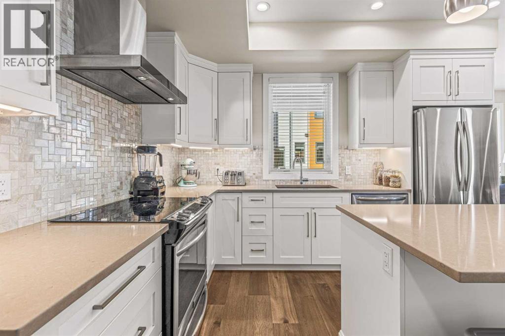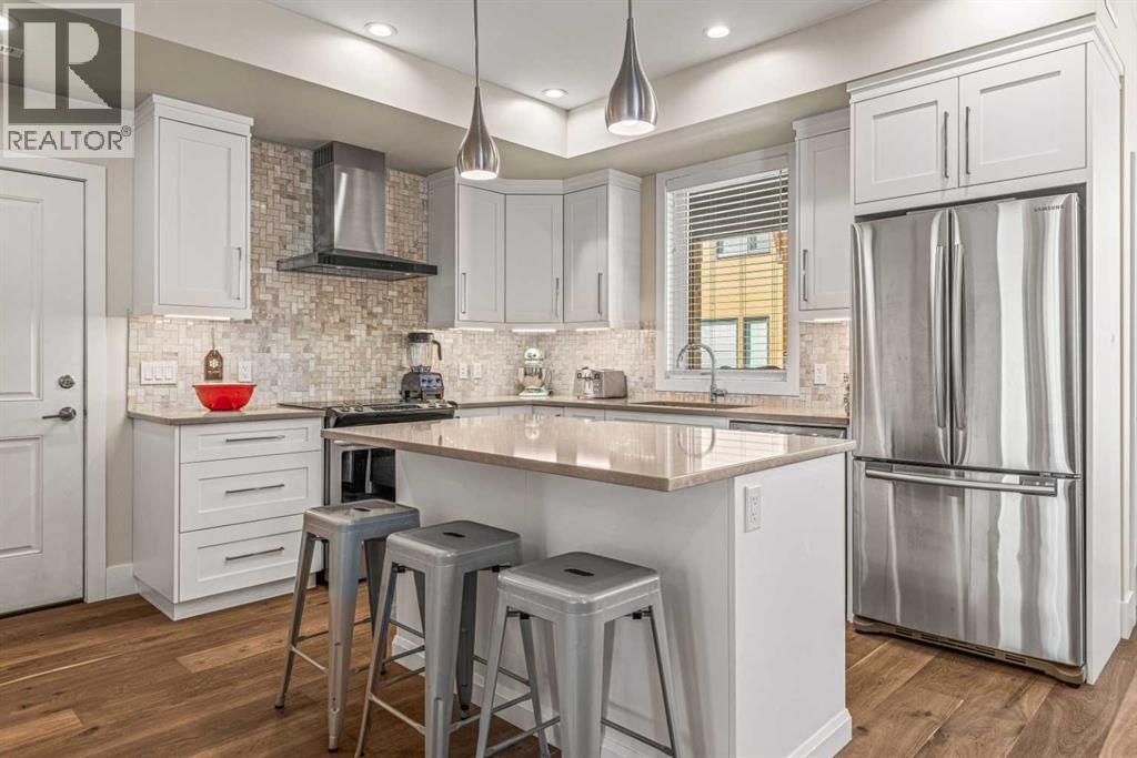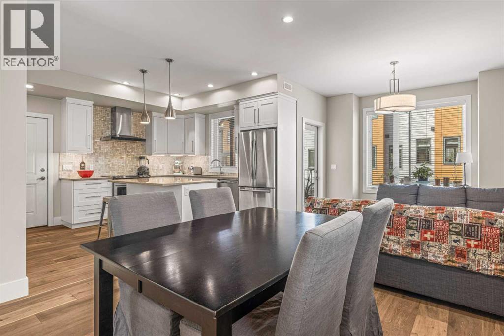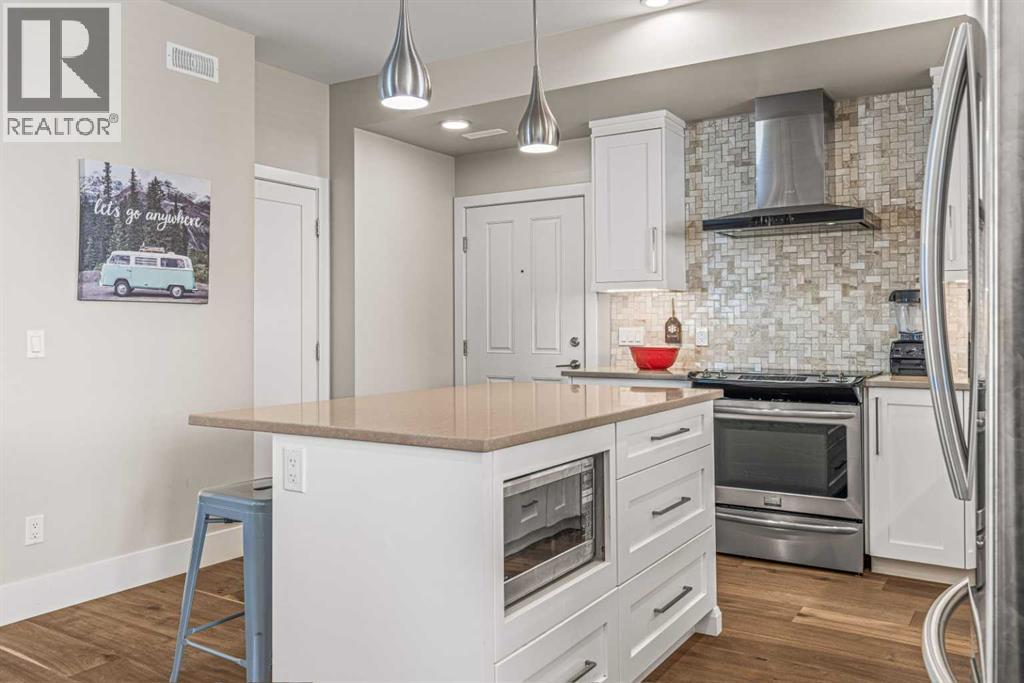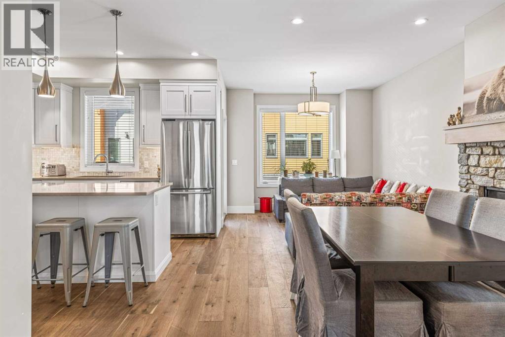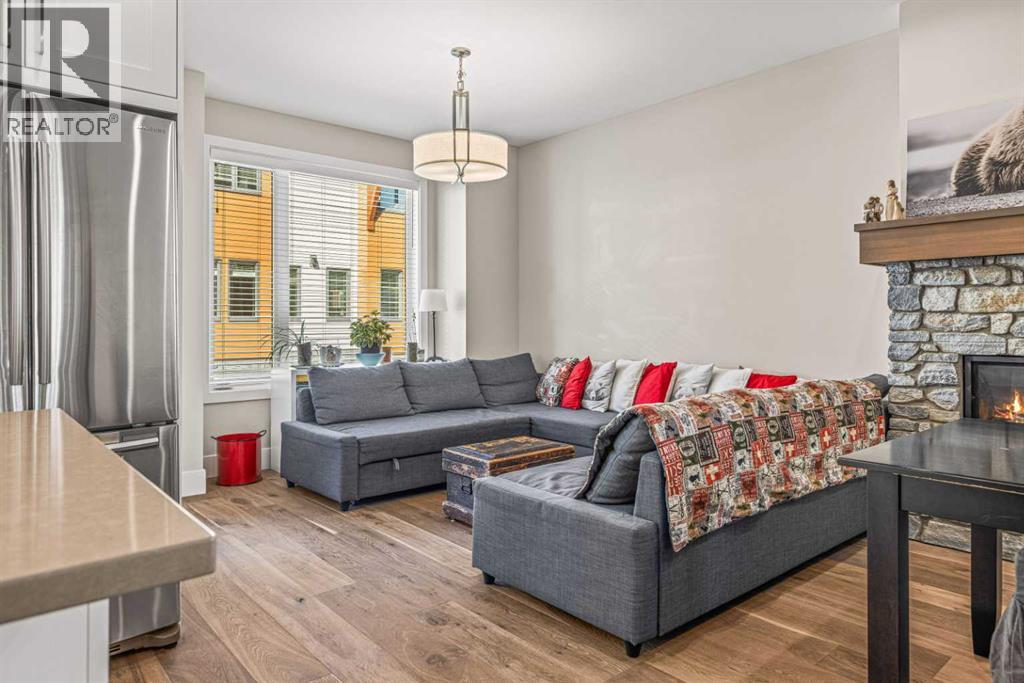 Located in the highly desirable Three Sisters Mountain Village, this meticulously maintained single-level end unit presents an open-concept floor plan with modern finishes. The kitchen boasts sleek quartz countertops, stainless steel appliances, and luxury vinyl plank flooring, seamlessly extending to the spacious deck. The unit features two large bedrooms and two bathrooms, with lovely mountain views. Residents enjoy easy access to nearby hiking and biking trails, playgrounds, the renowned Stewart Creek Golf Course, and in close proximity to “The Gateway” commercial space, which promises an IGA along with additional amenities. The property includes a single attached garage and a separate heated gear and storage area, ideal for full-time living or a weekend retreat—all complemented by low condo fees! (id:63190)