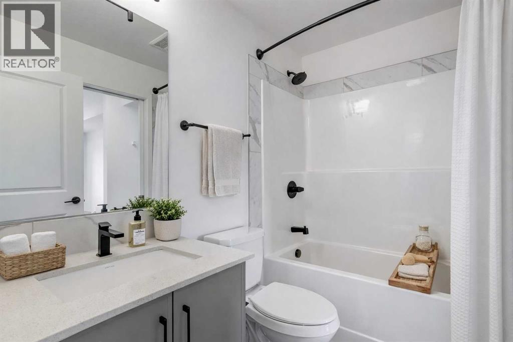 Welcome to Sandgate at Mahogany, built in 2025, where lakeside living meets everyday convenience in one of Calgary’s most vibrant, sought-after communities.Perched on the TOP FLOOR, this beautifully designed 1-bedroom, 1-bath condo offers 9ft ceilings and an airy, open feel that instantly feels like home. Sunlight pours into the living space, highlighting the modern finishes—quartz countertops, sleek luxury vinyl plank flooring, and BRAND-NEW Whirlpool stainless steel appliances—all thoughtfully chosen to blend style with effortless living.The kitchen flows seamlessly into the dining and living areas, creating the perfect space to unwind or entertain. Just beyond, your private balcony overlooks the peaceful courtyard and is already roughed-in for A/C and a gas line—ideal for summer BBQs and quiet evenings outdoors.Your spacious bedroom becomes a true retreat, complete with soft carpeting, a walk-through closet, and direct access to a semi-ensuite bath. A generously sized laundry room with extra storage adds to the everyday ease this home offers. ALL UTILITIES INCLUDED EXCEPT POWER.But what truly sets this property apart is the lifestyle. From your doorstep, you’re moments from the energy of Westman Village—boutique shops, cafés, restaurants, and fitness studios—all woven into a walkable, community-focused setting. Spend your days at Mahogany’s private Beach Club, where you can paddleboard, swim, fish, or simply relax by the water. Parks, pathways, playgrounds, and dog parks are all just steps away. This unit comes with 1 titled parking stall. With access to a resident GYM, GUEST SUITE, and a PET-FRIENDLY environment, this home is perfect for first-time buyers, downsizers, or investors looking for something special.This isn’t just a condo—it’s a lifestyle. Pack your bags and start living it. (id:63190)