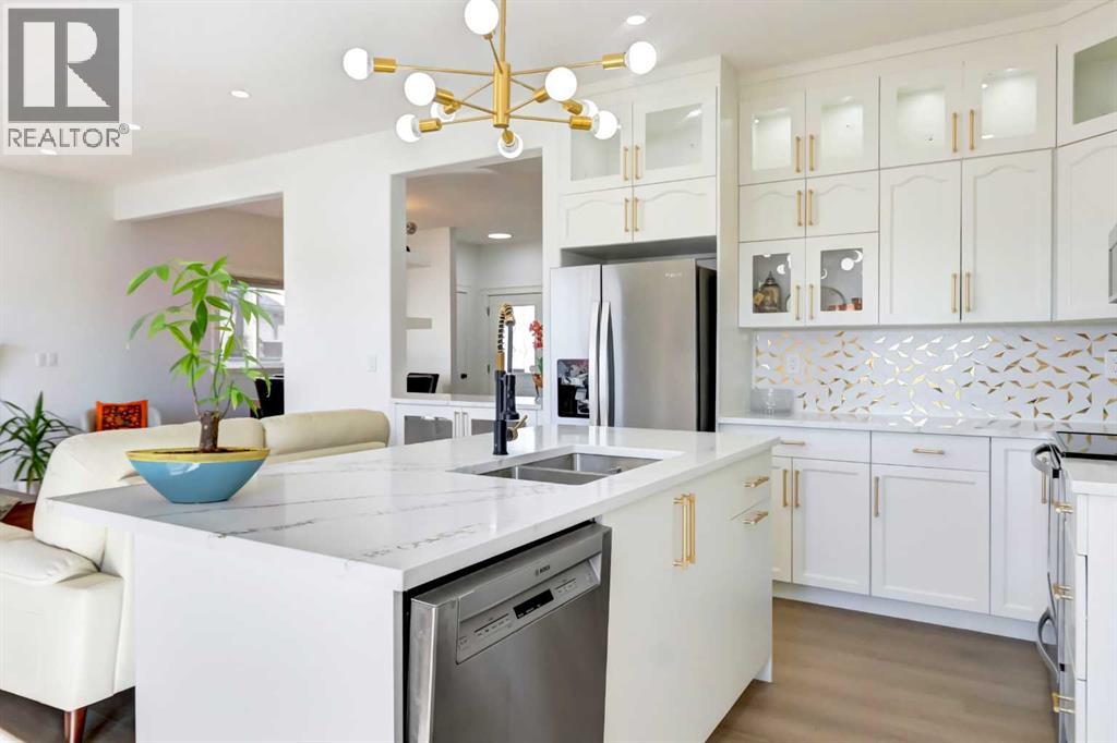 Openhouse Saturday April 18, 12 to 2pm. Welcome to this gorgeous, very bright, fully renovated like new home offering approximately 2,500 SQ FT of total living space, featuring 5 bedrooms, 4 bathrooms, and a WALKOUT basement with LEGAL SECONDARY SUITE, ideally located in a quiet CUL-DE-SAC. This home showcases an excellent floor plan with extensive upgrades throughout. The main floor has been completely remodeled with NEW paint, NEW vinyl flooring throughout, NEW interior doors and handles, updated railings, pot lights, and modern lighting. The NEW kitchen is beautifully designed with brand-new cabinetry, countertops, and upgraded stainless steel appliances. All bathrooms have been FULLY RENOVATED, featuring NEW vanities, tiles, faucets, toilets, and lighting. Exterior upgrades include a NEW concrete patio, NEW concrete sidewalk, NEW custom fencing, and a storage shed. Enjoy breathtaking mountain views from the west-facing, full-width deck. The property also offers ample parking with a driveway that accommodates up to 4 vehicles, leading to an oversized insulated and drywalled DOUBLE ATTACHED GARAGE. The inviting family room features a cozy gas fireplace with tile and maple surround, seamlessly connected to the kitchen and sunny breakfast nook with direct access to the deck. Upstairs, you will find 4 spacious bedrooms, including the primary bedroom with a walk-in closet and a NEW 4-piece ensuite bathroom. The WALKOUT basement with LEGAL SECONDARY SUITE (2024) is fully self-contained with its own newer kitchen, bathroom, bedroom, and private laundry an excellent opportunity for RENTAL INCOME or extended family living. Conveniently located close to the YMCA, a short drive to the C-Train, within walking distance to schools, and near shopping centers and Stoney Trail. MOVE-IN READY with exceptional value and income potential—this is a must-see! (id:63190)