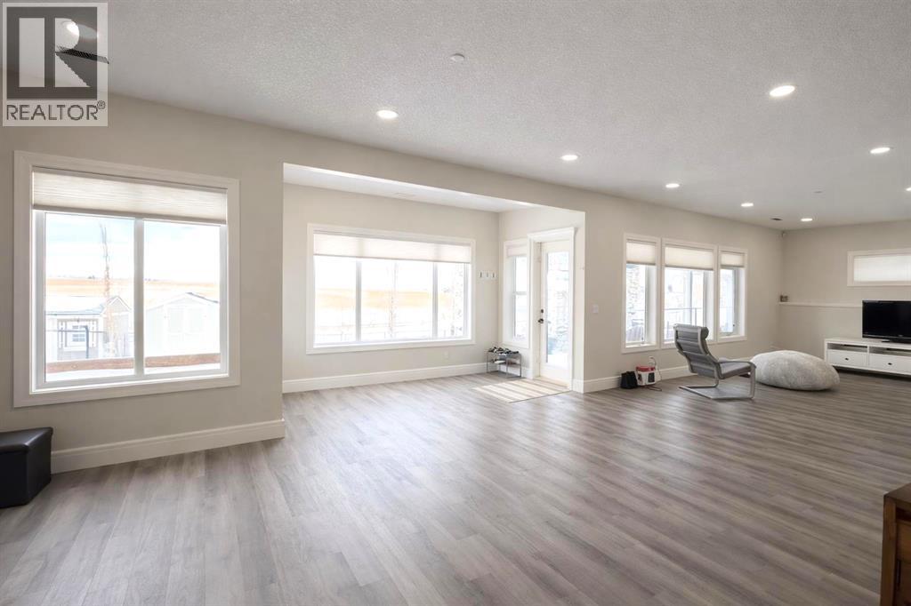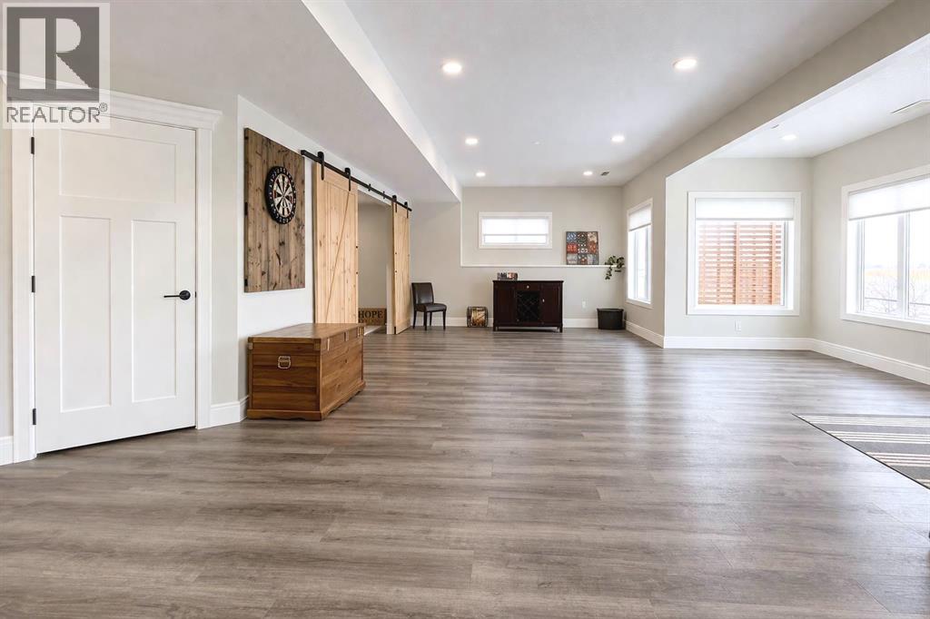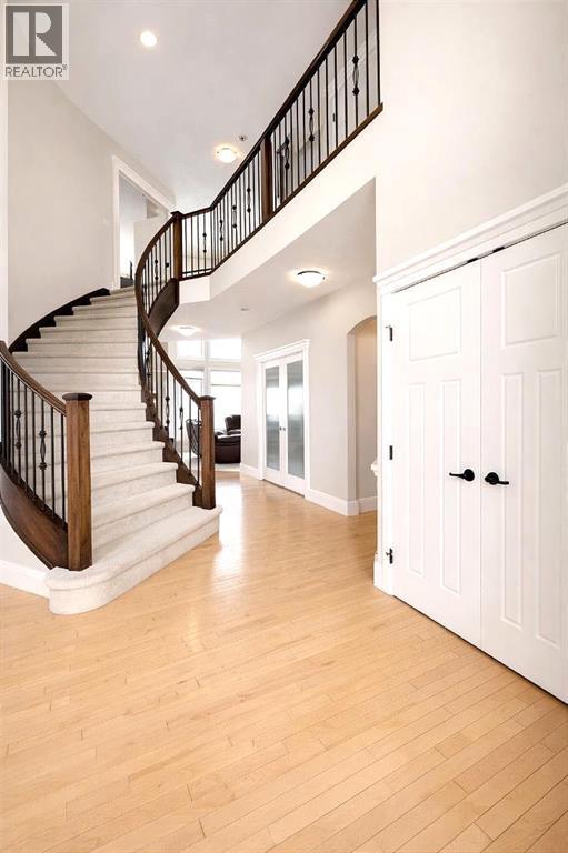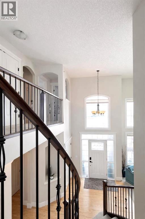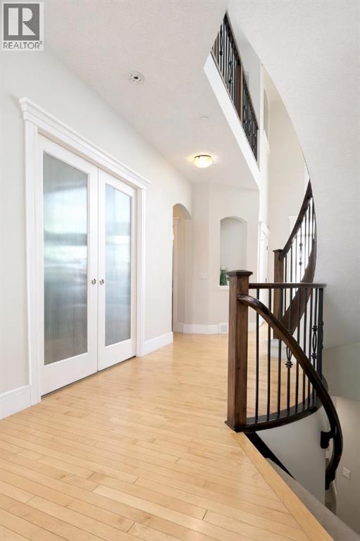** OPEN HOUSE Sunday April 19th 2pm-4pm ** Introducing this amazing luxury home in the prestigious ‘Lakes of Muirfield’—offering OVER 4,200 sq ft of developed living space, perfectly positioned backing onto the canal and golf course with greenspace to the side and rear, creating a rare private setting with no neighbours behind! This stunning residence showcases a WALKOUT BASEMENT, 4 bedrooms and 4 bathrooms, impressive curb appeal, and a grand interior featuring hardwood flooring and a striking curved staircase. The main level boasts a vaulted family room with over sized windows open to above, a formal dining room, and an elegant open-to-above living room, flooded with natural light. The spacious kitchen is designed for both function and style with rich cappuccino cabinetry, a corner pantry, a large sit-up island with prep sink, an additional main sink overlooking the views, and a bright dining nook with tray ceiling and direct access to the large deck with gas line for BBQ—perfect for entertaining. A private office/den with sleek sliding pocket doors and a powder room complete this level. Upstairs, a grand double-door entry leads to the luxurious primary retreat featuring a spa-inspired ensuite with oversized shower, standalone soaker tub, dual vanities, and a generous walk-in closet, while two additional bedrooms—both with walk-in closets—along with a full bathroom and convenient upper laundry complete the upper floor, all enhanced by open-to-below design elements that elevate the home’s sense of space and elegance. The fully developed basement offers vinyl plank flooring throughout, a large recreation/entertainment space, gym area, fourth bedroom, and full bathroom, with direct access to a covered patio and beautifully landscaped yard featuring a pergola and shed, all set against serene canal and golf course views. Note, New roof, siding & trim! Ideally located just minutes to Strathmore, Langdon, and Chestermere, with an easy 20-minute commute to Calgary and c lose proximity to the new De Havilland plant—this is luxury living in a peaceful, scenic setting. (id:63190)