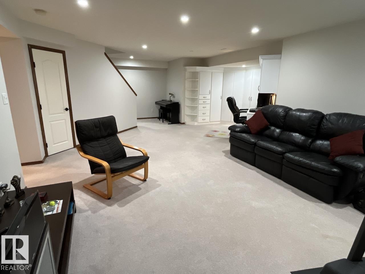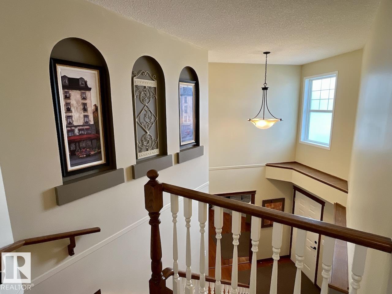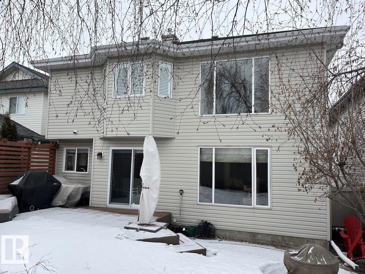 Welcome to Twin Brooks, one of Southwest Edmonton’s most desirable communities, known for its natural beauty, family-friendly atmosphere, & prime location. This meticulously maintained 2-storey Jayman BUILT home offers exceptional space & comfort. Featuring double attached garage, vaulted entry, bright open-to-above living room, soaring ceilings, large windows, & cozy corner gas fireplace. The main floor includes a front den/office, plus hardwood & elegant architectural details throughout. The kitchen offers white cabinetry, stone countertops, kitchen island, pantry, breakfast nook & formal dining area. Upstairs overlooks the living space, includes 3 bedrooms, master ensuite w/ glass walk-in steam shower, double sink vanity, while the finished basement includes full bath, bedroom, additional living area & office w/ custom cabinets & plenty of storage. Enjoy a fully landscaped backyard w/ mature trees, composite deck, & fire pit area. Upgrades: furnace (2020), HWT & softener. (id:63190)