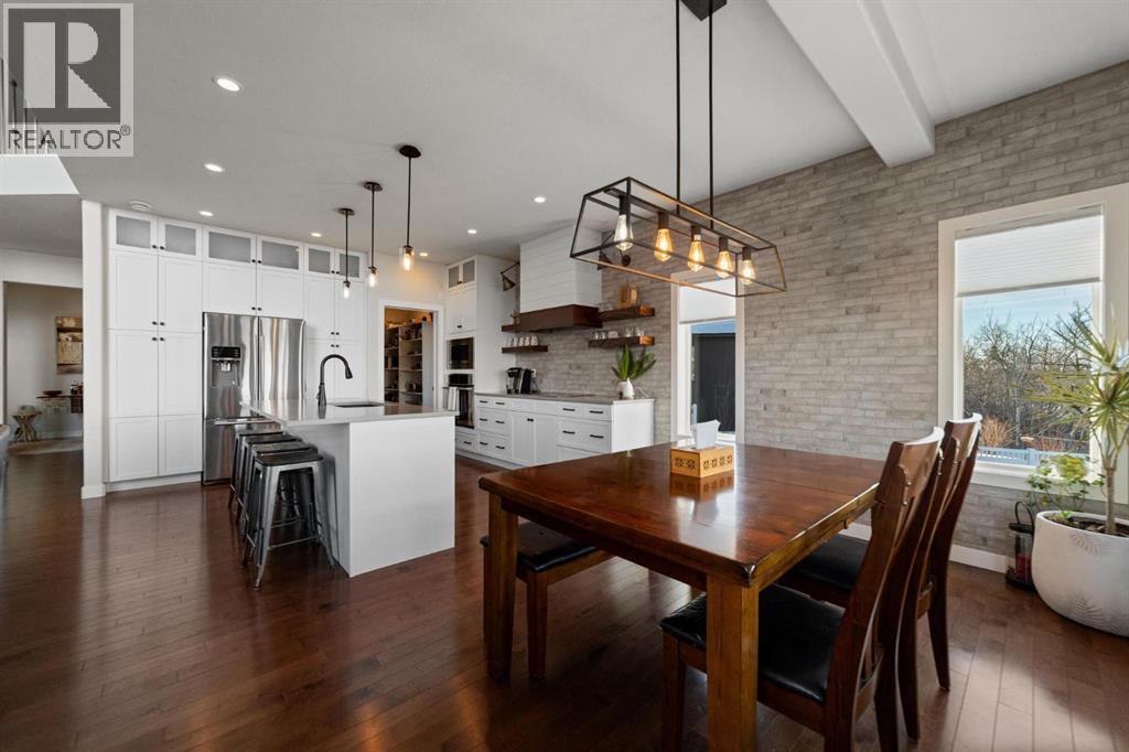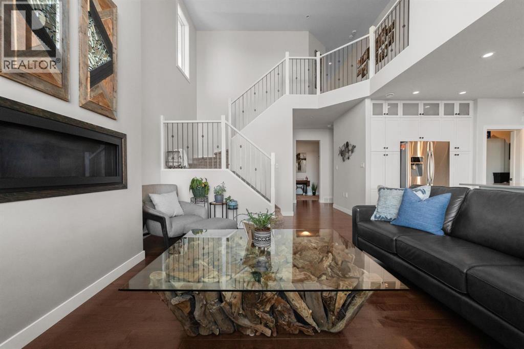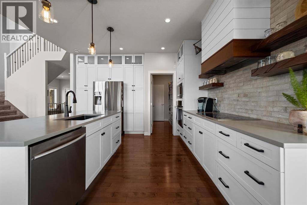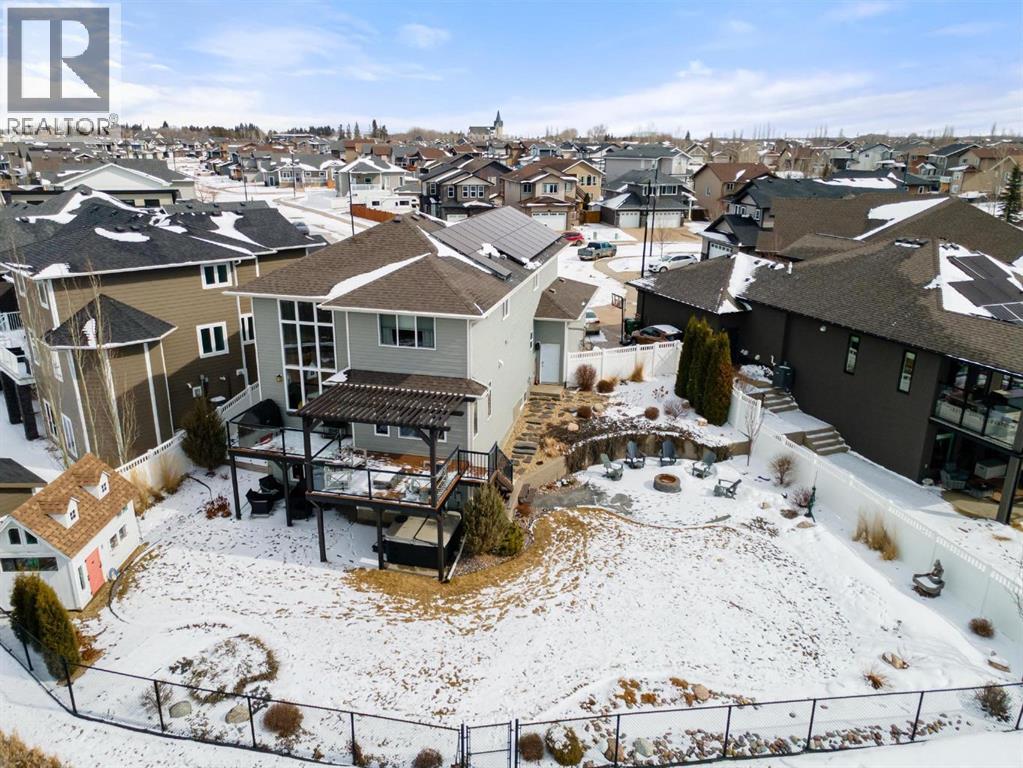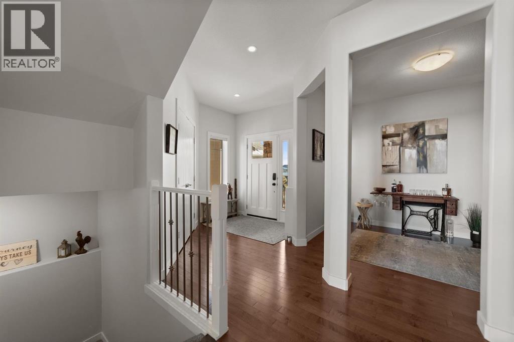 This immaculate, custom-built two-storey walkout in Creekview is the kind of home that immediately sets itself apart—now enhanced with a brand new solar system for modern efficiency. From the moment you step inside, you’re welcomed by rich hardwood flooring and a warm, thoughtfully designed layout that feels both elegant and inviting. Expansive floor-to-ceiling windows flood the home with natural light while showcasing truly breathtaking valley views—an ever-changing backdrop you’ll never tire of. The kitchen is beautifully appointed with custom cabinetry, high-end appliances, and a convenient walk-through pantry, seamlessly connecting to the dining and living areas—perfectly positioned to take full advantage of the scenery. Upstairs, the primary suite is a private retreat featuring double vanities, in-floor heating, a deep soaker tub, and a spacious walk-in shower. Two additional bedrooms and a large bonus room offer flexibility for growing families, guests, or the option to create a fifth bedroom if desired. The fully finished walkout basement adds even more living space with a generous family room, an additional bedroom, and a full bathroom—ideal for entertaining or accommodating visitors. Outside, the professionally landscaped yard feels like your own private park. Enjoy a stamped concrete patio with a cozy fire feature, underground sprinklers, vinyl fencing, garden space, and meticulous landscaping that truly elevates the entire property. Complete with air conditioning, RV parking, an oversized heated garage, low-maintenance front landscaping, and close proximity to walking trails, this home delivers on every level. A rare opportunity to own a property that blends comfort, quality, and unforgettable views—perfect for your next chapter. (id:63190)