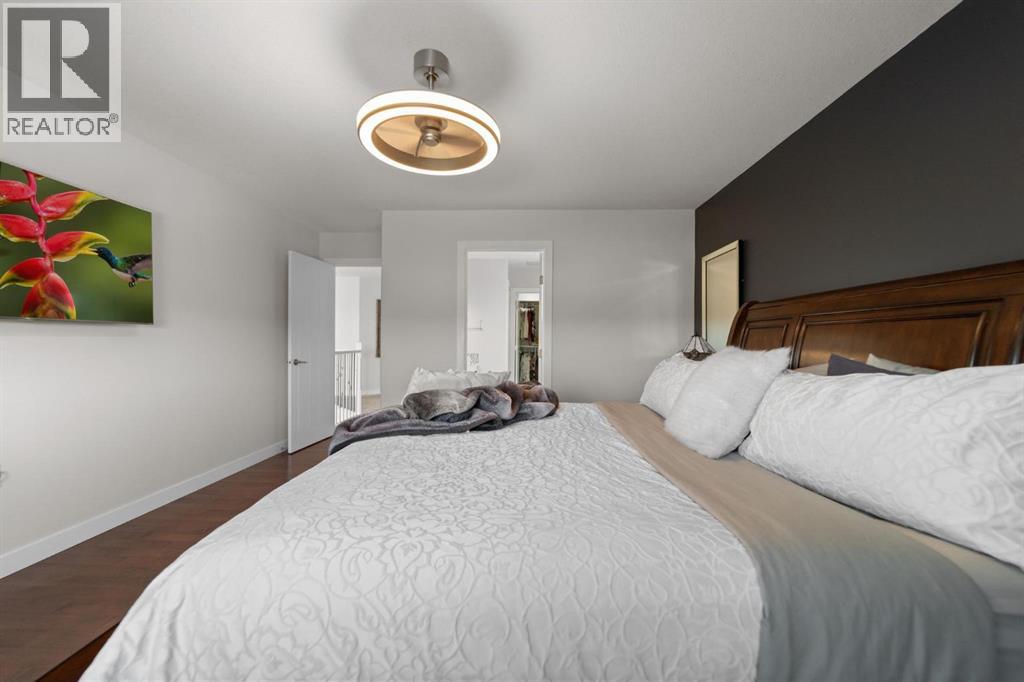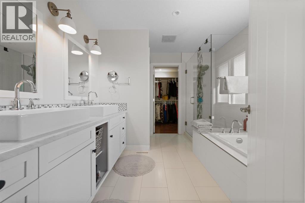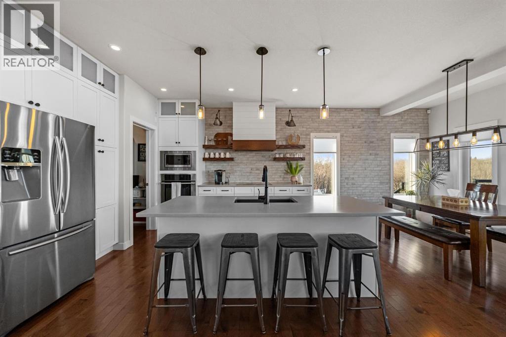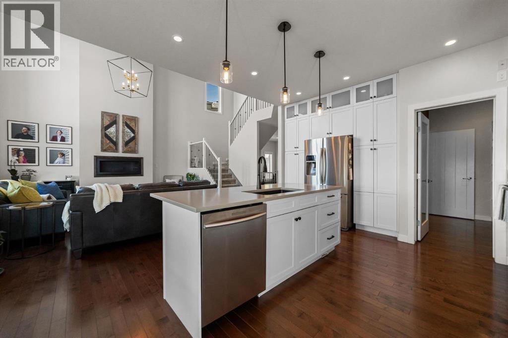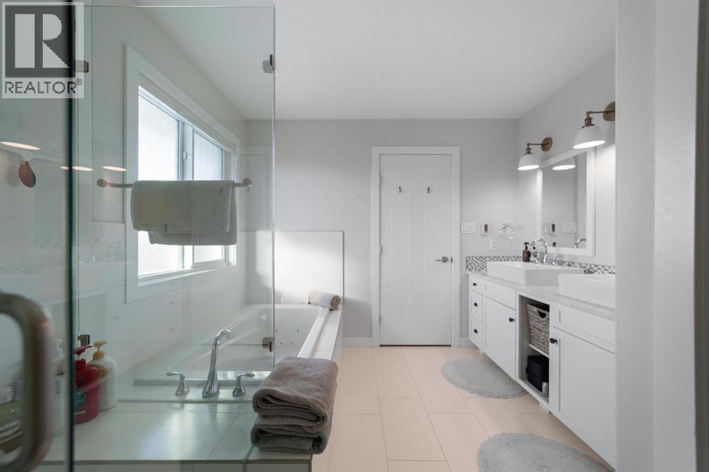 This immaculate, custom-built two-storey walkout in Creekview is the kind of home that immediately sets itself apart—now enhanced with a brand new solar system for modern efficiency. From the moment you step inside, you’re welcomed by rich hardwood flooring and a warm, thoughtfully designed layout that feels both elegant and inviting. Expansive floor-to-ceiling windows flood the home with natural light while showcasing truly breathtaking valley views—an ever-changing backdrop you’ll never tire of. The kitchen is beautifully appointed with custom cabinetry, high-end appliances, and a convenient walk-through pantry, seamlessly connecting to the dining and living areas—perfectly positioned to take full advantage of the scenery. Upstairs, the primary suite is a private retreat featuring double vanities, in-floor heating, a deep soaker tub, and a spacious walk-in shower. Two additional bedrooms and a large bonus room offer flexibility for growing families, guests, or the option to create a fifth bedroom if desired. The fully finished walkout basement adds even more living space with a generous family room, an additional bedroom, and a full bathroom—ideal for entertaining or accommodating visitors. Outside, the professionally landscaped yard feels like your own private park. Enjoy a stamped concrete patio with a cozy fire feature, underground sprinklers, vinyl fencing, garden space, and meticulous landscaping that truly elevates the entire property. Complete with air conditioning, RV parking, an oversized heated garage, low-maintenance front landscaping, and close proximity to walking trails, this home delivers on every level. A rare opportunity to own a property that blends comfort, quality, and unforgettable views—perfect for your next chapter. (id:63190)