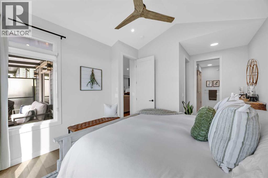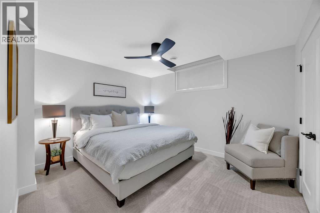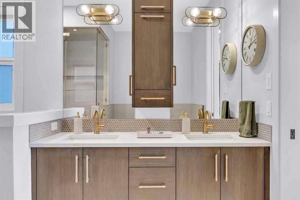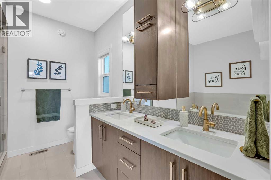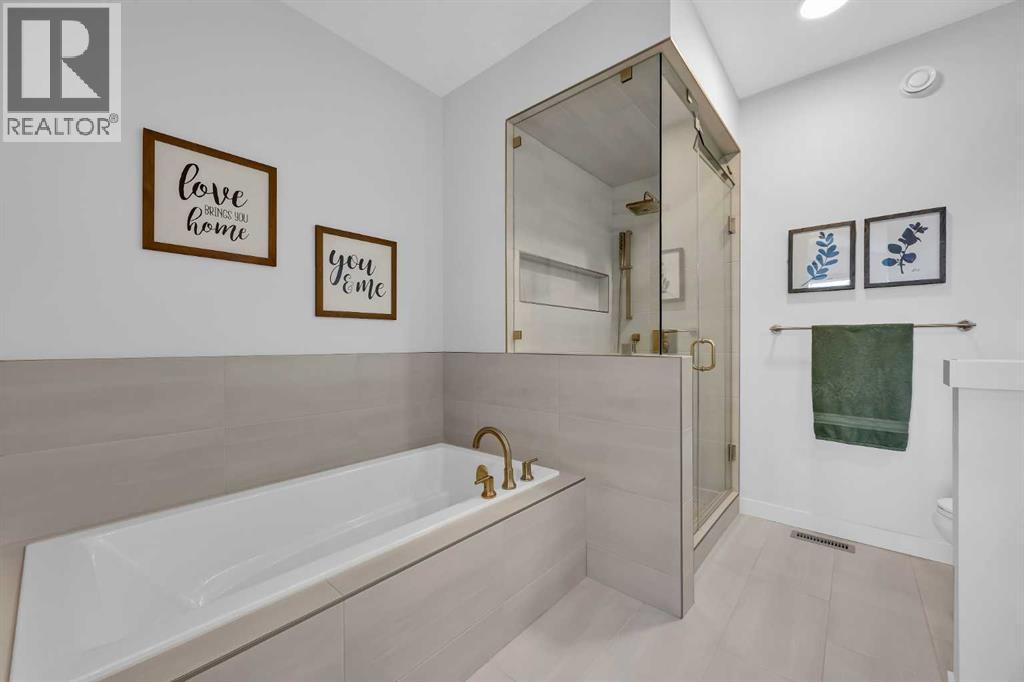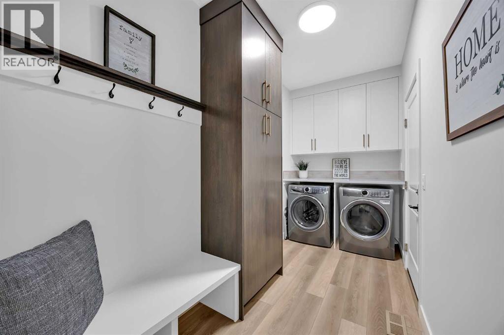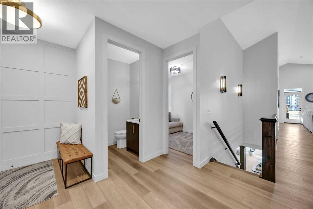 Welcome to this stunning walkout bungalow in Wedderburn, Okotoks, offering over 2,500 sq ft of developed living space, mountain views, and quick access to the highway for an easy commute to Calgary. This home features three bedrooms, two and a half bathrooms, a main floor den, a dedicated gym, and a fully finished walkout basement with a built-in dry bar. A rare opportunity to own a highly upgraded bungalow in one of Okotoks’ fastest growing communities. The main level is defined by vaulted ceilings and large windows that bring in natural light throughout the day. At the center of the home is a chef-inspired kitchen with quartz countertops, an oversized upscale island, full height cabinetry, a walk-in pantry, built-in appliances, and a custom hood fan. A built-in hutch adds both function and character, while the open layout connects seamlessly to the dining and living areas. The living room features a modern linear fireplace and opens directly onto the upper deck, creating a strong indoor-outdoor connection. The primary bedroom is privately positioned and includes a walk-in closet and a well-appointed ensuite with dual vanities, a soaker tub, and a fully tiled shower. A main floor den offers flexibility for a home office or quiet space. The mudroom and laundry area include built-in storage and quartz counters, with direct access to the double attached garage. The fully finished walkout basement expands the living space with two large bedrooms, a full bathroom, a dedicated gym, and a spacious recreation area with a second fireplace and built-in dry bar. The lower level walks out to a patio, extending your living space outdoors. Located in Wedderburn, Okotoks, this bungalow offers access to pathways, parks, and nearby amenities. A well-designed walkout bungalow with a thoughtful layout, elevated finishes, and exceptional living space throughout. (id:63190)