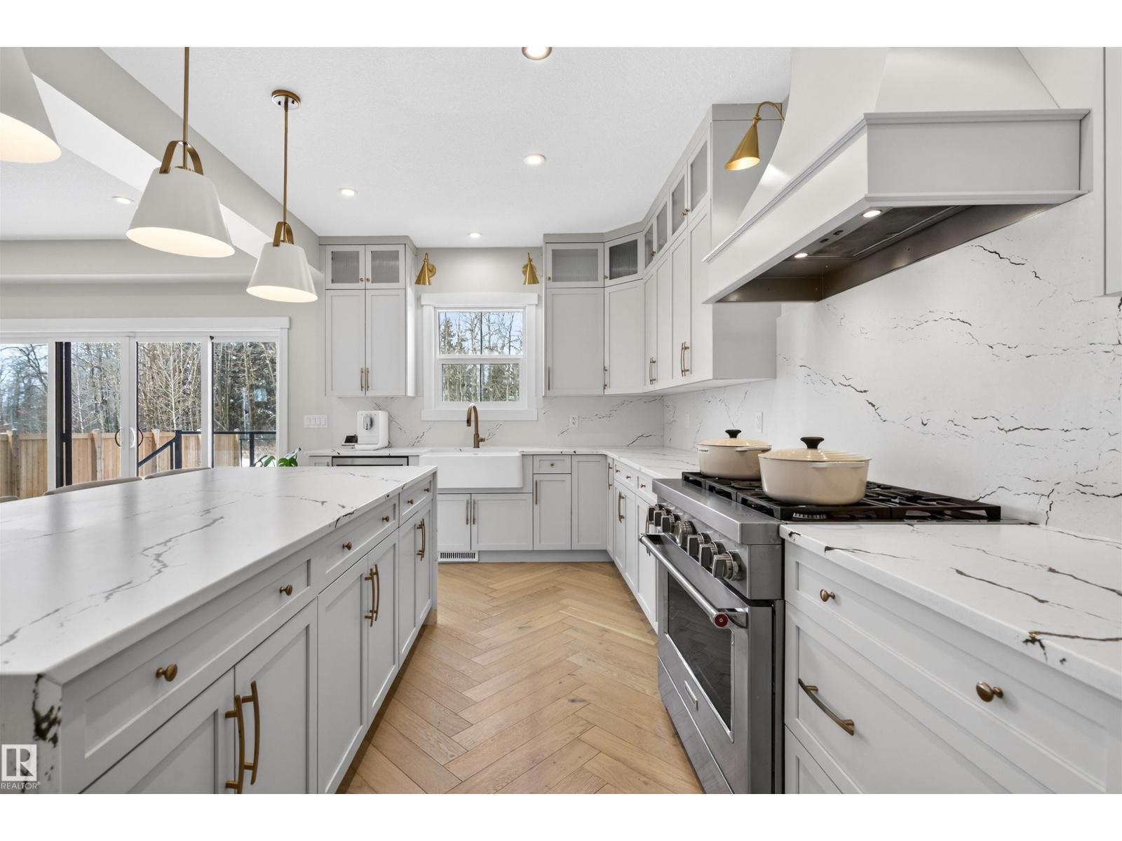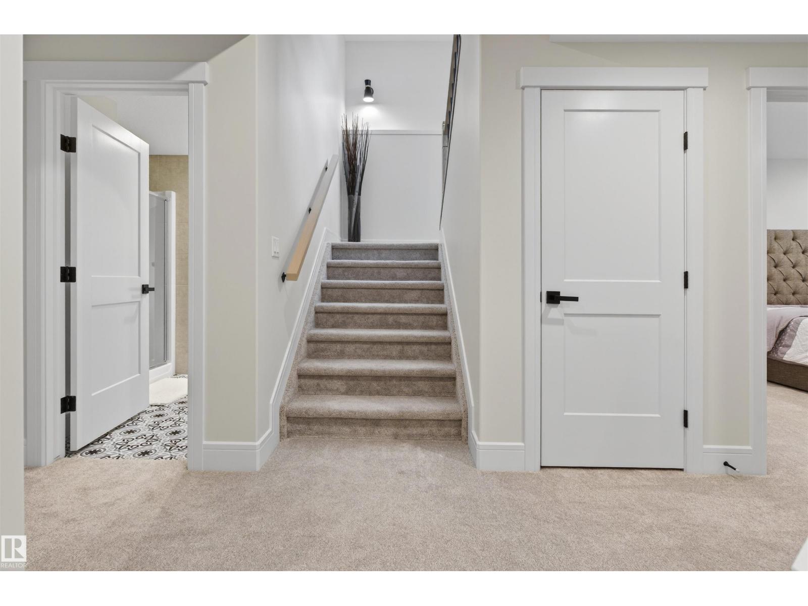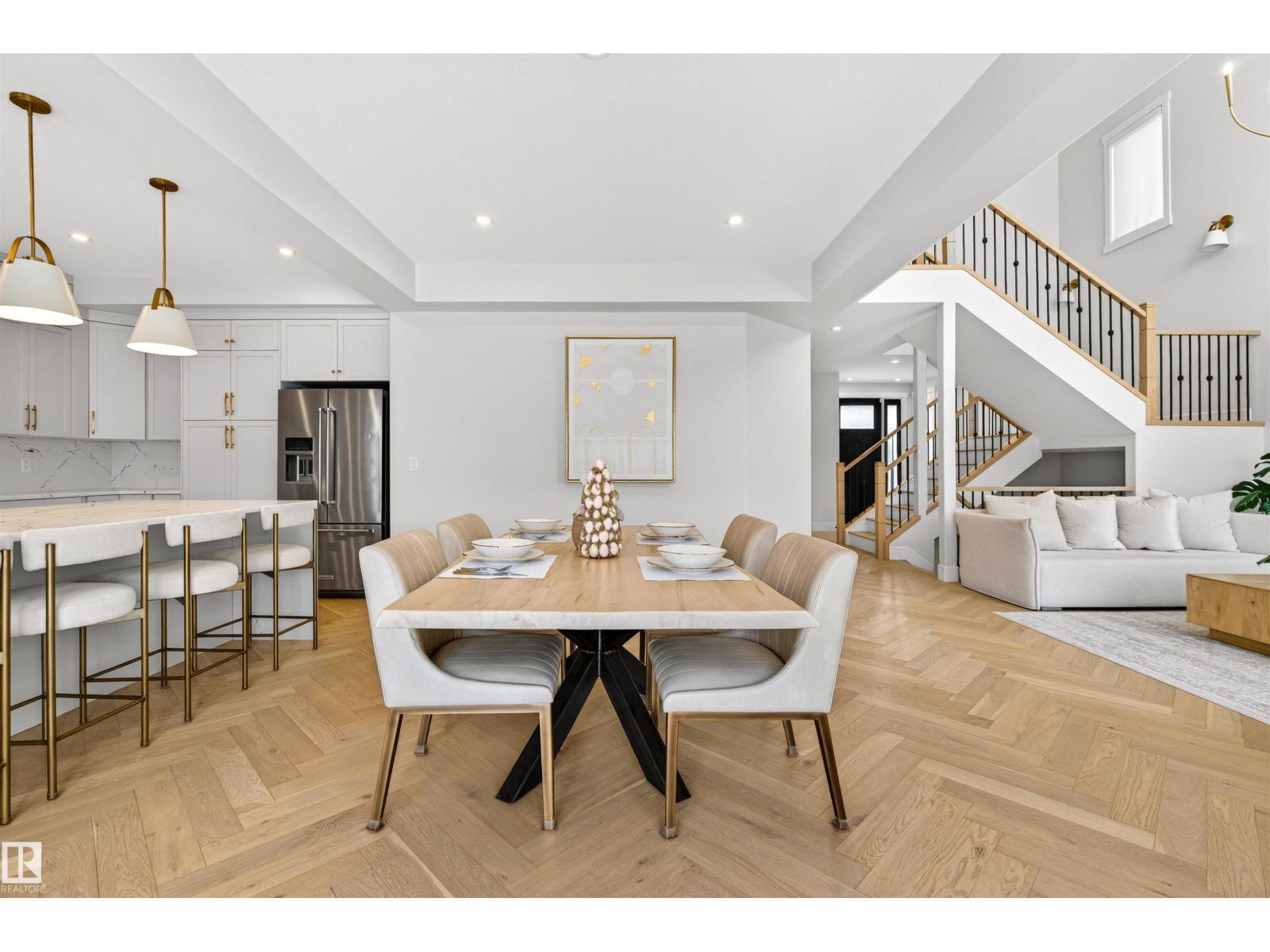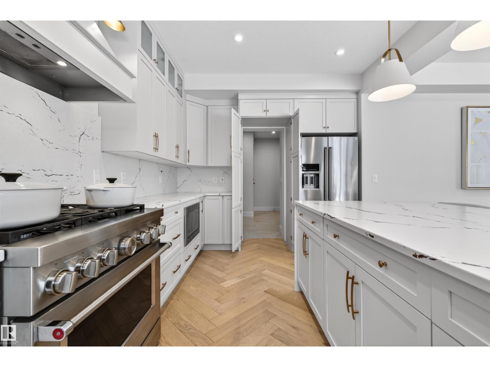 This elegant custom built home blends timeless architecture with refined, minimalist design. Perfectly positioned along an extensive walking trail & forested green space offers both privacy & a serene natural backdrop. All details curated for comfort & family living. Stunning, spacious kitchen showcases a luxury leather-touch Cambria Quartz Island, gas range & hidden butler’s pantry with direct access to the garage. The open-concept main floor is graced by an open stairwell leading to the upper loft, creating a sense of light & architectural interest. Upgrades include Hardwood Flooring, Oversized Windows, Custom floor-to-ceiling Drapes, main-floor office & large upper laundry room. With 4 bdrms, 3.5 baths, A/C &Triple garage. This Home is perfect for all family sizes. The Fully finished basement has a stylish wet bar, recreation room, an extra bedroom & a 3-piece bathroom—perfect for guests & entertaining. Walking distance to park, playground & transit, this home blends luxury, comfort, and convenience. (id:63190)