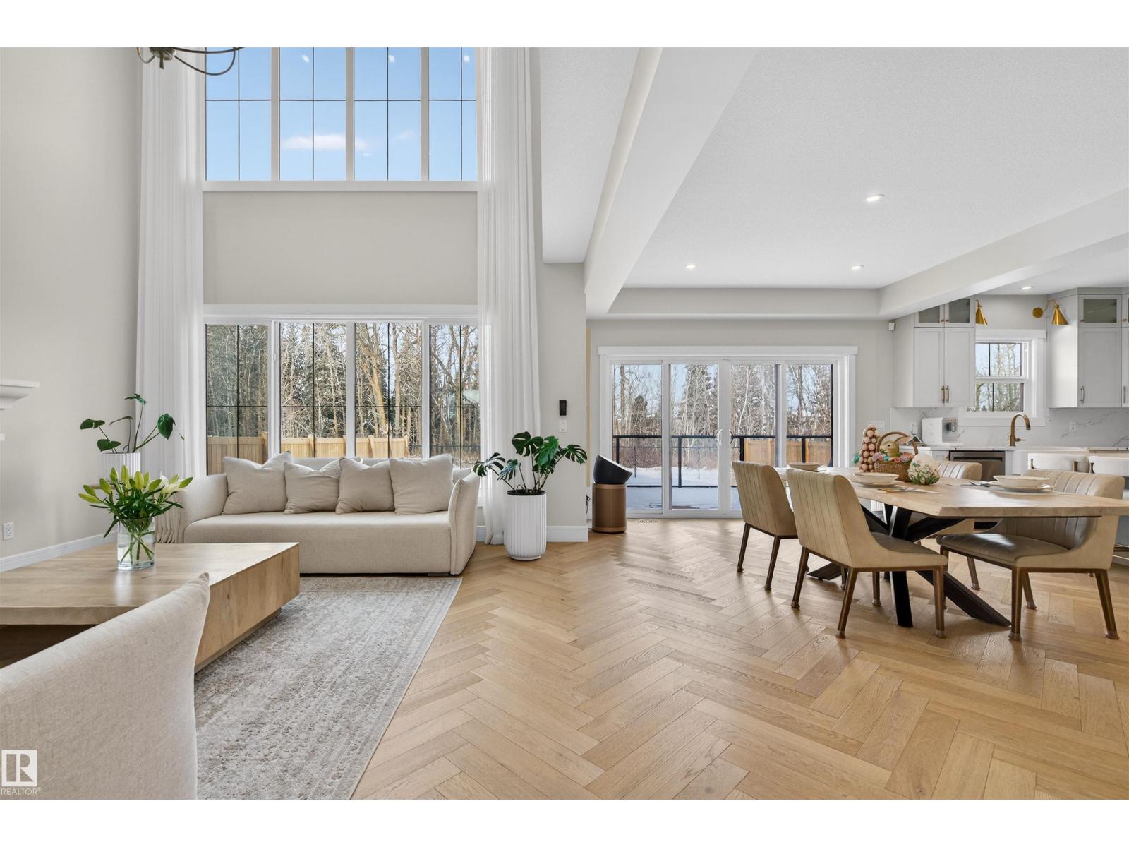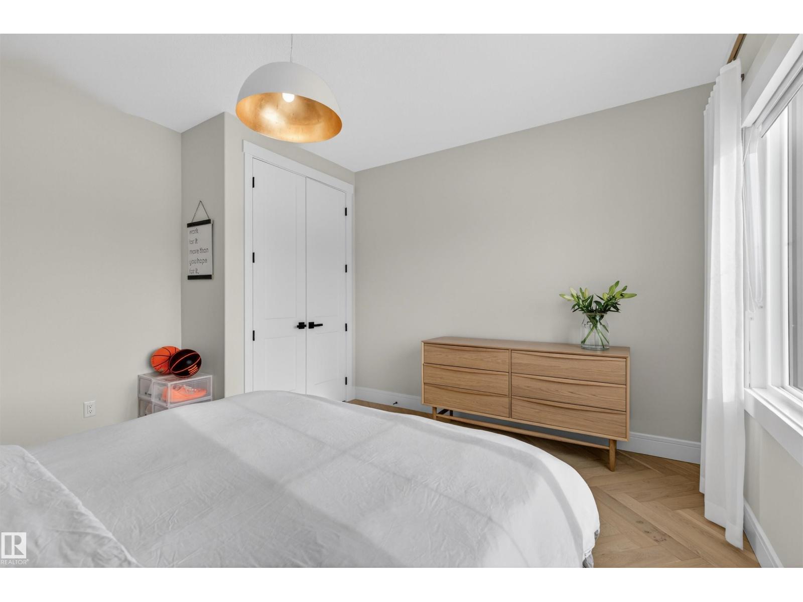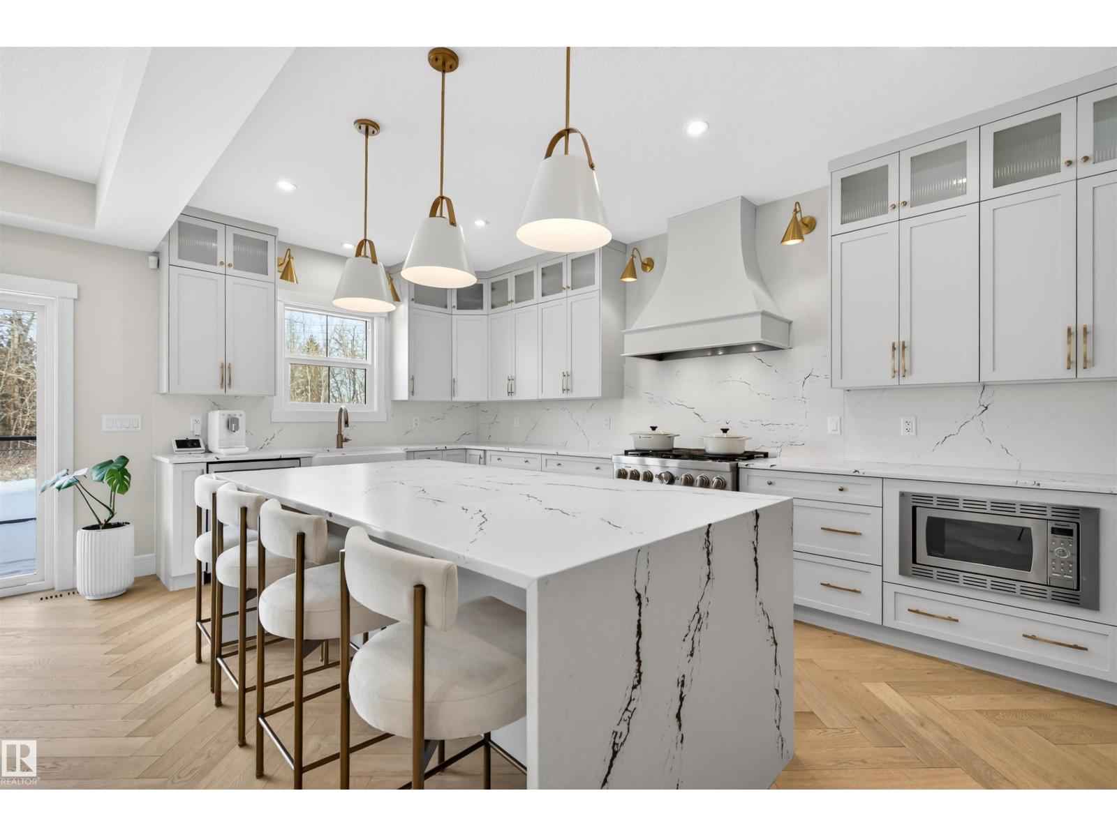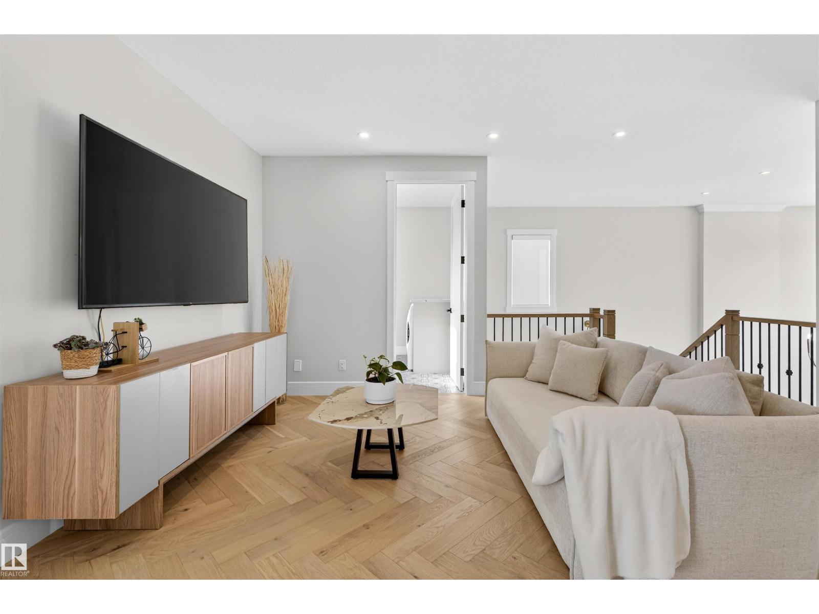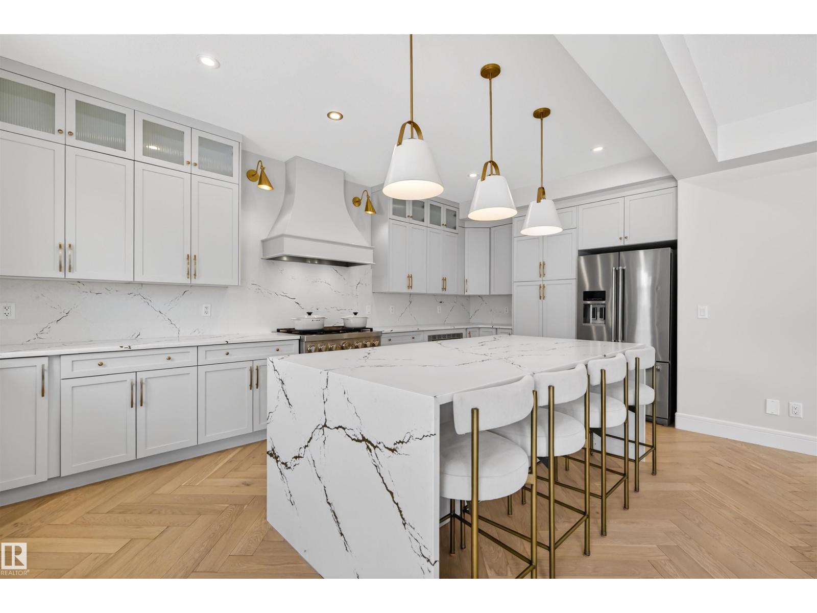 This elegant custom built home blends timeless architecture with refined, minimalist design. Perfectly positioned along an extensive walking trail & forested green space offers both privacy & a serene natural backdrop. All details curated for comfort & family living. Stunning, spacious kitchen showcases a luxury leather-touch Cambria Quartz Island, gas range & hidden butler’s pantry with direct access to the garage. The open-concept main floor is graced by an open stairwell leading to the upper loft, creating a sense of light & architectural interest. Upgrades include Hardwood Flooring, Oversized Windows, Custom floor-to-ceiling Drapes, main-floor office & large upper laundry room. With 4 bdrms, 3.5 baths, A/C &Triple garage. This Home is perfect for all family sizes. The Fully finished basement has a stylish wet bar, recreation room, an extra bedroom & a 3-piece bathroom—perfect for guests & entertaining. Walking distance to park, playground & transit, this home blends luxury, comfort, and convenience. (id:63190)