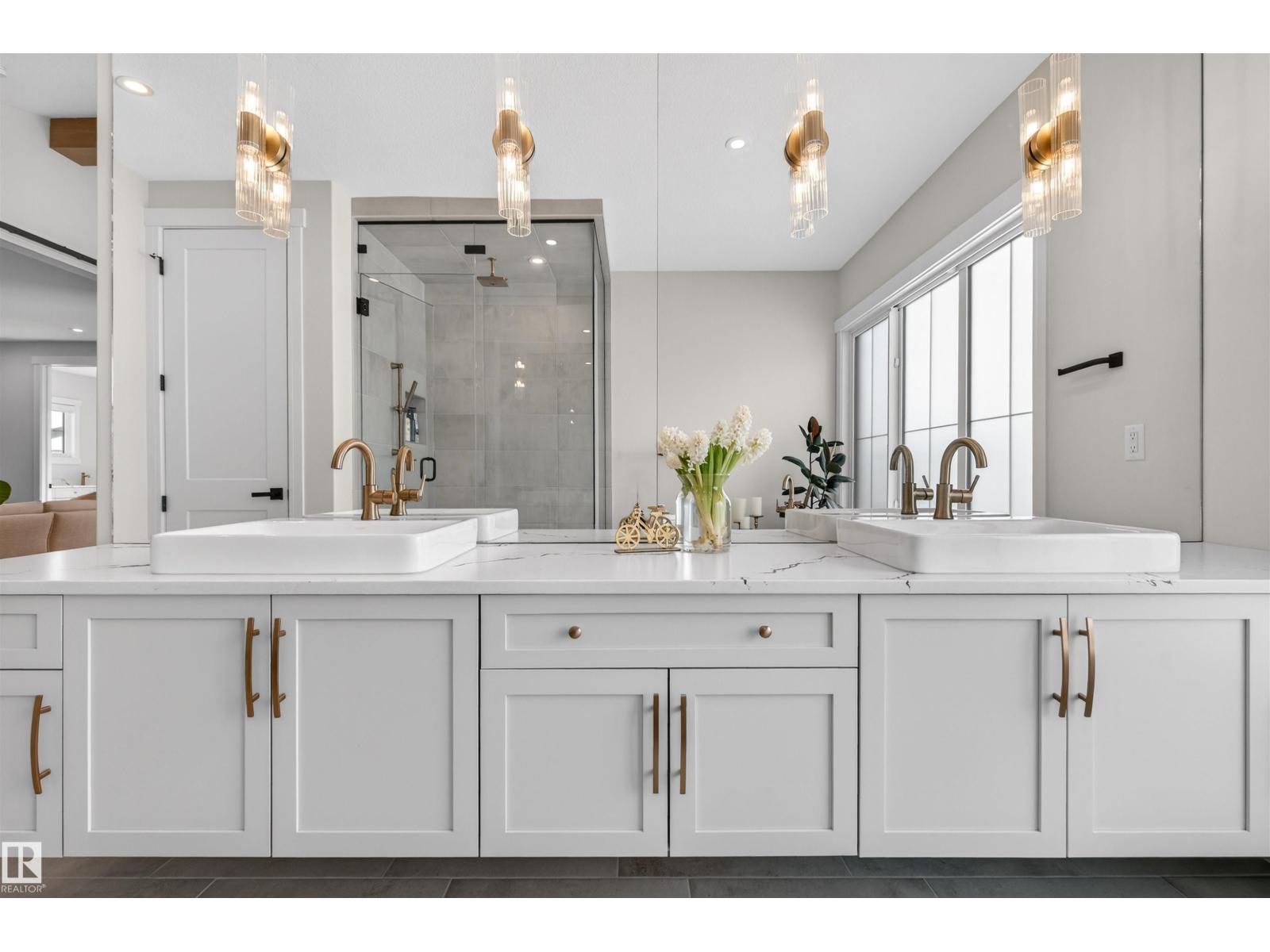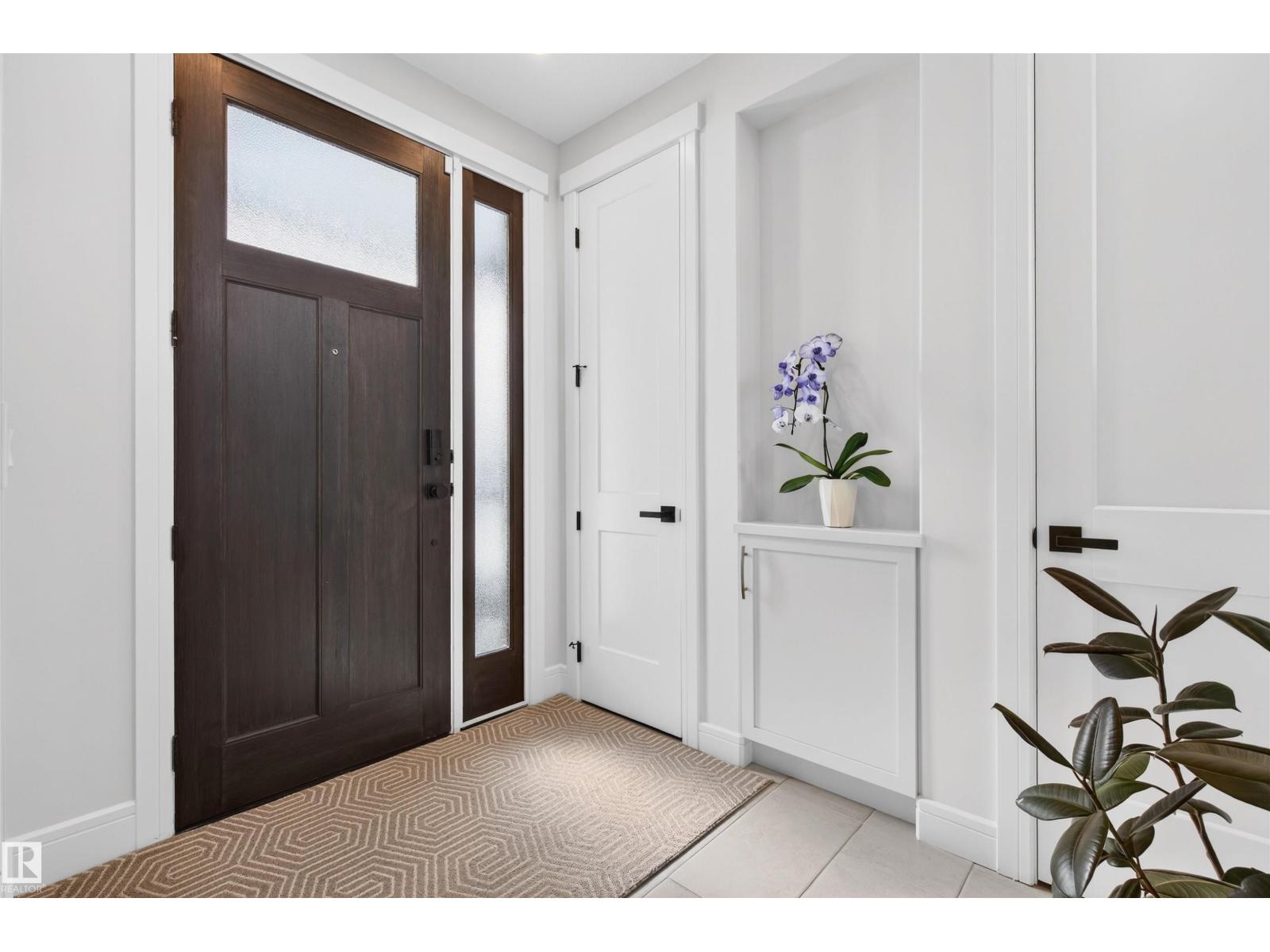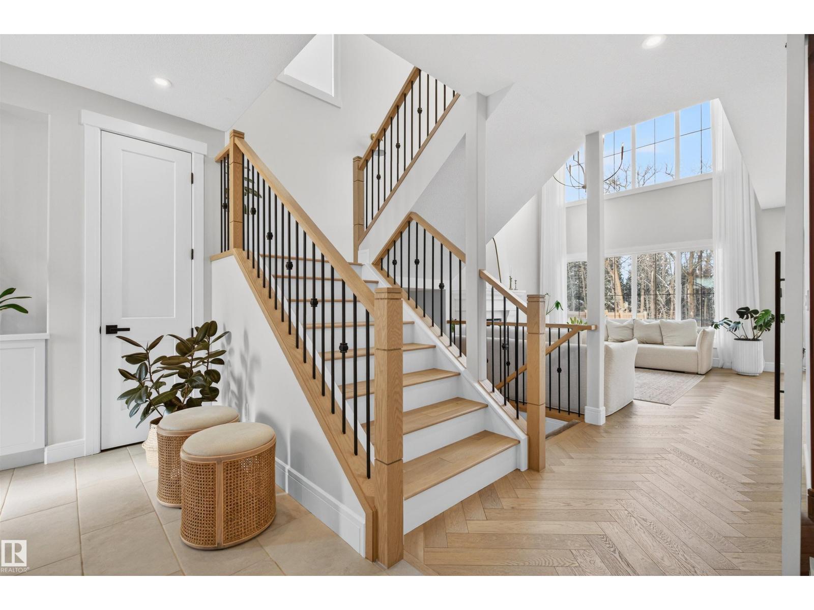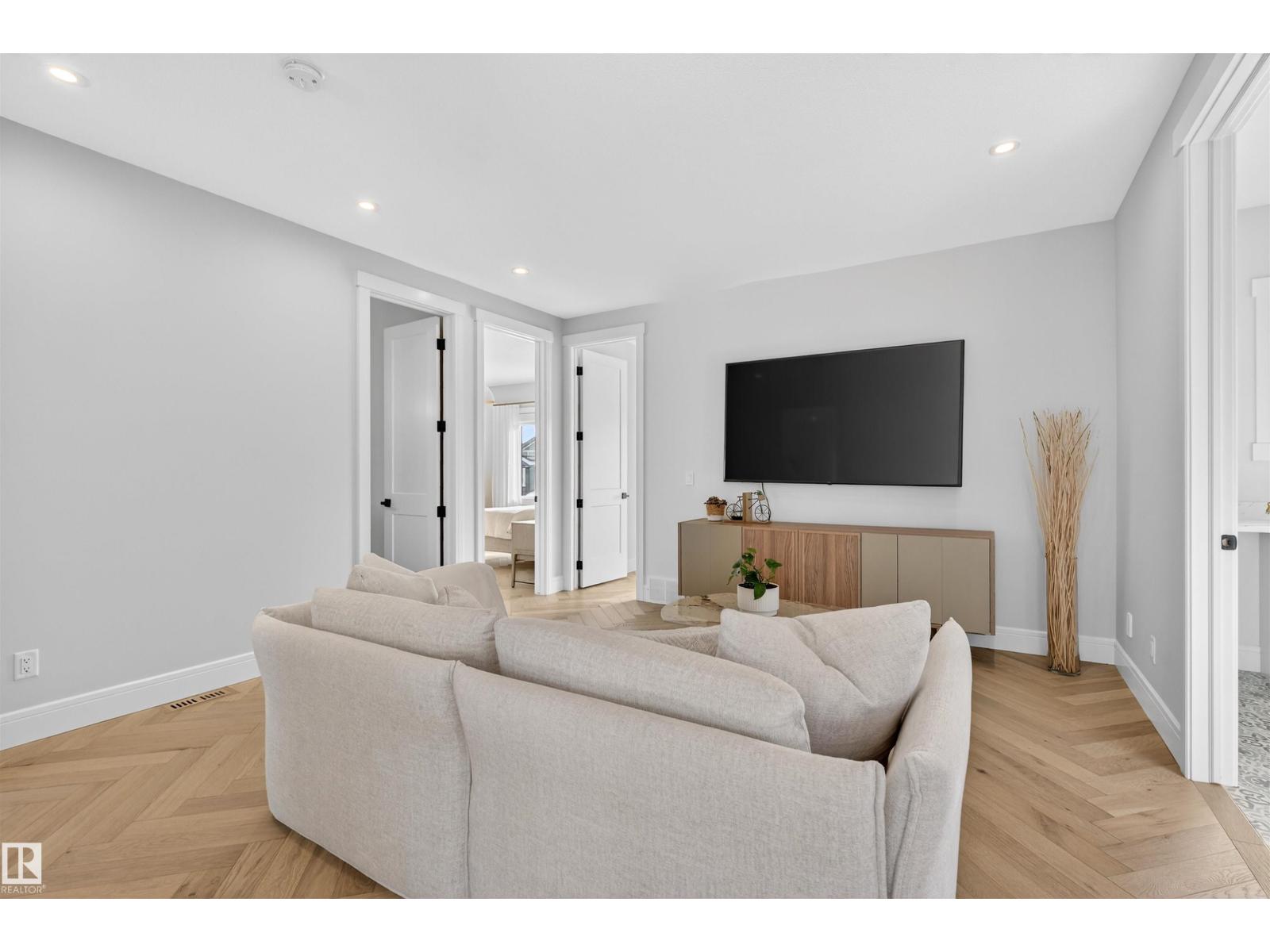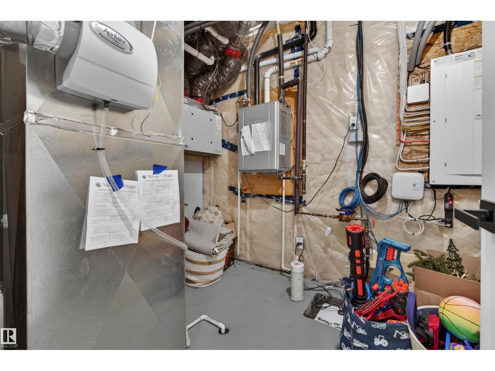 This elegant custom built home blends timeless architecture with refined, minimalist design. Perfectly positioned along an extensive walking trail & forested green space offers both privacy & a serene natural backdrop. All details curated for comfort & family living. Stunning, spacious kitchen showcases a luxury leather-touch Cambria Quartz Island, gas range & hidden butler’s pantry with direct access to the garage. The open-concept main floor is graced by an open stairwell leading to the upper loft, creating a sense of light & architectural interest. Upgrades include Hardwood Flooring, Oversized Windows, Custom floor-to-ceiling Drapes, main-floor office & large upper laundry room. With 4 bdrms, 3.5 baths, A/C &Triple garage. This Home is perfect for all family sizes. The Fully finished basement has a stylish wet bar, recreation room, an extra bedroom & a 3-piece bathroom—perfect for guests & entertaining. Walking distance to park, playground & transit, this home blends luxury, comfort, and convenience. (id:63190)