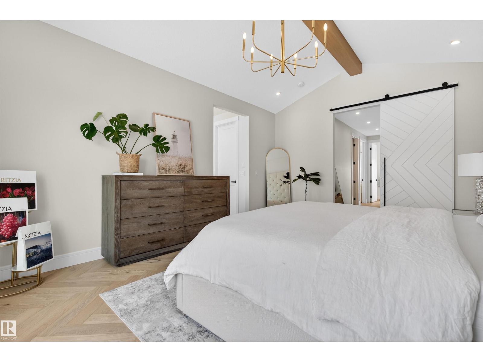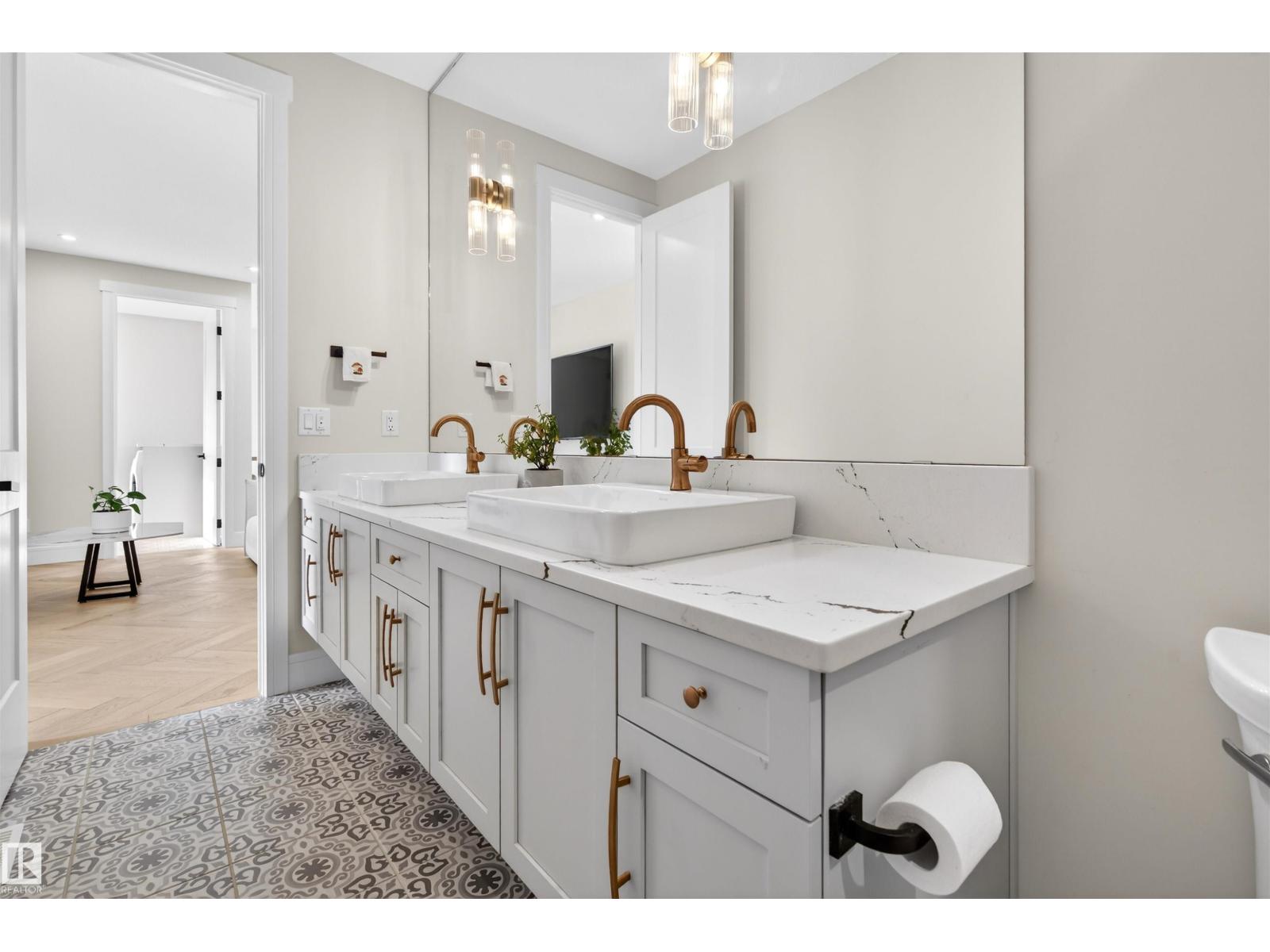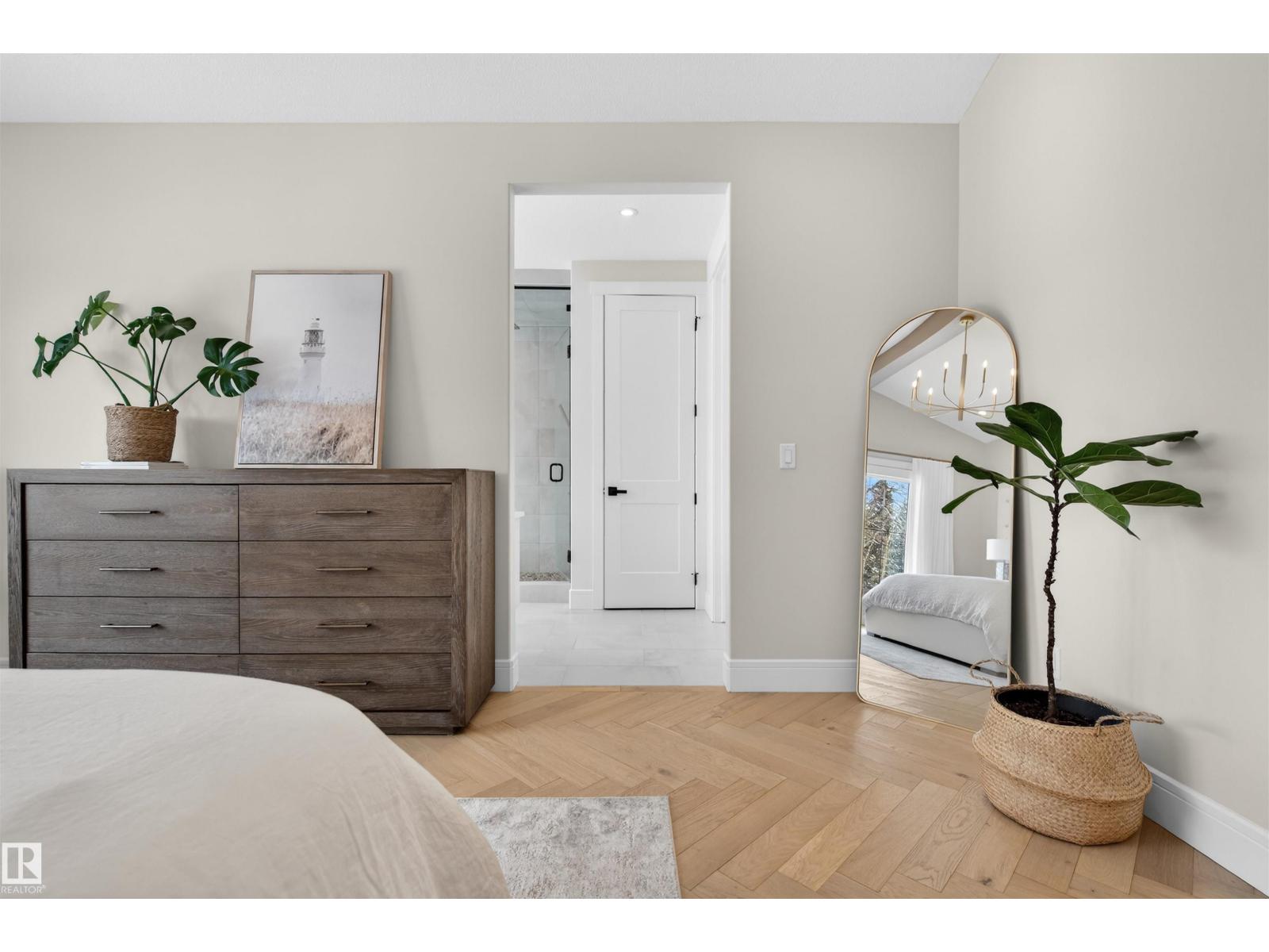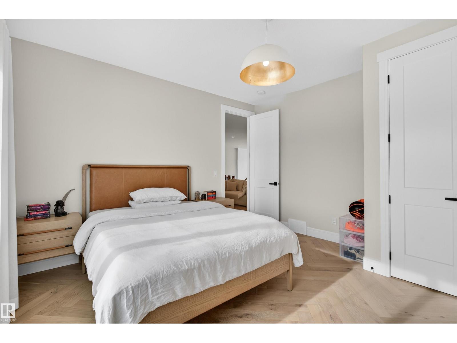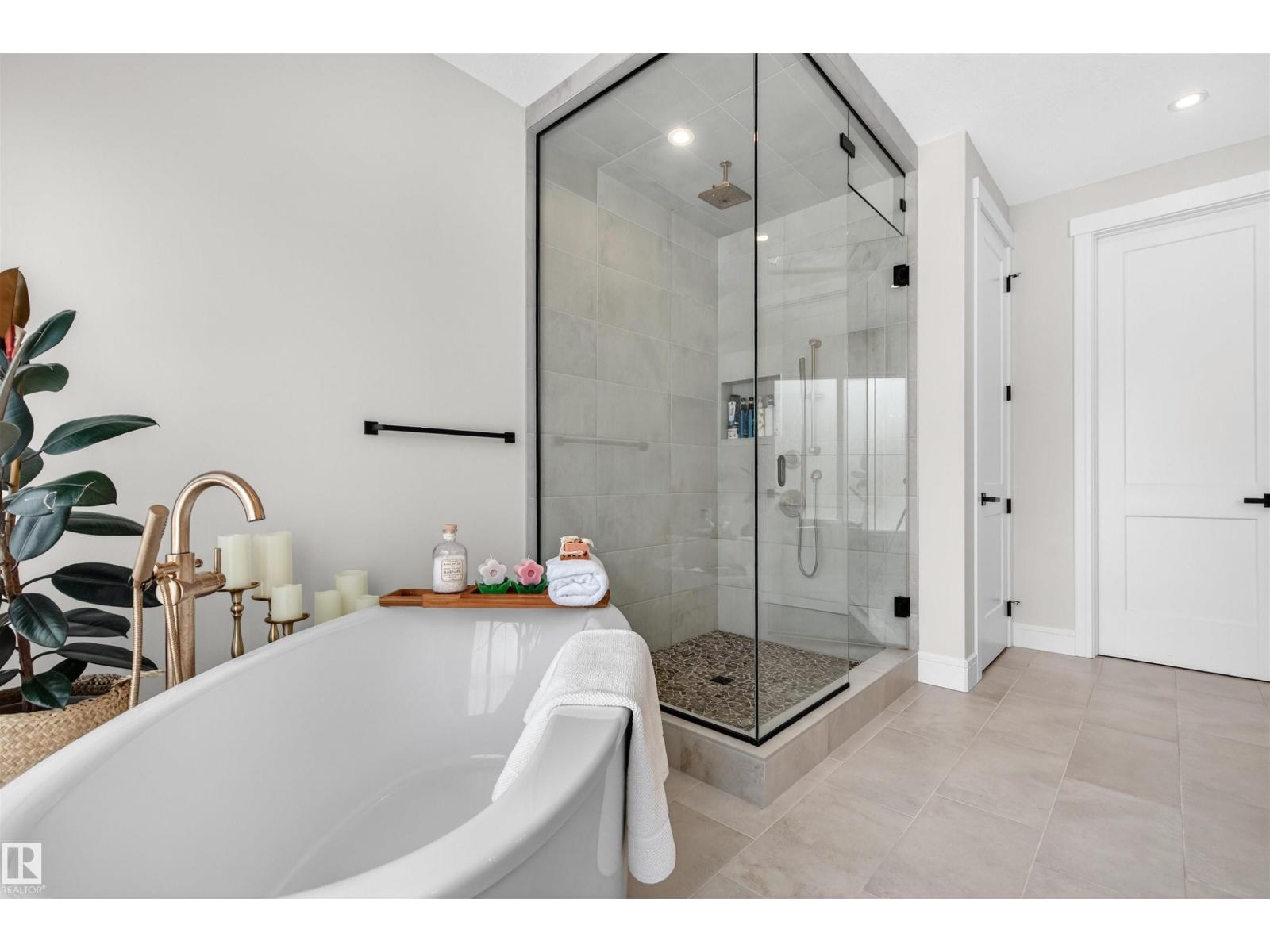 This elegant custom built home blends timeless architecture with refined, minimalist design. Perfectly positioned along an extensive walking trail & forested green space offers both privacy & a serene natural backdrop. All details curated for comfort & family living. Stunning, spacious kitchen showcases a luxury leather-touch Cambria Quartz Island, gas range & hidden butler’s pantry with direct access to the garage. The open-concept main floor is graced by an open stairwell leading to the upper loft, creating a sense of light & architectural interest. Upgrades include Hardwood Flooring, Oversized Windows, Custom floor-to-ceiling Drapes, main-floor office & large upper laundry room. With 4 bdrms, 3.5 baths, A/C &Triple garage. This Home is perfect for all family sizes. The Fully finished basement has a stylish wet bar, recreation room, an extra bedroom & a 3-piece bathroom—perfect for guests & entertaining. Walking distance to park, playground & transit, this home blends luxury, comfort, and convenience. (id:63190)