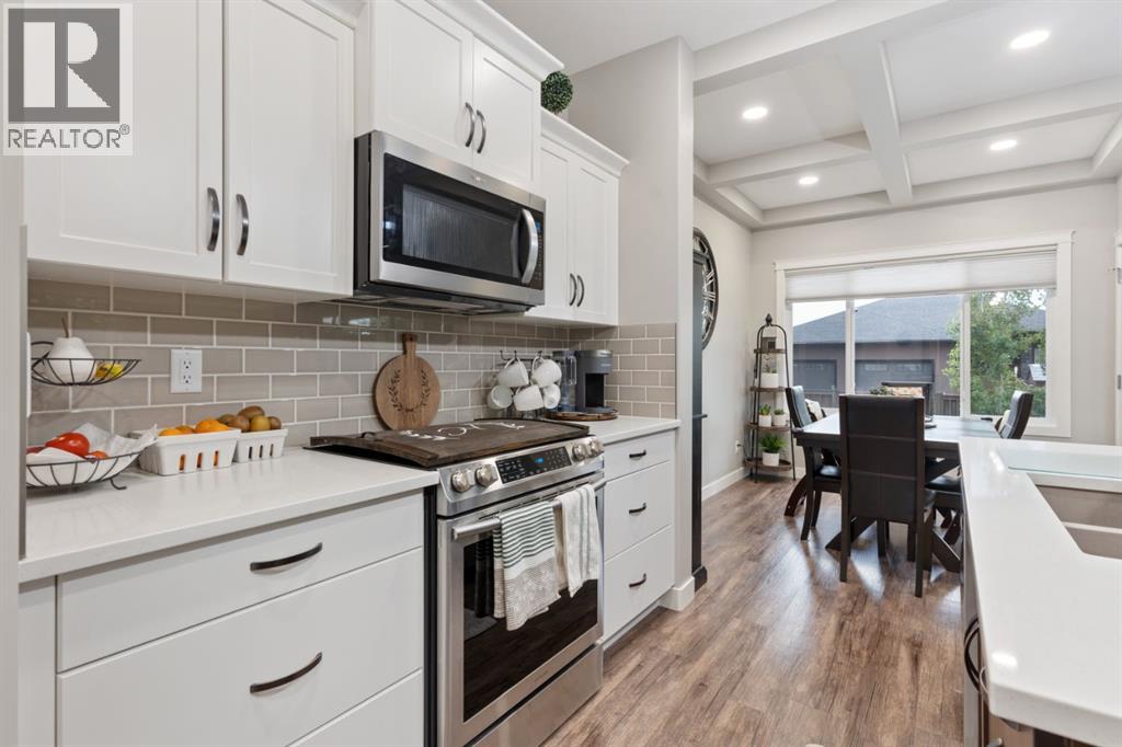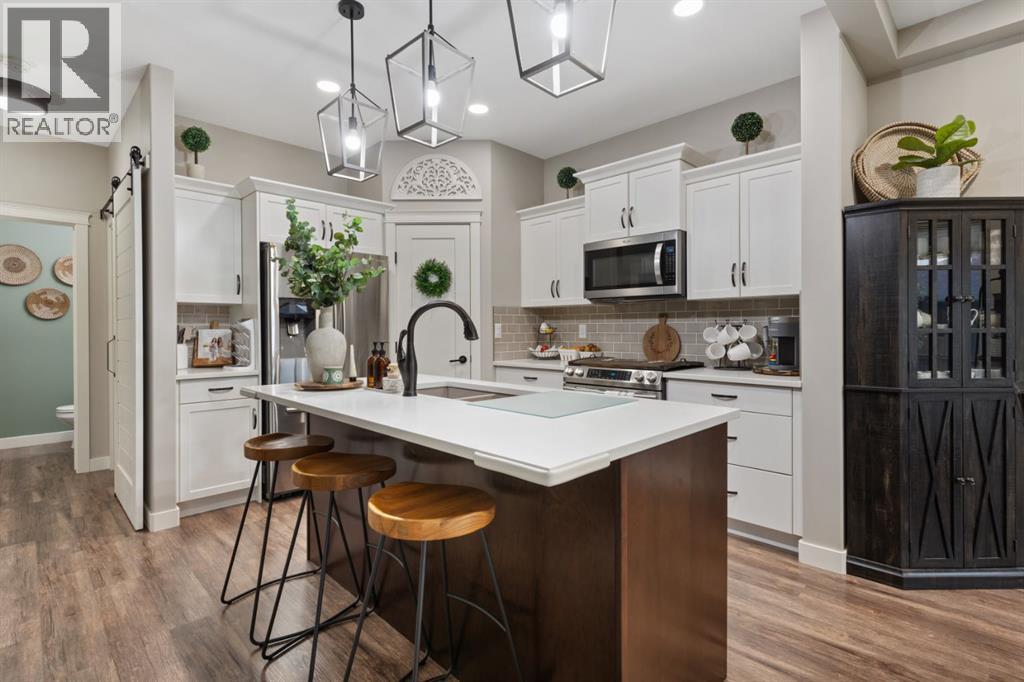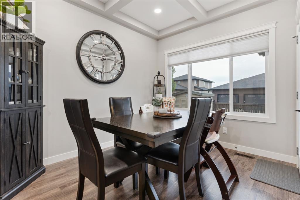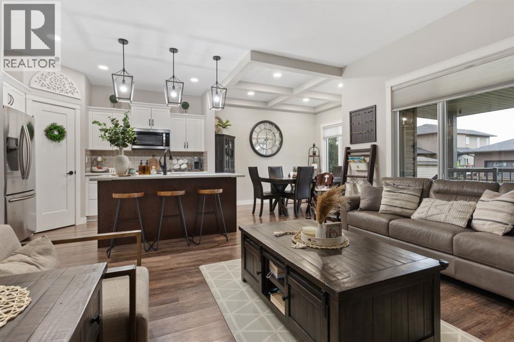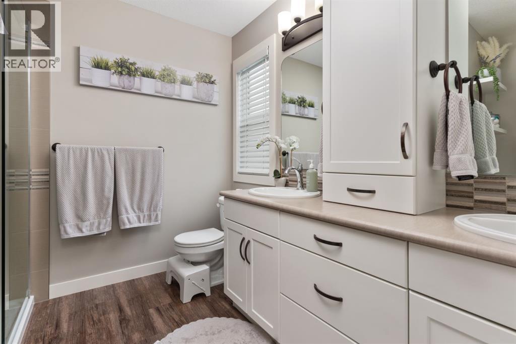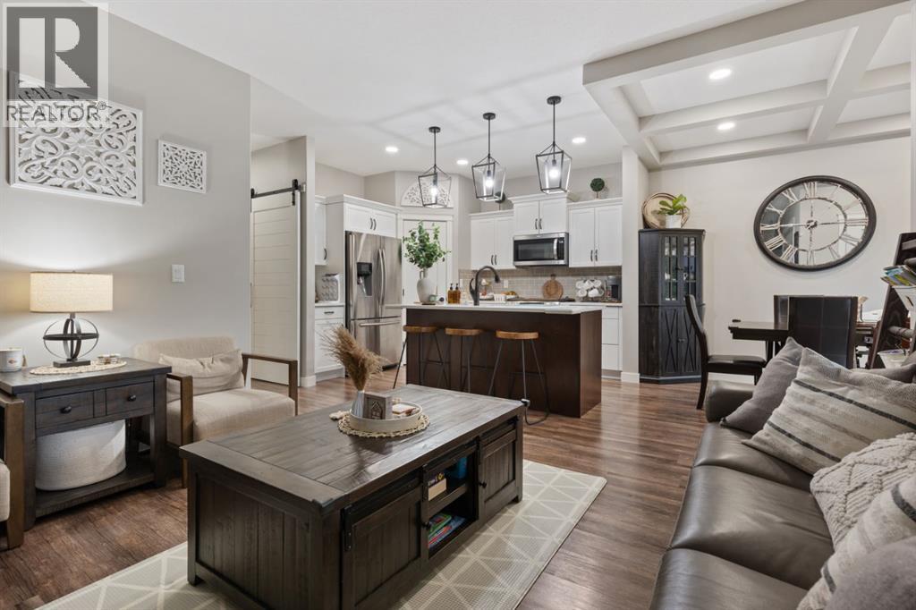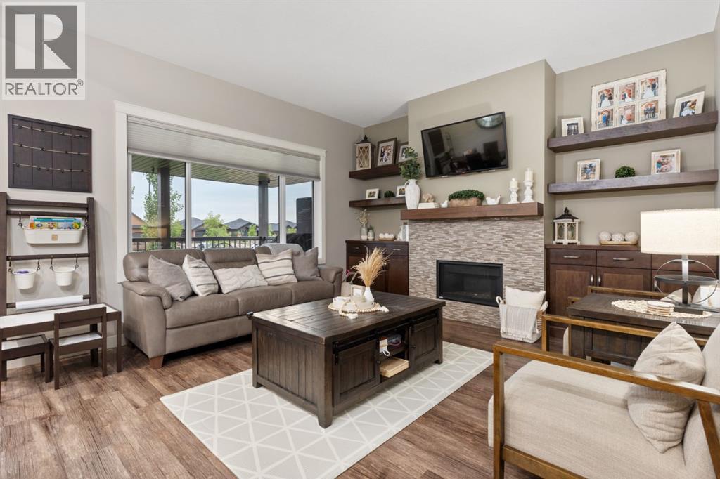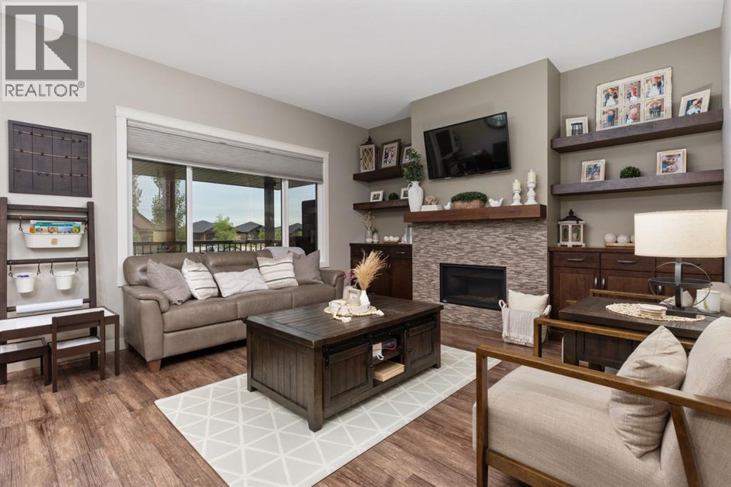 Welcome to this exceptional, immaculately maintained two-storey home, perfectly situated on a coveted corner lot in the prestigious community of Valleyview West. From the moment you arrive, the pride of ownership is unmistakable, this home presents like new and stands out as one of the most pristine offerings on the market.Thoughtfully designed for modern family living with a refined touch, the main floor welcomes you with a bright, airy foyer and striking open staircase that sets the tone for the space beyond. The open-concept layout seamlessly connects the living, dining, and kitchen areas, where expansive east-facing windows flood the home with natural light and beautifully frame the backyard like a living piece of art. A stunning gas fireplace anchors the living room, creating a warm and sophisticated gathering space, while high-end vinyl plank flooring adds both durability and style.The kitchen is as functional as it is beautiful, featuring crisp white cabinetry, gleaming quartz countertops, upgraded stainless steel appliances, and a spacious island perfect for everything from busy mornings to weekend baking. A walk-through pantry offers effortless access to the garage an everyday luxury you’ll appreciate time and time again.Step outside from the dining area to your covered deck, overlooking a professionally landscaped, fully fenced backyard designed for both relaxation and play. With a lower patio, storage shed, and ample green space, it’s the ideal setting for family time or effortless entertaining.The main floor is completed by a stylish powder room and a thoughtfully designed laundry and mudroom with direct garage access, perfectly suited to busy family life.Upstairs, a cozy bonus room offers the perfect retreat for movie nights or quiet evenings in. Three bedrooms include a serene primary suite featuring a walk-in closet and a spa-inspired ensuite, while a well-appointed 4-piece bathroom comfortably serves the additional bedrooms.The fully finished b asement extends your living space with a welcoming family room complete with wet bar, an additional bedroom, and a full 3-piece bathroom, ideal for guests or growing families, all finished to the same exceptional standard as the rest of the home.Additional highlights include central air conditioning, on-demand hot water, Dricore subflooring in the basement, and a beautifully curated outdoor space with covered deck and patio for year-round enjoyment.Located just steps from scenic valley views, parks, walking trails, and the new high school, this home offers a rare blend of executive style, thoughtful design, and true family comfort. (id:63190)