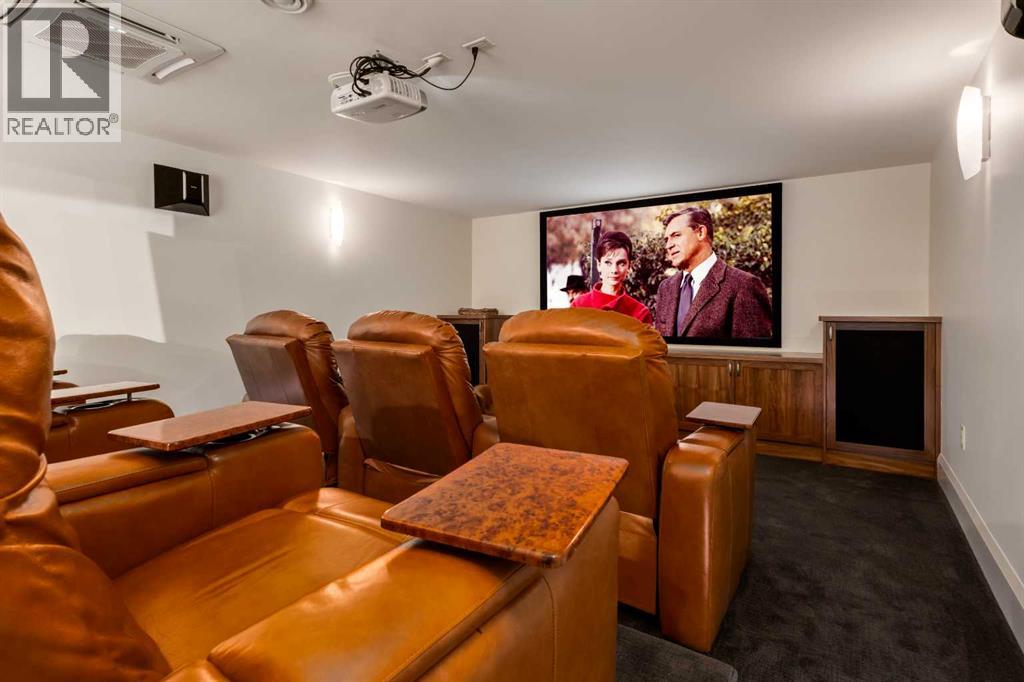 Occupying a rare double lot along Madison Avenue in the prestigious community of Elboya, this castle-inspired estate is defined by its striking stone façade and grand scale. Offering over 7,780 square feet of luxury, with six bedrooms, six full and two half bathrooms, the home is thoughtfully designed for elevated family living and exceptional entertaining. A spacious foyer welcomes you inside, while a private office with walnut built-ins and 21’ ft vaulted ceilings adds warmth and sophistication. At the heart of the home, the recently refreshed chef’s kitchen features new paint, lighting, and countertops, along with double walk-in pantries, an oversized island, dual dishwashers, wine fridge, and premium appliances including a 6-burner Wolf gas range, integrated Sub-Zero refrigerator, and built-in Miele espresso machine. The kitchen flows seamlessly into the informal dining area and expansive living room, where floor-to-ceiling windows showcase the south-facing backyard and provide direct outdoor access. The main floor is completed by a formal dining room with built-ins, a bedroom with walk-in closet and private ensuite, a thoughtfully designed utility room with skylights, sink, in-floor drain and dedicated A/C - ideal for a dog wash - and a stylish powder room. Upstairs, the primary retreat offers 13’ vaulted ceilings, south exposure, a luxurious 5-piece ensuite with steam shower and boutique-style walk-in closet. Two additional bedrooms each have their own ensuites and vaulted ceilings, while a turreted office captures downtown views. A large upper laundry room includes dual washers, dryer, sink, and extensive cabinetry. The recently remodelled lower level is designed for recreation and relaxation, complete with a golf simulator, 6-seater tiered theatre room, wine room, wet bar, and expansive games area. Two additional bedrooms with walk-in closets and private ensuite bathrooms provide ideal accommodations for guests or older children. A wood-panelled elevator sea mlessly connects all three levels. Mechanical features include in-floor heating, dual furnaces, multiple boilers, hot water heaters, and new air-conditioning units. Car enthusiasts will appreciate the rare quad subterranean garage with epoxy flooring and snow-melt driveway. The south-facing backyard is built for year-round enjoyment, featuring a screened patio with built-in BBQ/prep space and overhead heater, wood-burning fireplace, seating area, gated dog run, and raised garden. A heated front walkway ensures seamless winter maintenance. Ideally located near picturesque Elbow River pathways and Stanley Park, this exceptional property offers a truly elevated lifestyle in one of Calgary’s most sought-after inner-city communities. (id:63190)
