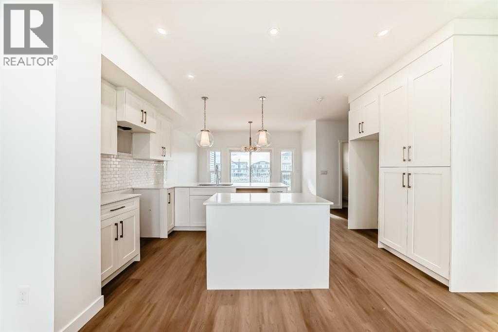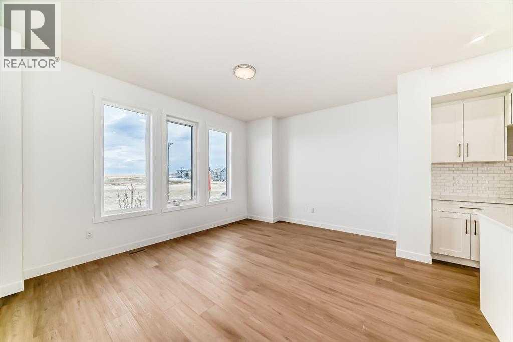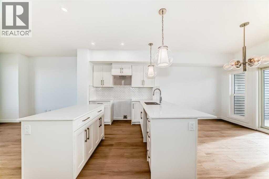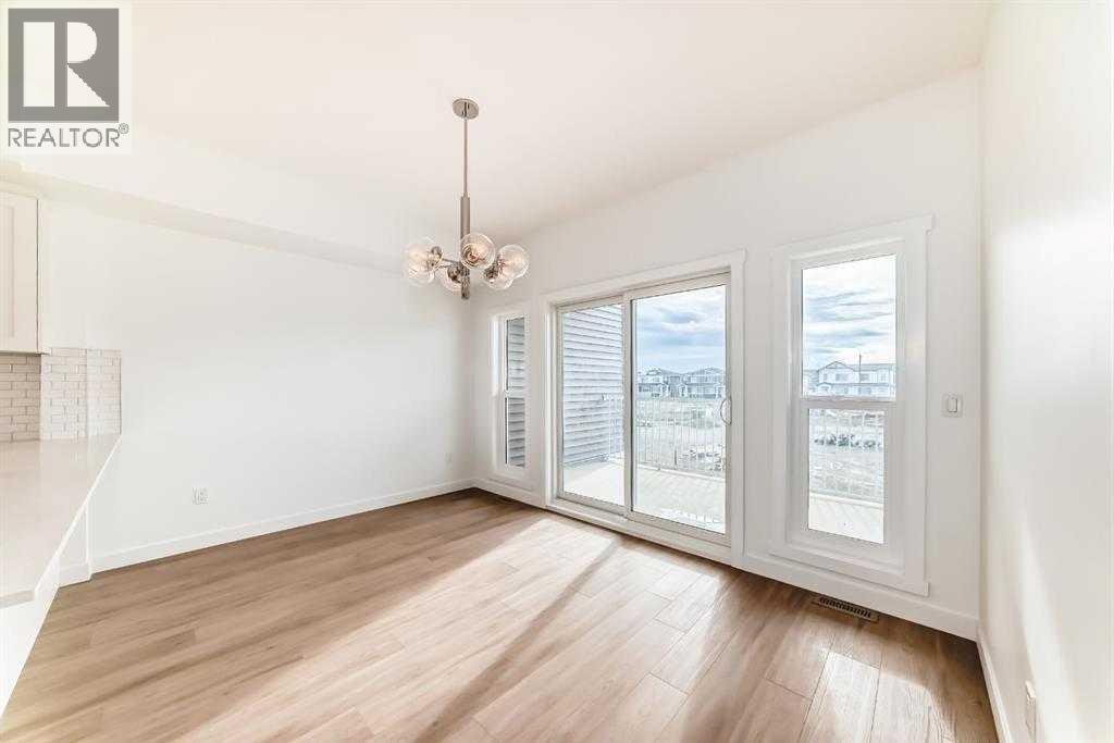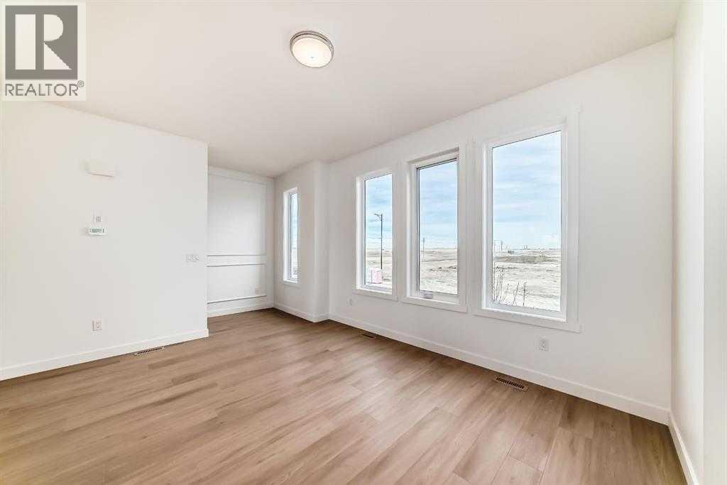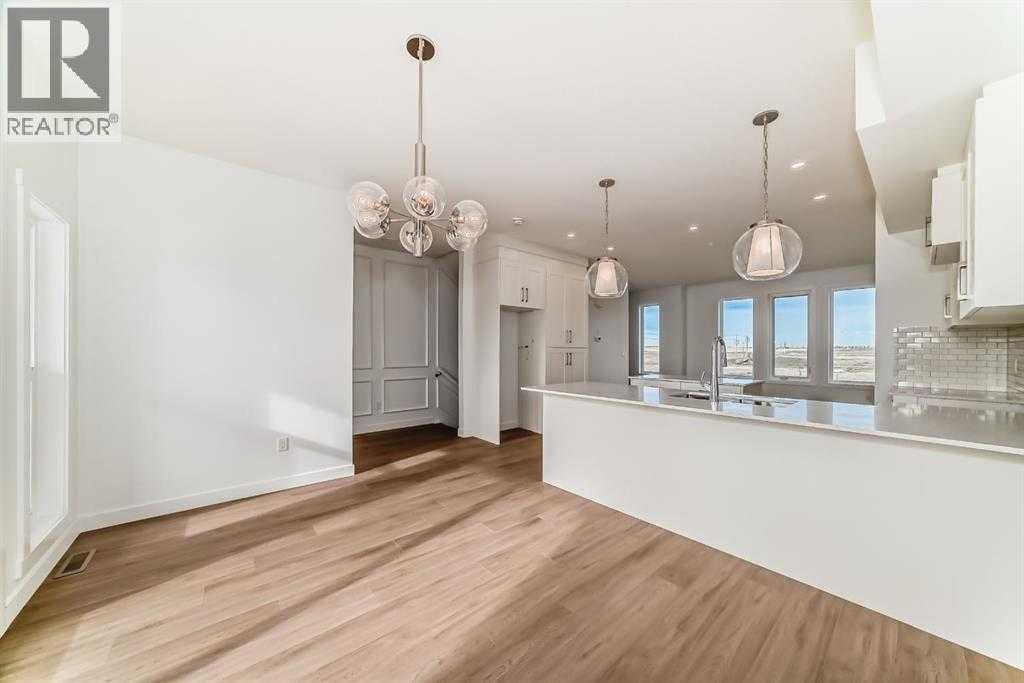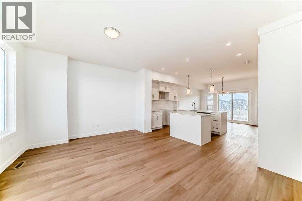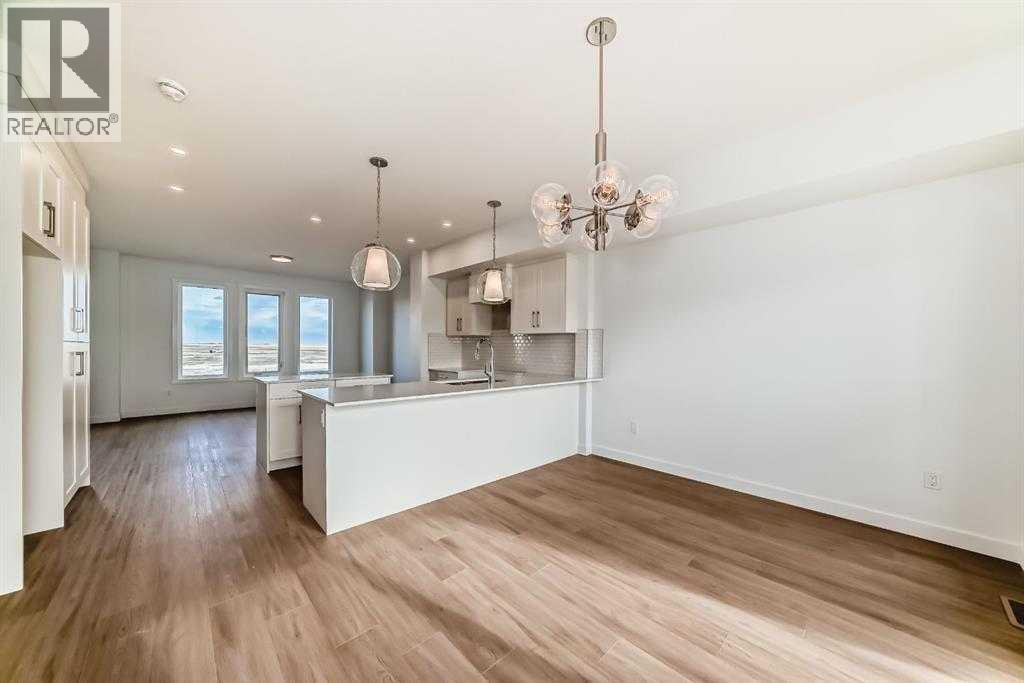 Welcome to your brand new, never-lived-in townhome in the heart of Chestermere! This fully upgraded home offers 3 spacious bedrooms, 2.5 bathrooms, a versatile main-floor den, and a double car garage — perfect for families, professionals, or anyone who values flexible living space. Tucked away in a quiet, family-friendly neighbourhood, you’ll love the sense of peace and comfort this home provides. The main level features a bright den — ideal for a home office, guest suite, or even a personal gym. Head upstairs to the open-concept second floor, where sunlight fills the living area with its high ceilings and modern design. The gourmet kitchen boasts quartz countertops, stainless steel appliances, full-height cabinetry, and a spacious dining area that flows seamlessly into the living room — complete with access to your private balcony, perfect for morning coffee or evening relaxation. On the upper level, the primary suite includes a large walk-in closet and a luxurious 5-piece ensuite. Two additional bedrooms share an upgraded 4-piece bath, and convenient upper-floor laundry makes daily life a breeze. With luxury vinyl plank flooring, modern finishes, and designer selections throughout, this move-in-ready home delivers incredible value. Located just minutes from Stoney Trail, Costco, golf courses, schools, parks, and Lake Chestermere, this townhome combines comfort, style, and unbeatable convenience. Don’t wait — book your showing today and experience Chestermere living at its best! (id:63190)