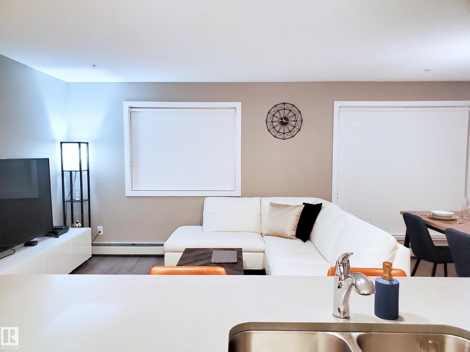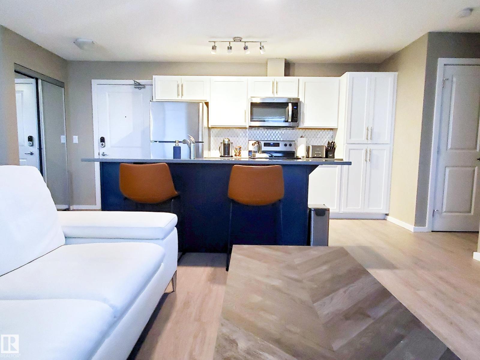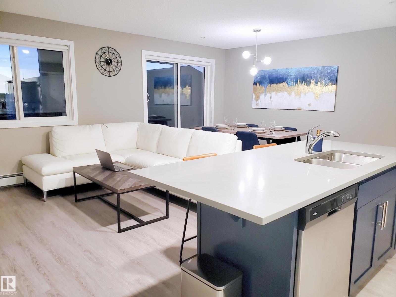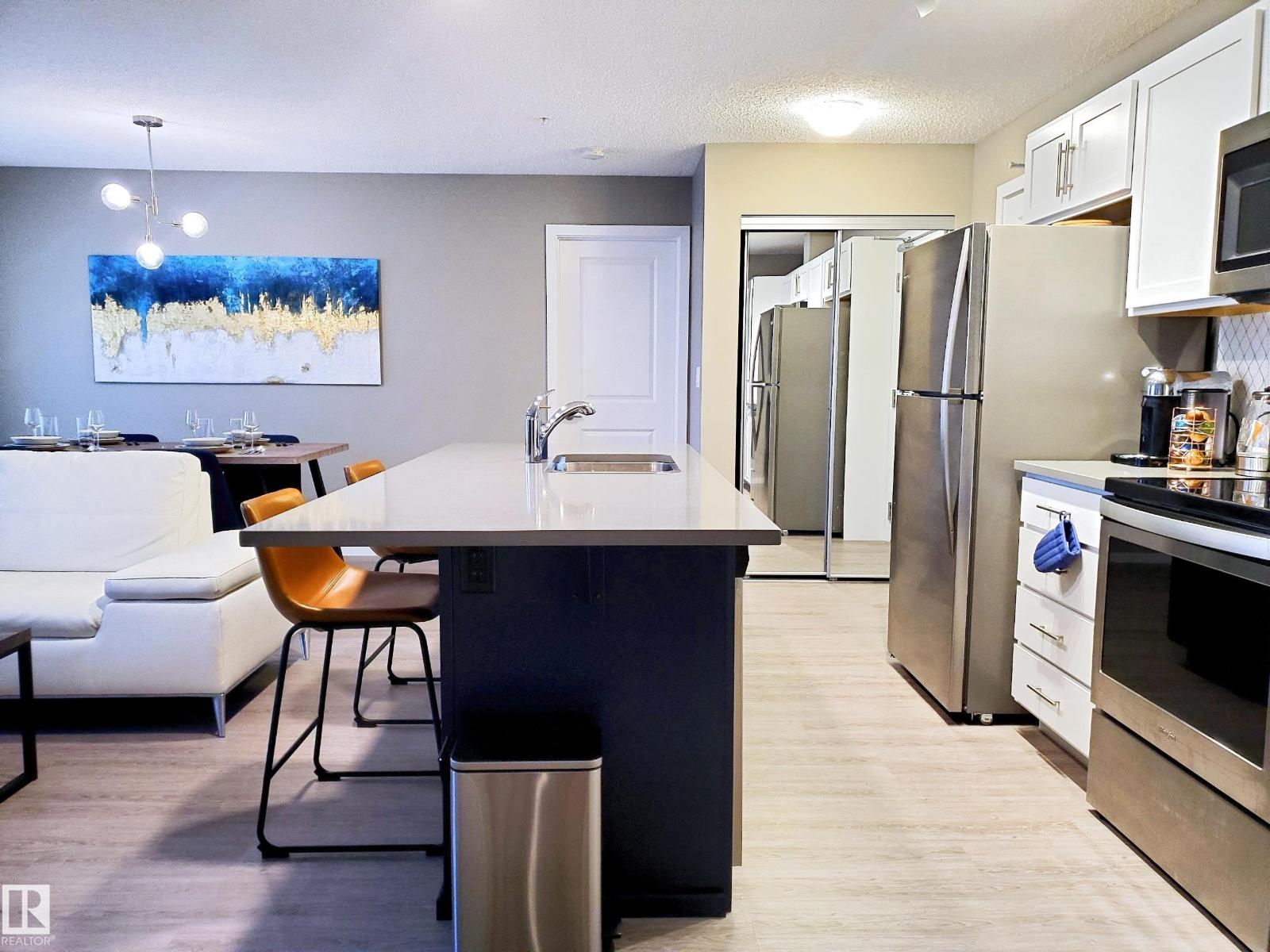 Experience Affordable Luxury at the Elements at Windermere. Discover modern urban living in one of Edmonton’s most prestigious communities. This impeccably designed 2-bedroom, 2-bathroom residence features a rare open-concept layout that masterfully balances style and function. The heart of the home is a sleek island kitchen flowing into a dedicated, spacious dining area—a rare find that makes hosting dinner guests a delight. The thoughtful split-bedroom floor plan ensures maximum privacy, with the primary suite boasting a 4-piece ensuite and expansive closet. Enjoy the convenience of in-suite laundry and titled underground parking. Step outside to your private patio, perfect for long summer evenings. Located just steps from the Currents of Windermere, you are walking distance to VIP cinemas, gourmet dining, and boutique shopping. With quick access to Anthony Henday and nearby golf courses, this is more than a home—it’s a lifestyle. (id:63190)