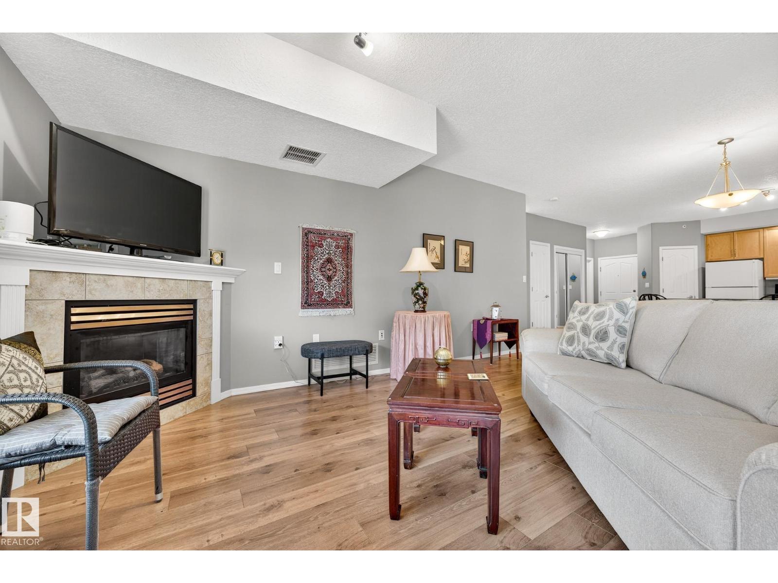 Experience elevated living at Spirit Ridge At Rutherford! This pristine top-floor 2-bed, 2-bath unit features soaring 9' ceilings, a cozy gas fireplace, open concept, and sleek wide plank flooring throughout (no-carpet). The functional layout includes a primary suite with a walk-through closet and private ensuite, plus a versatile second bedroom and abundant in-unit storage. Relax on your expansive, oversized balcony, perfect for outdoor living! Enjoy incredible value with most utilities included (heat, water, waste), in-suite laundry, and a titled heated underground stall with a storage locker and car wash. Building perks: gym, social room, and guest suite. Nestled in the heart of Rutherford, you’re steps from scenic walking trails, peaceful parks, and the Heritage Valley transit hub. Enjoy quick access to Anthony Henday Dr, South Edmonton Common, and Windermere’s vibrant dining scene. An exceptional opportunity for a secure, low-maintenance lifestyle in a premier south-side community! (id:63190)